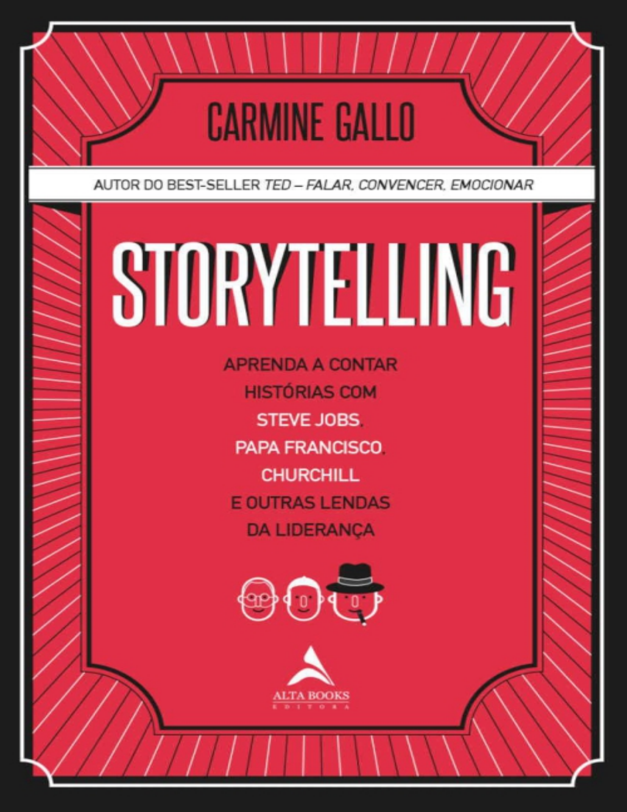 <p>DADOS DE ODINRIGHT</p><p>Sobre a obra:</p><p>A presente obra é disponibilizada pela equipe eLivros e</p><p>seus diversos parceiros, com o objetivo de oferecer</p><p>conteúdo para uso parcial em pesquisas e estudos</p><p>acadêmicos, bem como o simples teste da qualidade da</p><p>obra, com o fim exclusivo de compra futura.</p><p>É expressamente proibida e totalmente repudíavel a venda,</p><p>aluguel, ou quaisquer uso comercial do presente conteúdo.</p><p>Sobre nós:</p><p>O eLivros e seus parceiros disponibilizam conteúdo de</p><p>dominio publico e propriedade intelectual de forma</p><p>totalmente gratuita, por acreditar que o conhecimento e a</p><p>educação devem ser acessíveis e livres a toda e qualquer</p><p>pessoa. Você pode encontrar mais obras em nosso site:</p><p>eLivros.</p><p>Como posso contribuir?</p><p>Você pode ajudar contribuindo de várias maneiras, enviando</p><p>livros para gente postar Envie um livro ;)</p><p>Ou ainda podendo ajudar financeiramente a pagar custo de</p><p>servidores e obras que compramos para postar, faça uma</p><p>doação aqui :)</p><p>"Quando o mundo estiver unido na busca do</p><p>conhecimento, e não mais lutando por dinheiro e</p><p>https://elivros.love/</p><p>https://elivros.love/</p><p>https://elivros.love/</p><p>https://elivros.love/page/EnviarLivros</p><p>https://elivros.love/page/Doar</p><p>poder, então nossa sociedade poderá enfim evoluir a</p><p>um novo nível."</p><p>eLivroseLivros.love.love</p><p>Converted by ePubtoPDF</p><p>https://elivros.love/</p><p>https://epubtopdf.info/</p><p>A compra deste conteúdo não prevê o</p><p>atendimento e fornecimento de suporte</p><p>técnico operacional, instalação ou</p><p>configuração do sistema de leitor de</p><p>ebooks. Em alguns casos, e dependendo</p><p>da plataforma, o suporte poderá ser</p><p>obtido com o fabricante do equipamento</p><p>e/ou loja de comércio de ebooks.</p><p>Storytelling: Aprenda a contar histórias com Steve Jobs,</p><p>Papa Francisco, Churchill e outras lendas da liderança</p><p>Copyright © 2019 da Starlin Alta Editora e Consultoria Eireli.</p><p>THE STORYTELLER’S SECRET. Copyright © 2016 by Carmine Gallo.</p><p>Published by arrangement with St. Martin’s Press, LLC. All</p><p>rights reserved.</p><p>Editora-chefe: Adriana Salles Gomes</p><p>Publisher: Lindsay Gois</p><p>Tradução: Bruno Scartozzoni</p><p>Preparação de texto: Alexandra Delfino de Sousa</p><p>Revisão: Cristina Fernandes, Marcia Menin e Lindsay Gois</p><p>Diagramação: Carlos Borges Jr.</p><p>Capa: Debs Bianchi | Biancheria, Pedro Ursini e Hermes</p><p>Ursini</p><p>Ilustração capa – Steve Jobs: Andrew | Noun Project</p><p>Produção Editorial - HSM Editora - CNPJ: 01.619.385/0001-32</p><p>Todos os direitos estão reservados e protegidos por Lei.</p><p>Nenhuma parte deste livro, sem autorização prévia por</p><p>escrito da editora, poderá ser reproduzida ou transmitida. A</p><p>violação dos Direitos Autorais é crime estabelecido na Lei nº</p><p>9.610/98 e com punição de acordo com o artigo 184 do</p><p>Código Penal.</p><p>Erratas e arquivos de apoio: No site da editora</p><p>relatamos, com a devida correção, qualquer erro encontrado</p><p>em nossos livros, bem como disponibilizamos arquivos de</p><p>apoio se aplicáveis à obra em questão.</p><p>Acesse o site www.altabooks.com.br e procure pelo título do</p><p>livro desejado para ter acesso às erratas, aos arquivos de</p><p>apoio e/ou a outros conteúdos aplicáveis à obra.</p><p>Suporte Técnico: A obra é comercializada na forma em</p><p>que está, sem direito a suporte técnico ou orientação</p><p>pessoal/exclusiva ao leitor.</p><p>Rua Viúva Cláudio, 291 — Bairro Industrial do Jacaré</p><p>CEP: 20.970-031 — Rio de Janeiro (RJ)</p><p>Tels.: (21) 3278-8069 / 3278-8419</p><p>www.altabooks.com.br — altabooks@altabooks.com.br</p><p>www.facebook.com/altabooks —</p><p>www.instagram.com/altabooks</p><p>Dedicado</p><p>a Vanessa,</p><p>por acreditar em nós.</p><p>V</p><p>PREFÁCIO ESPECIAL</p><p>Para a edição brasileira</p><p>ocê já teve a honra de escrever um prefácio alguma</p><p>vez na vida?</p><p>Isso, você mesmo, caro leitor. É com você que eu estou</p><p>falando. Faço essa pergunta retórica, neste diálogo de uma</p><p>via só, para que você entenda o desafio que tenho nas</p><p>mãos.</p><p>Um prefácio parece ser algo fácil, por um lado. Certamente</p><p>é mais fácil do que escrever um livro. Por outro lado, é uma</p><p>grande responsabilidade. Para a maioria das pessoas, será o</p><p>primeiro contato feito com uma obra escrita por um terceiro.</p><p>É como aquele amigo que convida você para uma festa,</p><p>mas, quando você chega lá com salgadinhos e cervejas, ele</p><p>teve de dar uma saída, e aí sobra para o amigo do amigo,</p><p>geralmente um desconhecido, lhe apresentar a casa e as</p><p>pessoas.</p><p>Antes de sentar e abrir o arquivo para escrever o texto,</p><p>resolvi fazer uma enquete no Facebook sobre o tipo de</p><p>prefácio que as pessoas gostariam de ler. Tive várias</p><p>respostas, inclusive algumas bastante contraditórias. Tem</p><p>gente que odeia prefácios, tem gente que espera ser</p><p>envolvido por uma boa história. Tem gente que prefere algo</p><p>direto e curto, tem gente que não se importa com o</p><p>tamanho desde que o texto seja bom. Em outras palavras,</p><p>isso não me ajudou muito. E ainda, como bônus, algumas</p><p>pessoas fizeram um comentário que me deixou um pouco</p><p>preocupado. Algo assim: “Espero que o prefácio me conte</p><p>alguma curiosidade sobre o autor ou os bastidores do livro”.</p><p>Bom, a verdade é que não conheço Carmine Gallo</p><p>pessoalmente e também não tenho nenhuma história de</p><p>bastidores para contar. Trocamos algumas mensagens por</p><p>LinkedIn, e ele parece ser um cara muito legal. O livro</p><p>certamente é bom. Mas tudo o que eu tenho para dizer do</p><p>autor você provavelmente já sabe.