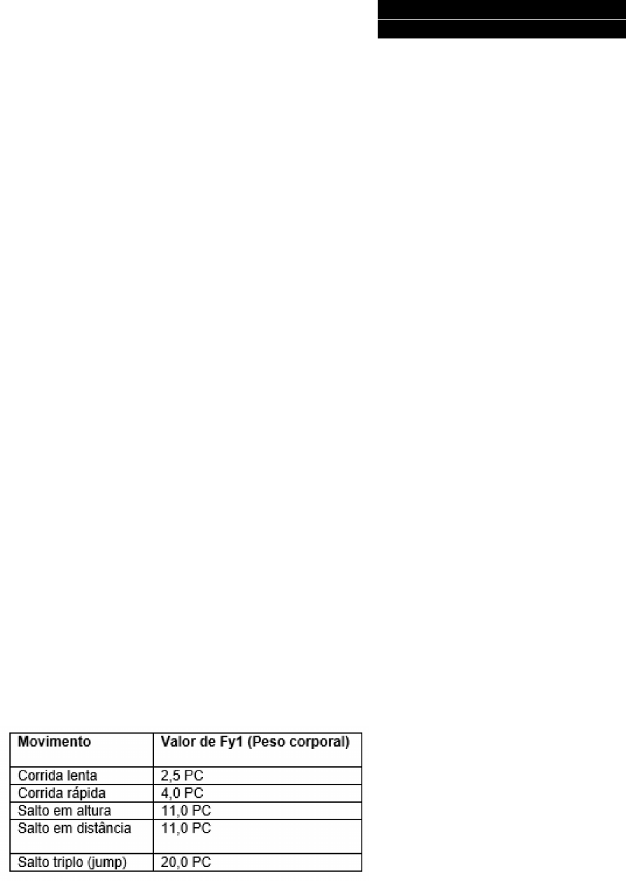 IMPORTANTE Data limite para aplicação desta prova: 30/11/2024 UNIP EAD Código da Prova: 124730855737 Curso: EDUCAÇÃO FÍSICA (BACHARELADO) Série: 6 Tipo: Bimestral - AP Aluno: 2232540 - WESLLEY THUAN SOUZA DE ARAÚJO I - Questões objetivas – valendo 10 pontos Gerada em: 26/11/2024 às 09h04 ------------------------------------------------------------------------------------------------------------ Instruções para a realização da prova: 1. Leia as questões com atenção. 2. Confira seu nome e RA e verifique se o caderno de questão e folha de respostas correspondem à sua disciplina. 3. Faça as marcações primeiro no caderno de questões e depois repasse para a folha de respostas. 4. Serão consideradas somente as marcações feitas na folha de respostas. 5. Não se esqueça de assinar a folha de respostas. 6. Utilize caneta preta para preencher a folha de respostas. 7. Preencha todo o espaço da bolha referente à alternativa escolhida, a caneta, conforme instruções: não rasure, não preencha X, não ultrapasse os limites para preenchimento. 8. Preste atenção para não deixar nenhuma questão sem assinalar. 9. Só assinale uma alternativa por questão. 10. Não se esqueça de responder às questões discursivas, quando houver, e de entregar a folha de respostas para o tutor do polo presencial, devidamente assinada. 11. Não é permitido consulta a nenhum material durante a prova, exceto quando indicado o uso do material de apoio. 12. Lembre-se de confirmar sua presença através da assinatura digital (login e senha). Boa prova! ------------------------------------------------------------------------------------------------------------ Questões de múltipla escolha Disciplina: 808060 - BIOMECÂNICA APLICADA AO ESPORTE Permitido o uso de calculadora. Questão 1: Quando se compara os valores do primeiro pico de força da componente vertical da Força de Reação do Solo, entre os diferentes tipos de saltos e a corrida, é possível verificar grande variação na magnitude de forças aplicadas ao corpo. A partir disso, analise os dados da tabela a seguir. Considerando as informações apresentadas, analise as afirmativas a seguir. I. Ao evidenciar os valores da tabela, é possível concluir que a velocidade do movimento influencia na magnitude de Fy1, quanto maior é a aceleração para execução ou para preparação do movimento, menor será o valor de Fy1. II. O conhecimento sobre a variação da magnitude das forças recebidas pelo corpo em cada movimento pode auxiliar no controle da sobrecarga do treino. Ao usar no mesmo treino, movimento de corrida rápida com saltos, que obrigam o sujeito a aumentar ao máximo a amplitude da passada entre uma sequência de 4 saltos, soma-se forças próximas as registradas para corrida rápida e para o salto triplo na mesma sessão de treino, sendo possível definir esse como um treino intenso para o corpo. III. Cada vez que o sujeito toca o pé no solo, independentemente de executar um salto ou um passo da corrida, ele receberá a magnitude de força típica do movimento. Portanto, o controle do volume de forças aplicados ao corpo no movimento, depende do número de vezes que o sujeito coloca o pé no solo. É correto o que se afirma em: A) I, II e III. B) I, apenas. C) II, apenas. D) III, apenas. E) II e III, apenas. Questão 2: A figura a seguir ilustra o movimento de extensão de quadril realizado em academias para o fortalecimento da musculatura posterior do quadril e da coxa. A representação dos torques no exercício está na figura da seguinte forma: o triângulo indica o eixo articular principal do movimento; o torque potente está representado pelo vetor (P) e pela distância ou braço de alavanca potente (BAP); o torque resistente está representado pelo vetor (R) e pela distância ou braço de alavanca resistente (BAR). Fonte: Uchida et al. (2013, pag. 253). Sobre a aplicação do conceito de torque neste movimento, é possível afirmar que: I. O BAR pode ser aumentado no exercício, se a pessoa indicada na figura flexionar os ombros e estender os cotovelos, posicionando as mãos acima da cabeça. Nessa condição, o exercício ficará menos intenso. II. O vetor P está posicionado na inserção do músculo glúteo máximo, que atuará como agonista do exercício por ser extensor de quadril. III. Os músculos posteriores do tronco são estabilizadores do exercício e ficarão mais acionados no movimento com o aumento da intensidade do vetor R e/ou o aumento do BAR. IV. A intensidade do vetor R pode ser manipulada ao aumentar ou reduzir o peso da anilha que a pessoa ilustrada na figura está segurando. Com o aumento da intensidade do peso da anilha, o exercício ficará mais intenso; caso contrário, o exercício ficará menos intenso. É correto o que se afirma em: A) I, II, III e IV. B) II, III e IV, apenas. C) I, II e III, apenas. D) I, III e IV, apenas. E) III e IV, apenas. Questão 3: A figura a seguir ilustra o movimento de abdução de quadril na polia realizado em academias para o fortalecimento da musculatura lateral do quadril. A representação dos torques no exercício está na figura da seguinte forma: o triângulo indica o eixo articular principal do movimento; o torque potente está representado pelo vetor (P) e pela distância ou braço de alavanca potente (BAP); o torque resistente está representado pelo vetor (R) e pela distância ou braço de alavanca resistente (BAR). É importante observar também que, a representação do torque está posicionada na perna de apoio do exercício e não na perna de trabalho. Fonte: Uchida et al. (2013, pag.237). Sobre a aplicação do conceito de torque nessa condição do movimento, é possível afirmar que: A) O tipo de alavanca representada na figura é a interfixa, que por definição possui o eixo articular entre o BAR e o BAP, indicando a importância dos músculos glúteos mínimo e médio para estabilizar o quadril, ao aumentar a intensidade de ativação