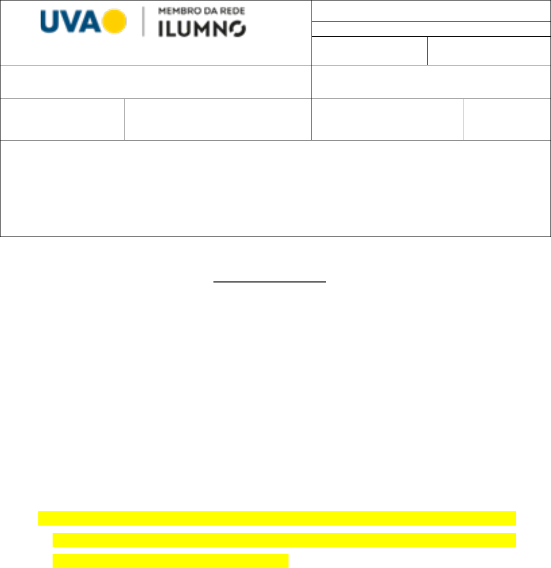 1) Disciplina: Prática Civil I Docente: Marcos Aurélio Lopes Turma: A1 ( ) A2 ( ) A3 ( ) A4 ( ) Aluno(a): LEYLANE SILVA SANTOS GOMES Matrícula: 20172102082 Data: 24/11/2021 Nota da Prova: Nota de Trabalho(s):---- ------------ Nota Final: -- --------- Instruções: • Prezado(a) aluno(a) a tarefa é individual e a interpretação faz parte do contexto geral da prova. • Você pode assinalar sua resposta na prova, ou encaminhar as respostas em separado. • Importante lembrar que esta tarefa tem pontuação igual a 6,0 (seis), que será somada as tarefas semanais, com valoração igual a 0,4 (zero vírgula quatro), cada uma. Questões objetivas 1. Como deve ser escolhida a razão social do escritório de advocacia? (0,2 ponto) a) A razão social deve ter, preferencialmente, o nome de, pelo menos, um advogado responsável pela sociedade, podendo permanecer o de sócio falecido, desde que prevista tal possibilidade no ato constitutivo. b) A razão social não deve ter, obrigatoriamente, o nome de advogado responsável pela sociedade, podendo permanecer o de sócio falecido, desde que tal possibilidade esteja prevista no ato constitutivo. c) A razão social deve ter, obrigatoriamente, o nome de todos os advogados responsáveis pela sociedade, podendo permanecer o de sócio falecido, desde que prevista tal possibilidade no ato constitutivo. d) A razão social deve ter, obrigatoriamente, o nome de, pelo menos, um advogado responsável pela sociedade, podendo permanecer o de sócio falecido, desde que prevista tal possibilidade no ato constitutivo 2. Das opções abaixo, qual apresenta o procedimento correto, a ser adotado pelo brasileiro ou estrangeiro não graduado no Brasil, para poder fazer parte dos quadros da OAB, como advogado? (0,2 ponto) a) O estrangeiro ou brasileiro, quando não graduado em direito no Brasil, preferencialmente, deve fazer prova do título de graduação, obtido em instituição estrangeira, devidamente revalidado, além de atender aos demais requisitos previstos neste artigo. b) O estrangeiro ou brasileiro, quando não graduado em direito no Brasil, pode optar por fazer prova do título de graduação, obtido em instituição estrangeira, devidamente revalidado, além de atender aos demais requisitos previstos neste artigo. c) O estrangeiro ou brasileiro, quando não graduado em direito no Brasil, deve fazer prova do título de graduação, obtido em instituição estrangeira, sem necessidade de ser revalidado, além de atender aos demais requisitos previstos neste artigo. d) O estrangeiro ou brasileiro, quando não graduado em direito no Brasil, deve fazer prova do título de graduação, obtido em instituição estrangeira, devidamente revalidado, além de atender aos demais requisitos previstos neste artigo. 3. Das opções abaixo, qual apresenta as características do estágio profissional da advocacia corretamente? (0,2 ponto) a) O estágio profissional de advocacia, com duração de três anos, realizado nos últimos anos do curso jurídico, pode ser mantido pelas respectivas instituições de ensino superior pelos Conselhos da OAB, ou por setores, órgãos jurídicos e escritórios de advocacia credenciados pela OAB, sendo obrigatório o estudo deste Estatuto e do Código de Ética e Disciplina. b) O estágio profissional de advocacia, com duração de dois anos, realizado nos últimos anos do curso jurídico, pode ser, opcionalmente, mantido pelas respectivas instituições de ensino superior pelos Conselhos da OAB, ou por setores, órgãos jurídicos e escritórios de advocacia credenciados pela OAB, sendo obrigatório o estudo deste Estatuto e do Código de Ética e Disciplina. c) O estágio profissional de advocacia, com duração de dois anos, realizado nos últimos anos do curso jurídico, pode ser mantido pelas respectivas instituições de ensino superior pelos Conselhos da OAB, ou por setores, órgãos jurídicos e escritórios de advocacia credenciados pela OAB, sendo obrigatório o estudo deste Estatuto e do Código de Ética e Disciplina. d) O estágio profissional de advocacia, com duração de cinco anos, realizado ao longo do curso jurídico, pode ser mantido pelas respectivas instituições de ensino superior pelos Conselhos da OAB, ou por setores, órgãos jurídicos e escritórios de advocacia credenciados pela OAB, sendo obrigatório o estudo deste Estatuto e do Código de Ética e Disciplina. 4. São atividades privativas de advocacia: (0,2 ponto) a) a postulação a órgão dos Poder Judiciário, Executivo e Legislativo e aos juizados especiais. b) as atividades de consultoria, assessoria, empresarial e direção jurídicas. c) a impetração de habeas corpus em qualquer instância ou tribunal. d) Os atos e contratos constitutivos de pessoas jurídicas, sob pena de nulidade, só podem ser admitidos a registro, nos órgãos competentes, quando visados por advogados. 5. A lei 13.363, de 2016, trouxe alguns direitos exclusivos das advogadas, sendo um deles: (0,2 ponto) a) A entrada em tribunais sem ser submetida a detectores de metais e aparelhos de raios X, independente do seu estado de gravidez; b) A retirada processos dos cartórios, desde que seja patrona da causa e esteja grávida, sem prazo estipulado. c) Gestante, lactante, adotante ou que der à luz, preferência na ordem das sustentações orais e das audiências a serem realizadas a cada dia, independente da comprovação de sua condição; d) A reserva de vaga em garagens dos fóruns dos tribunais, desde que gestante; QUESTÕES DISCURSIVAS 6. Quais os casos de inépcia da petição inicial? (1,0) Art. 330 CPC 2015 §1o Considera-se inepta a petição inicial quando: 1.lhe faltar pedido ou causa de pedir; 2.o pedido for indeterminado, ressalvadas as hipóteses legais em que se permite o pedido genérico; 3.da narração dos fatos não decorrer logicamente a conclusão; 4.contiver pedidos incompatíveis entre si. QUESTÃO PRÁTICA 7. Maria é proprietária do imóvel situado na R