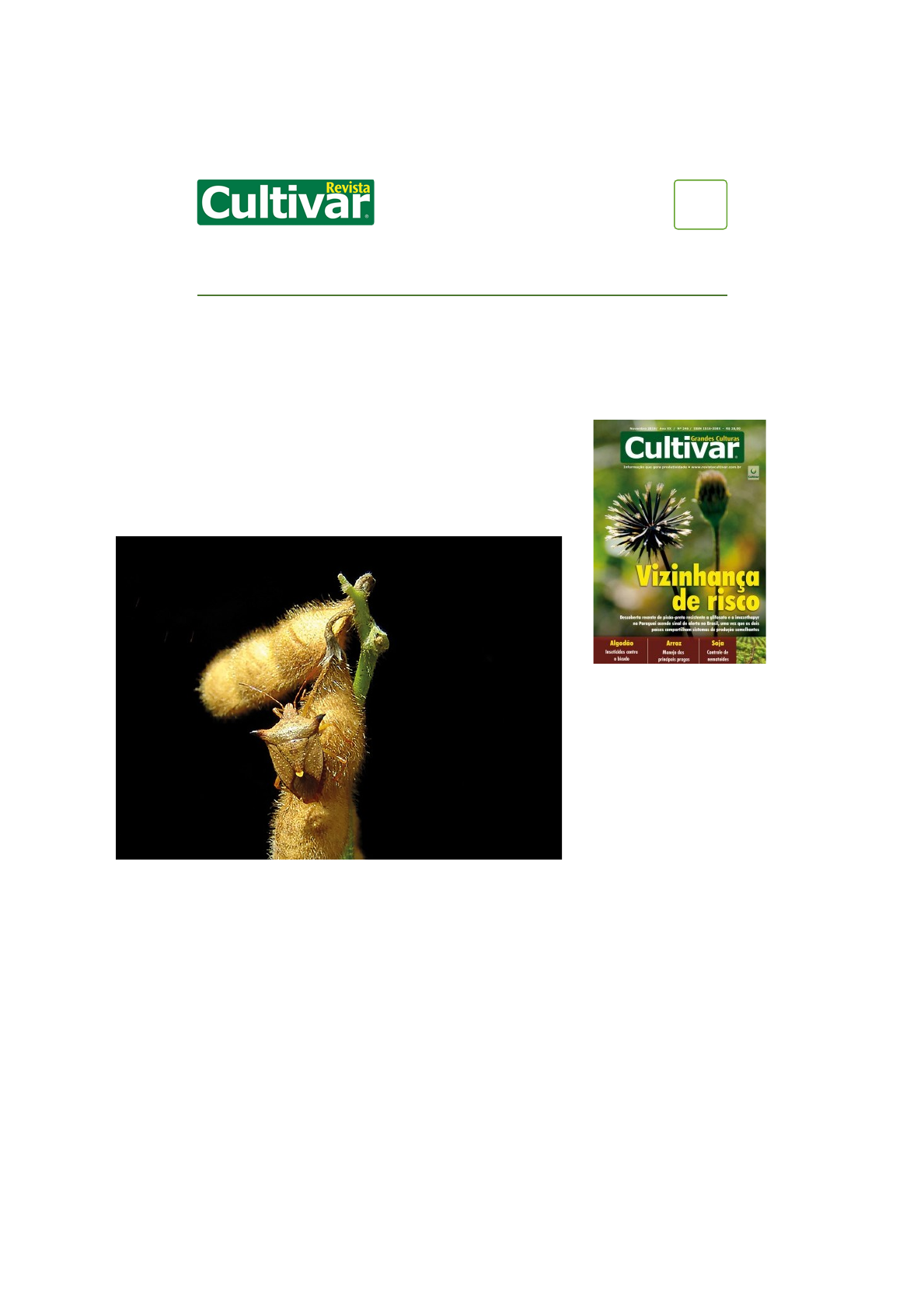 Matérias da Edição: Busca ASSINE | ANUÁRIO | ANUNCIE | CONTATO | CENTRAL DO ASSINANTE Acesso a serviços exclusivos Esqueci a senha ENTRAR NOTÍCIAS | TEST DRIVE | ARTIGOS TÉCNICOS | VÍDEOS | REVISTAS | EBOOKS | ACERVO GRÁTIS ÍNDICE GRANDES CULTURAS VIZINHANÇA DE RISCO Mais cedo Página 27 | Nov 2019 | Crébio José Ávila, Embrapa Agropecuária Oeste; Paulo Henrique R. Fernandes e Ivana Fernandes da Silva, Universidade Federal da Grande Dourados Os percevejos fitófagos são considerados o principal problema entomológico da cultura da soja no Brasil. O percevejo-marrom, Euschistus heros (Fabricius, 1974) (Hemiptera: Pentatomidae), o percevejo-verde-pequeno, Piezodorus guildinii (Westwood, 1837) (Hemiptera: Pentatomidae), e o percevejo barriga-verde, Dichelops melacanthus (Dallas, 1851) (Hemiptera: Pentatomidae) são as três espécies mais abundantes que ocorrem em cultivos do Cerrado brasileiro. A intensidade de danos desses insetos nos cultivos é variável, de acordo com a espécie e com a densidade populacional em que ocorrem, bem como com o estádio de desenvolvimento das plantas hospedeiras, sendo os percevejos verde-pequeno e barriga-verde os mais daninhos na soja e no milho, respectivamente, enquanto o percevejo-marrom é a espécie que ocorre em maior abundância na soja. Página 6 Problema que cresce Página 10 Mosca e percevejos Página 16 Atenção na escolha Página 19 Capacidade ampliada Página 20 Cuidado permanente Página 24 Vizinhança de risco Página 30 Controle de daninhas Página 34 Manejo completo Página 40 Protagonismo feminino Página 42 A colonização das plantas de soja pelos percevejos começa em meados ou final do período vegetativo da cultura. Nesta época, os percevejos estão saindo da diapausa ou de hospedeiros alternativos e migram para a soja. Com o início do período reprodutivo, a partir do aparecimento das vagens, as populações desses insetos, especialmente de ovos e ninfas, aumentam exponencialmente, podendo atingir níveis elevados entre o final do desenvolvimento das vagens e o início do enchimento dos grãos, época em que a soja é mais suscetível ao ataque dessa praga. Os danos causados pelos percevejos nas plantas de soja são decorrentes da introdução do seu aparelho bucal (estilete) nas vagens, podendo atingir os grãos ou as sementes em desenvolvimento, sendo estes danos irreversíveis a partir de determinados níveis populacionais. Os grãos atacados ficam menores, enrugados, chochos e com a cor mais escura que o normal, podendo apresentar doenças como a mancha-fermento, causada pelo fungo Nematospora corily, transmitido durante a alimentação. Ataques nos estádios R3 e R4 podem favorecer o abortamento de vagens, enquanto nos estádios de enchimento de vagens (R5) podem afetar negativamente, tanto o rendimento da cultura como a qualidade dos grãos ou sementes produzidos, provocando também alterações nos teores de proteína e de óleo. Além do dano direto, um ataque severo de percevejos na soja pode causar distúrbio fisiológico nas plantas, o que, em consequência, proporciona o aparecimento de retenção foliar e/ou haste verde, fenômeno este conhecido como soja louca, que retarda e/ou dificulta a colheita da soja. Nos estádios da soja que apresentam suscetibilidade ao ataque dos percevejos (após R3), o controle deve ser realizado com base nos níveis de ação determinados pela pesquisa, que são de dois percevejos por metro de fileira de plantas para lavouras de grãos e um percevejo por metro de fileira para lavouras destinadas a sementes. O controle de percevejos sugadores na cultura de soja tem sido realizado basicamente com o emprego de inseticidas químicos e é recomendado somente a partir do estádio R3, ou seja, quando inicia-se a formação dos "canivetinhos", que são os primórdios do desenvolvimento das vagens. Todavia, existe a possibilidade do manejo desses insetos ocorrer de forma mais precoce, "no cedo", especialmente quando na área forem encontrados apenas adultos do percevejo oriundos da diapausa na entressafra, sem a presença de ovos e de ninfas dessa praga na cultura, ou seja, realizando-se o seu controle antes que essa praga comece o seu período de reprodução. Essa situação de controle tem por objetivo reduzir a população dos percevejos diapausantes e com isso atrasar sua colonização na cultura. Existem também evidências de que os percevejos diapausantes de início de safra são muito mais suscetíveis aos inseticidas químicos disponíveis em comparação aos percevejos de final de safra, o que reforça mais ainda a possibilidade do manejo “no cedo” dessas pragas na cultura da soja. Esta estratégia de controle tem sido denominada de manejo antecipado, uma vez que é realizada quando a densidade populacional do inseto na cultura é inferior ao nível Plano de aplicação N 245 Out 2019 Soma de esforços contra doenças em soja Ler Agora Edição Anterior N 247 Dez 2019 Sombra hostil de lagartas Ler Agora Próxima Edição por apenas: R$109,99por apenas: R$174,70 de controle recomendado. Nestas condições, é possível a redução da população dos percevejos no início de sua colonização, retardando assim a sua multiplicação populacional na cultura da soja. Em adição, o uso de sal de cozinha (NaCl) na calda inseticida tem se mostrado uma técnica que pode proporcionar um efeito aditivo de mortalidade do percevejo em comparação a tratamentos químicos sem a presença do sal. Dessa forma, estudos com o objetivo de compreender os efeitos da exposição de inseticidas comumente utilizados para controle do percevejo E. heros na cultura soja, com a adição de sal de cozinha (NaCl), merecem atenção. Assim, conduziu-se uma pesquisa na Embrapa Agropecuária Oeste com o objetivo avaliar a eficiência de diferentes ingredientes ativos associados à presença ou à ausência de sal de cozinha (NaCl) na calda inseticida, quando aplicados de forma antecipada na cultu