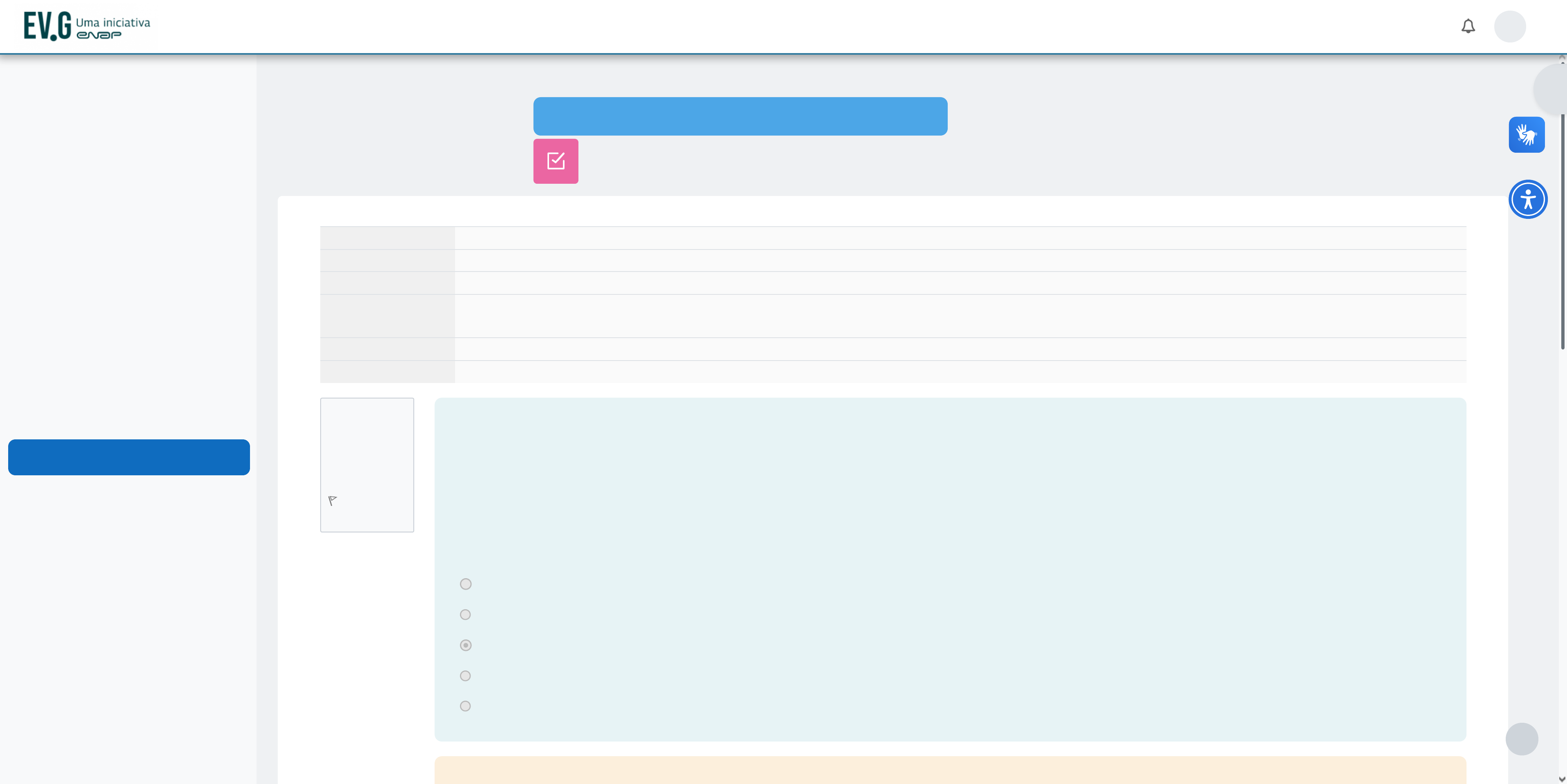 Área do Participante Guia do Participante Conteúdo em PDF Glossário Módulo 1: Conceitos iniciais… Conteúdo - Módulo 1 Exercício Avaliativo - Módulo 1 Módulo 2: Sou organizado? Conteúdo - Módulo 2 Exercício Avaliativo - Módulo 2 Módulo 3: Como (re)começ… Conteúdo - Módulo 3 Exercício Avaliativo - Módulo 3 Módulo 4: Ferramentas de … Conteúdo - Módulo 4 Exercício Avaliativo - Módulo 4 Módulo de Encerramento Avaliação de Satisfação com … Questão 1 Correto Atingiu 1,00 de 1,00 Marcar questão pop_trabalho | - Turma DEZ/2024 / Exercício Avaliativo - Módulo 2 Iniciado em terça-feira, 17 dez. 2024, 16:23 Estado Finalizada Concluída em terça-feira, 17 dez. 2024, 16:32 Tempo empregado 9 minutos 8 segundos Notas 3,00/3,00 Avaliar 15,00 de um máximo de 15,00(100%) QUESTIONÁRIO Exercício Avaliativo - Módulo 2 Analise as assertivas abaixo: I. Uma vida 0% organizada é um caos e só trará prejuízos! II. Uma proposta é que a organização deva acontecer partindo inicialmente de categorias, as quais, por sua vez, podem ser divididas em subcategorias. III. Um dos aspectos da nossa vida que mais precisa estar organizado é o tempo. Quais a�rmativas estão corretas, de acordo com o que foi estudado? Escolha uma opção: a. Apenas I. b. I e II. c. Todas as alternativas. d. I e III. e. Nenhuma das alternativas. Uma vida 0% organizada é um caos e só trará prejuízos! Portanto, busque os 100%! Quanto mais próximo dos 100%, mais você desfrutará dos benefícios da organização. Página inicial Painel Meus cursos Catálogo Área do aluno MB https://mooc41.escolavirtual.gov.br/course/view.php?id=8968#section-0 https://mooc41.escolavirtual.gov.br/mod/book/view.php?id=153872 https://mooc41.escolavirtual.gov.br/mod/folder/view.php?id=153873 https://mooc41.escolavirtual.gov.br/mod/glossary/view.php?id=153874 https://mooc41.escolavirtual.gov.br/course/view.php?id=8968#section-1 https://mooc41.escolavirtual.gov.br/mod/url/view.php?id=153875 https://mooc41.escolavirtual.gov.br/mod/quiz/view.php?id=153876 https://mooc41.escolavirtual.gov.br/course/view.php?id=8968#section-2 https://mooc41.escolavirtual.gov.br/mod/url/view.php?id=153877 https://mooc41.escolavirtual.gov.br/mod/quiz/view.php?id=153878 https://mooc41.escolavirtual.gov.br/course/view.php?id=8968#section-3 https://mooc41.escolavirtual.gov.br/mod/url/view.php?id=153879 https://mooc41.escolavirtual.gov.br/mod/quiz/view.php?id=153880 https://mooc41.escolavirtual.gov.br/course/view.php?id=8968#section-4 https://mooc41.escolavirtual.gov.br/mod/url/view.php?id=153881 https://mooc41.escolavirtual.gov.br/mod/quiz/view.php?id=153882 https://mooc41.escolavirtual.gov.br/course/view.php?id=8968#section-5 https://mooc41.escolavirtual.gov.br/mod/questionnaire/view.php?id=153883 https://mooc41.escolavirtual.gov.br/course/view.php?id=8968#section-2 https://mooc41.escolavirtual.gov.br/my/ https://mooc41.escolavirtual.gov.br/?redirect=0 https://mooc41.escolavirtual.gov.br/my/ https://mooc41.escolavirtual.gov.br/my/courses.php https://www.escolavirtual.gov.br/catalogo https://www.escolavirtual.gov.br/aluno/inicio