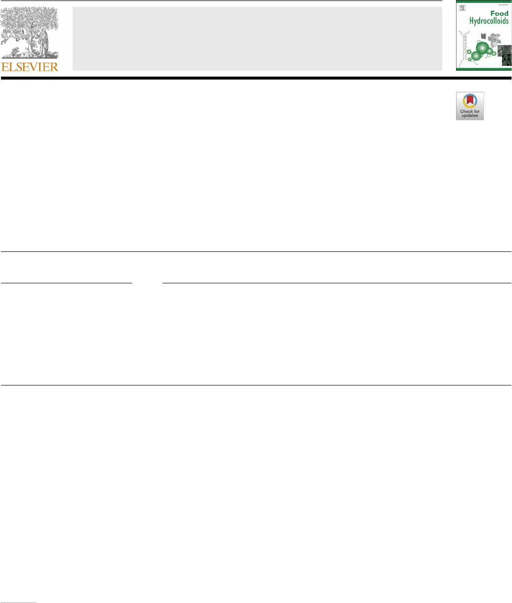 Food Hydrocolloids 151 (2024) 109832 Available online 2 February 2024 0268-005X/© 2024 The Authors. Published by Elsevier Ltd. This is an open access article under the CC BY license (http://creativecommons.org/licenses/by/4.0/). Renewable methanol utilizing bacteria as future meat analogue: An explorative study on the physicochemical and texturing properties of Methylobacillus flagellatus biomass and fractions Wanqing Jia a,d, Laurice Pouvreau b, Atze Jan van der Goot a, Timotheus Y. Althuis c, David Virant e, Aleksander J. Kruis e, Gregor Kosec e, Nico J. Claassens c, Julia K. Keppler a,* a Laboratory of Food Process Engineering, Wageningen University, P.O. Box 17, 6700 AA, Wageningen, the Netherlands b Wageningen Food and Biobased Research, Wageningen University, P.O. Box 17, 6700 AA, Wageningen, the Netherlands c Laboratory of Microbiology, Wageningen University, 6708 WE, Wageningen, the Netherlands d Farmless, 1068KL, Amsterdam, the Netherlands e Acies Bio d.o.o., Tehnološki Park 21, SI-1000 Ljubljana, Slovenia A R T I C L E I N F O Keywords: Single cell protein Gram-negative bacteria Meat analogue Shear cell Functional properties Future food A B S T R A C T There is an ongoing search for sustainable and functional alternative protein sources to animal proteins. Meth- ylobacillus flagellatus (grown on renewable methanol) is known to give high protein yields with low resource requirements. However, the techno-functionality for food applications has not yet been explored. In this study, the biomass was processed by microfluidizer, centrifugation and acid precipitation. Unprocessed biomass (UB: protein content of 73 %) and processed biomass fractions were investigated on their composition, physico- chemical and rheological properties. All the biomass fractions had comparable composition, a pink, meat-like colour and umami smell. Differences were observed in the rheological and structuring properties using shear cell: UB yielded layered but crumbly structure, while the acid precipitated fraction resulted in a firm consistent product. From a functional point of view, M. flagellatus is a promising protein source that can be used for meat analogues without extensive prior fractionation. 1. Introduction Due to the increasing global demand for high-quality protein and the simultaneous growing awareness among consumers that the dispro- portionate consumption of meat proteins is not sustainable, there is growing interest in the search for alternative protein sources. Plant proteins are promising, but often have deficiencies in functionality and sensory characteristics that limit their application for imitating the meat and dairy products (Kyriakopoulou et al., 2021). Recently, so-called single cell protein or cellular protein have been described as potential alternatives for plant proteins. In this category, fungi (e.g. Quorn™), yeast and bacteria are investigated, and some cases already commer- cialized for their protein yield, composition, and functional properties as food ingredient (Kyriakopoulou et al., 2021; Nyyssölä et al., 2022; Ritala et al., 2017). However, while these are usually grown on glucose (for example from maize or sugar beet), growing bacteria on renewable methanol could be an alternative approach avoiding the dependence on crops as substrate (Cotton et al., 2020; Leger et al., 2021; Sakarika et al., 2022). Methanol is a promising feedstock that can be made renewable from CO2, water, and electricity. Energy-efficient processes for pro- duction of e-methanol, using hydrogen from water electrolysis as in- termediate, are already developed and currently being scaled-up industrially (IRENA and Methanol Institute, 2021). In addition, meth- anol can be renewably made from residual waste biomass and municipal solid waste, as these waste streams can be gasified and the generated syngas can be converted into bio-methanol. M. flagellatus is a promising obligate methylotroph Gram-negative strain with high protein content. It was selected as a prospective in- dustrial strain due to its high growth rates and yields (Kruis et al., 2022). However, its compositional and functional properties for food applica- tions have not been explored yet. One of the challenges of using mi- crobial biomass for food is their high nucleic acid content. This is a concern because the ingestion of purine compounds derived from RNA degradation increases plasma uric acid concentrations, which can cause gout and kidney stones (Anaizi, 2023). * Corresponding author. E-mail address: julia.keppler@wur.nl (J.K. Keppler). Contents lists available at ScienceDirect Food Hydrocolloids journal homepage: www.elsevier.com/locate/foodhyd https://doi.org/10.1016/j.foodhyd.2024.109832 Received 19 November 2023; Received in revised form 20 January 2024; Accepted 29 January 2024 mailto:julia.keppler@wur.nl www.sciencedirect.com/science/journal/0268005X https://www.elsevier.com/locate/foodhyd https://doi.org/10.1016/j.foodhyd.2024.109832 https://doi.org/10.1016/j.foodhyd.2024.109832 https://doi.org/10.1016/j.foodhyd.2024.109832 http://crossmark.crossref.org/dialog/?doi=10.1016/j.foodhyd.2024.109832&domain=pdf http://creativecommons.org/licenses/by/4.0/ Food Hydrocolloids 151 (2024) 109832 2 The aim of the present study is to screen the composition, physico- chemical, rheological, and texturing properties of unprocessed M. flagellatus biomass and its derived fractions. We hypothesize that these properties of the unprocessed microbial biomass and its derived fractions are influenced by the different processing steps and thus have different potential for food applications. Besides the above-mentioned analysis, microbial safety assessment for human consumption is also one of the main challenges for the food application, which is not part of this study. M. flagellatus is not known to be pathogenic, but it has not been tested and approved for food application yet. In this study we focussed on the compositional and techno-functio