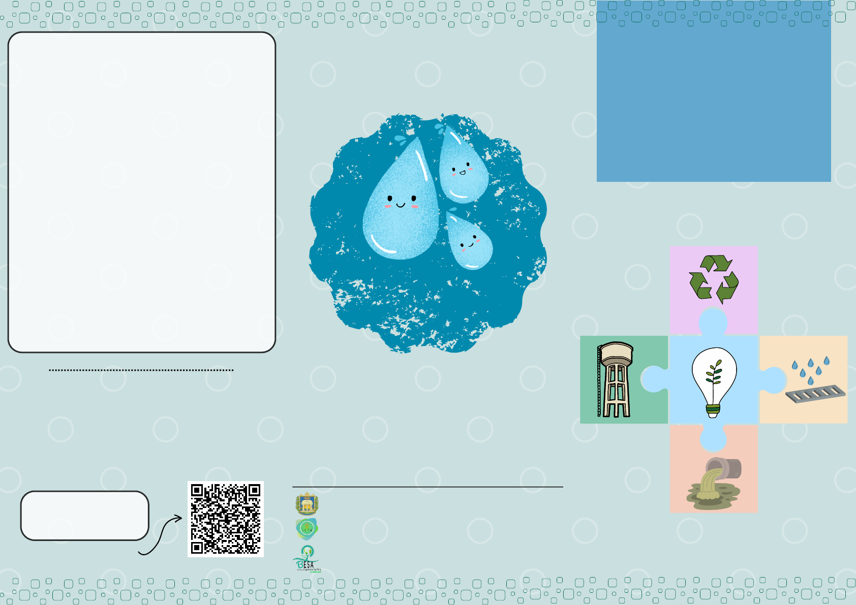 Acesse o edital pelo QR CODE Resumo geral da matriz curricular Disciplinas obrigatórias 4515 horas Disciplinas optativas 180 horas Atividades complementares 80 horas Estágio curricular supervisionado 180 horas Práticas Integradoras de Extensão 480 horas Trabalho de conclusão de curso 30 horas Dia Mundial da Água 22 de Março Aproveite que o Processo Seletivo Regular (PSR) 2023 da UFOPA está recebendo inscrições e se inscreva em nosso curso! Inscrições: até 15/04/2023 Universidade Federal do Oeste do Pará Rua Vera Paz, S/N - Salé, 68040-255 Santarém, PA - Brasil Bacharelado em Engenharia Sanitária e Ambiental Autoria: Janaina dos Santos Mendes Santarém, Pará 2023 Bacharelado em Engenharia Sanitária e Ambiental Sobre a UFOPA Você sabia? Só no ICTA há 5 cursos de Graduação e 2 de Pós-Graduação. O engenheiro Sanitarista e Ambiental pode atuar nas seguintes áreas: Avaliação ambiental; Estudos ambientais; Execução e operação de sistemas ambientais; Tecnologia Ambiental; Licenciamento ambiental. Vale ressaltar que... Nosso curso possui laboratórios altamente equipados que auxiliam na formação de nossos alunos, assim como nas variadas pesquisas em nossa região. Curso de Engenharia Sanitária e Ambiental São 5 anos de curso de forma integral O curso tem por objetivo formar profissionais habilitados em metodologias e tecnologias de sistemas de Engenharia Sanitária e Ambiental para promover a qualidade ambiental. Sustentabilidade é palavra-chave do curso! A Universidade Federal do Oeste do Pará (UFOPA) é a primeira instituição federal de ensino superior com sede no interior do estado do Pará. Atualmente a UFOPA possui 7 institutos, e entre eles há o Instituto de Ciências e Tecnologia das Águas (ICTA). O Bacharelado em Engenharia Sanitária e Ambiental (BESA) está vinculado ao Monte Alegre Novo Progresso Óbidos Oriximiná Santarém Alenquer Itaituba Juruti Monte Alegre Onde a UFOPA atua? Bacharelado Interdisciplinar em Ciências e Tecnologia das Águas (BICTA). É dever deste profissional pensar no desenvolvimento social e econômico sem desviar o foco da preservação e conservação dos ecossistemas. Quais as áreas de atuação? O BESA foi estruturado para ser finalizado entre 10 (mínimo) e 15 semestres (máximo). Estrutura curricular do curso Hoje a UFOPA possui mais de 35 cursos de graduação, e entre eles, há o Bacharelado em Engenharia Sanitária e Ambiental. Cada laboratório possui um coordenador, um técnico e suas diferentes áreas de atuação. Você sabia? A UFOPA foi criada em 2009 com sede em Santarém.