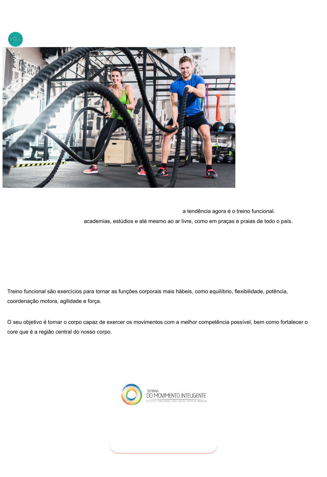 Para quem quer emagrecer, definir e melhorar o condicionamento físico, a tendência agora é o treino funcional. O queridinho da vez está ganhando espaço nas academias, estúdios e até mesmo ao ar livre, como em praças e praias de todo o país. O treino que caiu no gosto das celebridades e agora é alvo de muitas mulheres e homens que buscam um corpo mais harmônico. O treino está longe de ser um mar de marasmo, dinâmico e divertido. Mas ele é a garantia de um corpo mais apolíneo, ágil e forte, além é claro de garantir o emagrecimento, já que uma única sessão pode queimar até 800 calorias. O que é Treino Funcional? Treino funcional são exercícios para tornar as funções corporais mais hábeis, como equilíbrio, flexibilidade, potência, coordenação motora, agilidade e força. O seu objetivo é tornar o corpo capaz de exercer os movimentos com a melhor competência possível, bem como fortalecer o core que é a região central do nosso corpo. Os músculos do core são responsáveis pela força que mantém a estabilidade da coluna lombar e a flexibilidade. Vem aí! De 03 a 05 de Julho Uma Conferência 100% Online e Gratuita para Profissionais do Pilates e Treinamento Funcional QUERO PARTICIPAR GRATUITAMENTE! 11 Exercícios Fundamentais no Treino Funcional Escrito por Equipe VOLL 26 de junho de 2017, 2:00 pm 0 http://www.mitcurso.com.br/semana/#utm_source=EducacaoFisica&utm_medium=CTAincontent&utm_campaign=Semana%20MIT%20Educacao%20Fisica&utm_term=Semana%20MIT%20Educacao%20Fisica&utm_content=Semana%20MIT%20Educacao%20Fisica http://blogeducacaofisica.com.br/author/equipevoll/ http://blogeducacaofisica.com.br/11-exercicios-treino-funcional/#respond PCFamília Realce PCFamília Realce PCFamília Realce PCFamília Realce O treino funcional não trabalha apenas músculos isolados, os movimentos exercidos no funcional permitem que todos os grupos musculares sejam trabalhados de forma integral. São exercícios feitos com os movimentos naturais do corpo como agachar, pular, correr, girar, empurrar, entre outros. Como Funciona o Treino Funcional? O treino usa alguns equipamentos como cabos, pesos, bolas, elásticos, entre outros. Porém, os exercícios na maioria das vezes são realizados com o peso e a força do próprio corpo e é aplicado de acordo com a individualidade de cada pessoa. Os treinos costumam ser motivacionais, fazendo com que o aluno se dedique e se esforce para alcançar os objetivos. O treino funcional deve ser classificado em três grandes bases: Transição de exercícios convencionais para funcionais: fazer uma troca paulatina de exercícios em aparelhos, para exercícios com o próprio corpo; Treinamento do Core: concentrar o trabalho do centro do corpo para as extremidades, auxiliando o aprendizado e a melhoria da consciência corporal; Cinestesia: realizar atividades seguras em superfícies volúveis para melhorar a reação do nosso corpo com relação a um percalço; Anamnese É muito importante fazer uma avaliação física antes de começar o treino funcional, com ela é mais fácil obter o sucesso desejado. O objetivo de realizar uma anamnese específica sobre atividades físicas e outras anamneses como a cardíaca e outras doenças, postural, nutricional (trabalhe em conjunto com um nutricionista) é que ela possibilita o médico e o educador físico conhecer um pouco do histórico de saúde do aluno, possíveis lesões que ele possa ter sofrido e objetivos a serem atingidos. Exemplo de anamnese: Nome, idade, peso, estatura, etnia, sexo, nível de condicionamento físico; Tipo sanguíneo, fator RH, pressão arterial, F.C em repouso, último check-up; Testes de esforço, estresse, anemia, glicose, colesterol (HDL, LDL), triglicérideos; Fumante (número de cigarros por dia e se parou, quando?); Alergias (fator desencadeante); Doenças anteriores; Doenças familiares; Cirurgias e internações, lesões anteriores; Uso de medicação; Anamnese Nutricional: Nome do (a) Nutricionista, telefone; Quantas refeições são feitas por dia; Ingere bebidas alcoólicas, qual a frequência; Ingestão calórica diária; Gasto calórico diário; Ingerem líquidos com que frequência; Consomem suplementos alimentares, quais; Anamnese Atividade Física: Pratica algum tipo de atividade física, qual?; http://blogeducacaofisica.com.br/pilares-avaliacao-fisica/ PCFamília Realce PCFamília Realce PCFamília Realce PCFamília Realce PCFamília Realce PCFamília Realce Quantas vezes por semana e a duração da atividade; Intensidade; Já praticou atividade física, há quanto tempo?; Objetivos da prática da atividade física; Horários preferidos; Atividades físicas preferidas; Disponibilidade, local, dias da semana, horários; Em seguida será realizada a avaliação de medidas antropométricas e de composição corporal como: peso, altura, dobras cutâneas e circunferências. E depois conhecer as necessidades e objetivos do aluno. Por fim, o treinamento com adaptação, especificidade, sobrecarga, volume e intensidade, individualidade biológica e variações das modalidades do programa. Tipos de Treino Funcional Como havia dito, os exercícios de treino funcional podem ser feitos em academias, estúdios, ao ar livre e até mesmo em casa. Mas o ideal é que sejam realizados sempre supervisionado e orientado por um educador físico. As aulas podem ou não utilizar acessórios. Os exercícios, embora não utilizem necessariamente aparelhos de musculação, são mais complexos do que treinos de musculação, não são raras às vezes em que é executado de forma errada, por isso a supervisão de um profissional é importante. Os tipos de exercidos são apoios, abdominal, prancha, corrida, pular corda, agachamento unilateral, levantamento, desenvolvimento de ombros, elevação lateral para ombros e deslocamento entre cones, com ou sem acessórios, e muitos outros. Acessórios Entre os acessórios para exercícios funcionais os mais comuns são: cordas, elásticos, cone