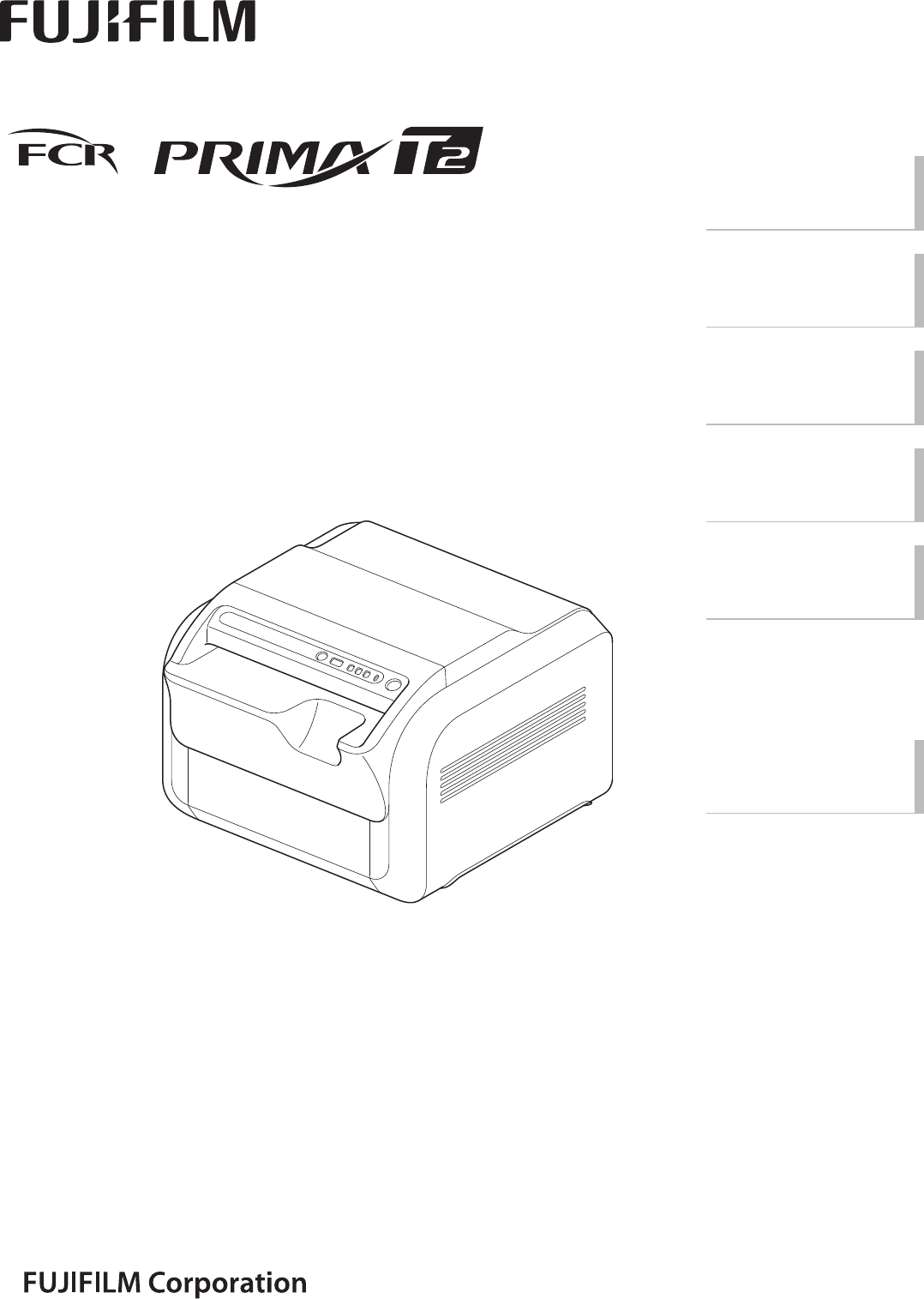 This Operation Manual describes details on how to operate the FCR PRIMA T2 (CR-IR 392) and cautions to be observed when operating it. Please read the Operation Manual thoroughly before actually operating the FCR PRIMA T2 (CR-IR 392) system. After reading this manual, store it nearby the FCR PRIMA T2 (CR-IR 392) so that you can see it whenever necessary. (CR-IR 392) Operation Manual 1st Edition For Safe Operation Product Overview Basic Operation Care and Maintenance Appendix Maintenance and Inspection 897N102546 ii FCR PRIMA T2 Operation Manual 897N102546 iiiFCR PRIMA T2 Operation Manual 897N102546 Introduction This Operation Manual is applicable to the following software. • FCR PRIMA T2 main unit software V2.0 or later The FCR PRIMA T2 (CR-IR 392) is equipment designed to scan an X-ray image formed on an imaging plate (IP), being an image reading unit used for the CR-IR 392 Fuji Computed Radiography system. An IP is used as an X-ray image detector. It records the image information of an image captured by an X-ray exposure. Accompanying documents were originally drafted in the English language. Installation may only be conducted by authorized service personal. CAUTION 1 No part or all of this manual may be reproduced in any form without prior permission. 2 The information contained in this manual may be subject to change without prior notice. 3 FUJIFILM Corporation shall not be liable for malfunctions and damages resulting from installation, relocation, remodeling, maintenance, and repair performed by other than dealers specified by FUJIFILM Corporation. 4 FUJIFILM Corporation shall not be liable for malfunctions and damages of FUJIFILM Corporation products due to products of other manufacturers not supplied by FUJIFILM Corporation. 5 FUJIFILM Corporation shall not be liable for malfunctions and damages resulting from remodeling, maintenance, and repair using repair parts other than those specified by FUJIFILM Corporation. 6 FUJIFILM Corporation shall not be liable for malfunctions and damages resulting from negligence of precautions and operating methods contained in this manual. 7 FUJIFILM Corporation shall not be liable for malfunctions and damages resulting from use under environment conditions outside the range of using conditions for this product such as power supply, installation environment, etc. contained in this manual. 8 FUJIFILM Corporation shall not be liable for malfunctions and damages resulting from natural disasters such as fires, earthquakes, floods, lightning, etc. Caution: Rx Only in the United States (Federal law restricts this device to sale by or on the order of a physician). How to Read This Manual Marks Information items to be observed when you are operating this system and the supplementary remarks are described in this manual with the respective marks. For the safe system operation, be sure to observe Warning/Caution. WARNING Indicates hazardous situations that may lead to serious injury or even death if the precaution is not or could not be followed. CAUTION Indicates hazardous situations that may lead to mild or moderate injury or physical damages if the caution is not or cannot be followed. HINT Shows an item helpful for further effective system operation. Shows a more detailed operation method or an item that describes additional information. Trademark FCR is a trademark or a registered trademark of FUJIFILM Corporation. Copyright © 2012 FUJIFILM Corporation. All rights reserved. iv FCR PRIMA T2 Operation Manual 897N102546 Contents Introduction ...........................................................................................................................iii How to Read This Manual ....................................................................................................iii Chapter 1 For Safe Operation 1.1 Precautions Before Operating This Equipment ....................................................... 1-1 1.2 Precautions to be Observed When Using the Electric Medical Equipment ............. 1-2 1.3 Safety ......................................................................................................................1-3 1.4 Electromagnetic Compatibility (EMC) ......................................................................1-5 1.5 Precautions to Take When Using the FCR PRIMA T2 (CR-IR 392) ........................ 1-9 1.6 Location of Each Label and Mark .......................................................................... 1-10 1.6.1 Locations ............................................................................................................... 1-10 1.6.2 Safety and Other Signs ......................................................................................... 1-12 Chapter 2 Product Overview 2.1 Features of the FCR PRIMA T2 (CR-IR 392) .......................................................... 2-1 2.2 Units Names and the Functions .............................................................................. 2-2 2.2.1 FCR PRIMA T2 (CR-IR 392) Main Unit ...................................................................2-2 2.2.2 Operation Panel .......................................................................................................2-3 2.2.3 Operation Panel Display at the Time of Startup/Shutdown .....................................2-4 Chapter 3 Basic Operation 3.1 Performing Erasure Before Use IPs ........................................................................ 3-1 3.2 System Startup/Shutdown and Image Reading (Console) ......................................3-2 3.2.1 Starting Up the System ...........................................................................................3-2 3.2.2 Shutting Down the System ......................................................................................3-3 3.2.3 Reading Cassette IP Images .................................................................................. 3-4 3.3 Starting Up/Shutting Down the FCR PRIMA T2 Main Unit .....