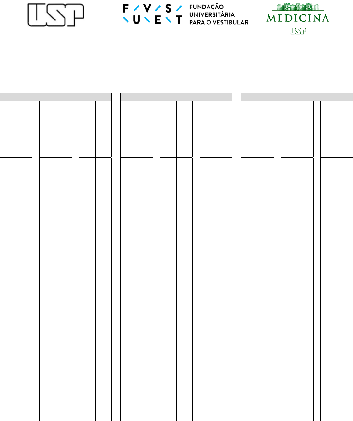 Universidade de São Paulo Brasil PROVAS DE ÁREAS BÁSICAS E DE ACESSO DIRETO EDITAL: COREME/FM/ Nº 01/2024 GABARITO PROVA A1 PROVA A2 PROVA A3 1 B 41 B 81 B 1 B 41 C 81 C 1 B 41 C 81 D 2 C 42 B 82 C 2 C 42 C 82 A 2 A 42 D 82 D 3 D 43 A 83 D 3 B 43 A 83 C 3 D 43 A 83 B 4 C 44 A 84 A 4 B 44 C 84 D 4 B 44 D 84 A 5 D 45 D 85 A 5 D 45 A 85 B 5 A 45 D 85 B 6 A 46 B 86 D 6 B 46 D 86 A 6 D 46 B 86 A 7 C 47 C 87 B 7 C 47 B 87 A 7 C 47 C 87 D 8 D 48 D 88 B 8 D 48 B 88 C 8 D 48 B 88 B 9 B 49 B 89 A 9 A 49 B 89 B 9 C 49 A 89 B 10 A 50 B 90 B 10 A 50 D 90 C 10 C 50 B 90 B 11 C 51 B 91 C 11 D 51 C 91 C 11 C 51 C 91 A 12 C 52 B 92 A 12 B 52 C 92 C 12 C 52 B 92 A 13 B 53 A 93 D 13 B 53 D 93 D 13 B 53 B 93 D 14 A 54 A 94 B 14 A 54 B 94 A 14 C 54 D 94 B 15 D 55 D 95 A 15 B 55 D 95 D 15 C 55 B 95 C 16 A 56 C 96 C 16 C 56 B 96 D 16 A 56 C 96 D 17 C 57 D 97 B 17 A 57 B 97 B 17 C 57 D 97 B 18 B 58 C 98 A 18 D 58 B 98 B 18 A 58 A 98 C 19 C 59 C 99 B 19 B 59 C 99 A 19 D 59 A 99 D 20 C 60 C 100 D 20 A 60 B 100 C 20 B 60 D 100 C 21 C 61 C 101 C 21 C 61 C 101 B 21 B 61 B 101 D 22 D 62 B 102 C 22 A 62 C 102 B 22 B 62 B 102 C 23 A 63 C 103 D 23 B 63 A 103 C 23 B 63 A 103 D 24 D 64 C 104 B 24 B 64 C 104 D 24 D 64 B 104 B 25 B 65 A 105 D 25 B 65 D 105 D 25 A 65 C 105 A 26 B 66 C 106 B 26 B 66 A 106 B 26 B 66 A 106 A 27 A 67 A 107 B 27 A 67 D 107 A 27 D 67 D 107 C 28 C 68 D 108 B 28 B 68 D 108 B 28 C 68 B 108 B 29 C 69 B 109 C 29 B 69 B 109 A 29 C 69 A 109 C 30 B 70 B 110 B 30 A 70 C 110 D 30 D 70 C 110 C 31 B 71 D 111 C 31 D 71 B 111 B 31 B 71 B 111 C 32 C 72 D 112 C 32 C 72 A 112 B 32 D 72 B 112 D 33 D 73 A 113 A 33 D 73 D 113 B 33 B 73 B 113 A 34 D 74 B 114 C 34 D 74 B 114 A 34 B 74 B 114 D 35 B 75 B 115 D 35 D 75 C 115 A 35 B 75 A 115 C 36 A 76 B 116 A 36 C 76 D 116 D 36 C 76 C 116 D 37 B 77 C 117 D 37 C 77 C 117 B 37 B 77 C 117 A 38 A 78 B 118 D 38 C 78 A 118 C 38 C 78 B 118 C 39 D 79 B 119 B 39 C 79 C 119 D 39 C 79 B 119 A 40 B 80 D 120 C 40 B 80 B 120 C 40 A 80 C 120 B Universidade de São Paulo Brasil PROVAS DE ÁREAS BÁSICAS E DE ACESSO DIRETO EDITAL: COREME/FM/ Nº 01/2024 GABARITO DE CORRESPONDÊNCIA RESPOSTA PROVA A1 PROVA A2 PROVA A3 RESPOSTA PROVA A1 PROVA A2 PROVA A3 RESPOSTA PROVA A1 PROVA A2 PROVA A3 B 1 74 97 B 41 112 89 B 81 06 55 C 2 75 115 B 42 113 90 C 82 07 56 D 3 76 99 A 43 114 91 D 83 08 57 C 4 77 100 A 44 115 92 A 84 09 58 D 5 73 101 D 45 116 93 A 85 10 59 A 6 82 117 B 46 117 94 D 86 11 60 C 7 83 102 C 47 118 95 B 87 12 61 D 8 84 103 D 48 119 96 B 88 13 62 B 9 85 104 B 49 26 01 A 89 14 63 A 10 86 105 B 50 28 22 B 90 15 64 C 11 81 98 B 51 29 23 C 91 16 65 C 12 79 118 B 52 25 04 A 92 17 66 B 13 80 120 A 53 27 02 D 93 18 67 A 14 78 119 A 54 30 05 B 94 19 68 D 15 96 116 D 55 31 06 A 95 20 69 A 16 87 106 C 56 32 07 C 96 21 70 C 17 88 107 D 57 33 08 B 97 71 48 B 18 89 108 C 58 36 09 A 98 72 25 C 19 90 109 C 59 37 10 B 99 49 26 C 20 91 110 C 60 38 11 D 100 50 27 C 21 92 111 C 61 39 12 C 101 51 28 D 22 93 112 B 62 40 13 C 102 52 29 A 23 94 113 C 63 41 14 D 103 53 30 D 24 95 114 C 64 42 15 B 104 54 31 B 25 97 73 A 65 43 16 D 105 55 32 B 26 98 74 C 66 44 17 B 106 56 33 A 27 99 75 A 67 45 18 B 107 57 34 C 28 120 76 D 68 46 19 B 108 58 35 C 29 100 77 B 69 47 20 C 109 59 36 B 30 101 78 B 70 48 21 B 110 60 37 B 31 102 79 D 71 34 03 C 111 61 38 C 32 103 80 D 72 35 24 C 112 62 39 D 33 104 81 A 73 22 49 A 113 63 40 D 34 105 82 B 74 23 71 C 114 64 41 B 35 106 83 B 75 24 72 D 115 65 42 A 36 107 84 B 76 01 50 A 116 66 43 B 37 108 85 C 77 02 51 D 117 67 44 A 38 109 86 B 78 03 52 D 118 68 45 D 39 110 87 B 79 04 53 B 119 69 46 B 40 111 88 D 80 05 54 C 120 70 47