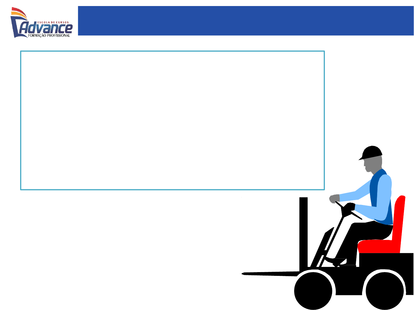 Segurança no uso de Empilhadeira Segurança no uso de Empilhadeira Sensibilizar os operadores de empilhadeira quanto a necessidade de neutralizar a possibilidade de provocar acidentes. Como? Adotando procedimentos de rotina pautadas pelas normas de segurança. Cumprindo o disposto na NR-11 da Portaria 3.214/78 MTE. Objetivo do treinamento NR-11 Transporte, movimentação armazenagem e manuseio de materiais (atualização abril/2016 - movimentação, armazenagem e manuseio de chapas de rochas ornamentais): 11.1.6. Os operadores de equipamentos de transporte motorizado deverão ser habilitados e só poderão dirigir se durante o horário de trabalho portarem um cartão de identificação, com o nome e fotografia, em lugar visível. 11.1.5. Nos equipamentos de transporte, com força motriz própria, o operador deverá receber um treinamento específico, dado pela empresa, que o habilitará nessa função. PERGUNTAS: É necessário possuir CNH para dirigir empilhadeira? Em qual categoria? Regulamentação legal Empilhadeira pode transitar em vias urbanas? CTB, Art. 144. O trator de roda, o trator de esteira, o trator misto ou o equipamento automotor destinado à movimentação de cargas ou execução de trabalho agrícola, de terraplenagem, de construção ou de pavimentação só podem ser conduzidos na via pública por condutor habilitado nas categorias C, D ou E. Continuação... NR-11.1.6.1. O cartão terá a validade de 1 (um) ano, salvo imprevisto, e, para a revalidação, o empregado deverá passar por exame de saúde completo, por conta do empregador. (note que não especifica quais são os exames) Exames: ECG, EEG, hemograma completo, glicemia, GamaGT (doenças hepáticas), oftalmológico, audiometria, etc. Detecção dos problemas: Cardíacos graves, epilepsia, diabetes e hipertensão descompensadas, etc. Regulamentação legal 11.1.7 Os equipamentos de transporte motorizados deverão possuir sinal de advertência sonora (buzina e sinal de ré). 11.1.8 Todos os transportadores industriais serão permanentemente inspecionados e as peças defeituosas, ou que apresentem deficiências, deverão ser imediatamente substituídas. 11.1.10 Em locais fechados e sem ventilação, é proibida a utilização de máquinas transportadoras, movidas a motores de combustão interna (GLP), salvo se providas de dispositivos neutralizadores adequados. Regulamentação legal Operação Segura! O grande motivo para segurança no trabalho pode ser um BEM pequeno! 11.3.2 O material armazenado deverá ser disposto de forma a evitar a obstrução de portas, equipamentos contra incêndio, saídas de emergências, etc. 11.3.3 O material empilhado deverá ficar afastado das estruturas laterais do prédio a uma distância de pelo menos 0,50m (cinquenta centímetros). 11.3.4 A disposição da carga não deverá dificultar o trânsito, a iluminação e o acesso às saídas de emergência. Regulamentação legal Regulamentação legal NR-12 (dez. de 2011): Segurança no trabalho em máquinas e equipamentos 12.146 Os operadores de máquinas autopropelidas devem portar cartão de identificação, com nome, função e fotografia em local visível, renovado com periodicidade máxima de 01 ano mediante exame médico, conforme disposições constantes das NR-7 e NR-11. Autopropelida: Que se desloca através de um meio próprio de propulsão. Pessoa habilitada e treinada, com conhecimento técnico e funcional do equipamento. É o responsável direto pela segurança da operação, pessoas e demais bens interligados a ela. Operador de empilhadeira Conhecendo a empilhadeira O que é empilhadeira? Um veículo autopropulsor com três rodas, pelo menos, projetado para levantar, transportar e posicionar materiais. É um veículo autopropulsor projetado para levantar, transportar e posicionar materiais. As rodas traseiras são direcionais e as dianteiras são de tração. sub-tipos de empilhadeiras. Gasolina: Emite grande poluição para o ambiente Diesel: Apresenta maior poluição que a da gasolina Elétrica: Zero emissão de gases poluentes GLP (gás): Polui menos que os outros combustíveis Algumas marcas: Conhecendo a empilhadeira Conhecendo a empilhadeira Sub-tipos de empilhadeiras Conhecendo a empilhadeira PERGUNTA: Porque algumas empilhadeiras são alaranjadas ou amarelas? NBR-7195 – Cores para segurança. Item 3.1.3 Cor amarela: É a cor usada para indicar “cuidado!”. É utilizada, por exemplo, em: l) equipamentos de transporte e movimentação de materiais, como empilhadeiras, tratores, pontes rolantes, pórticos, guindastes, vagões e vagonetes de uso industrial, reboques, etc., inclusive suas cabines, caçambas e torres. Item 3.1.2 Cor alaranjada: É a cor empregada para indicar “perigo”. Princípios de funcionamento É construída sob o princípio da gangorra, onde a carga colocada nos garfos é equilibrada pelo peso da máquina. O centro de rotação ou o apoio da gangorra é o centro das rodas dianteiras. O contrapeso é formado pela própria estrutura do veículo (combustão) ou pela bateria (elétrica). A capacidade de elevação de uma empilhadeira é afetada por: Peso da carga; Distância do centro de gravidade da carga (centro da carga) VÍDEO A B Princípios de funcionamento x y Princípios de funcionamento Triângulo de estabilidade: É a área formada pelos três pontos de suspensão da máquina: Pino de articulação do eixo traseiro e Cada uma das rodas dianteira. A escolha do tipo de pneus é em função das condições: Operação Local Piso Rampa Distância a ser percorrida. Pneus com câmara de ar - são usados em pesados, operações externas e terrenos irregulares; Pneus maciços -usado onde o empilhamento é serviços alto e onde são requeridos pequenos diâmetro. Princípios de funcionamento O Tombamento é fácil de ocorrer, desde que a distribuição de peso esteja desigual à altura e fora da área de estabilidade. Maior peso > Mais baixa a carga Menos peso > mais alto a carga Princ