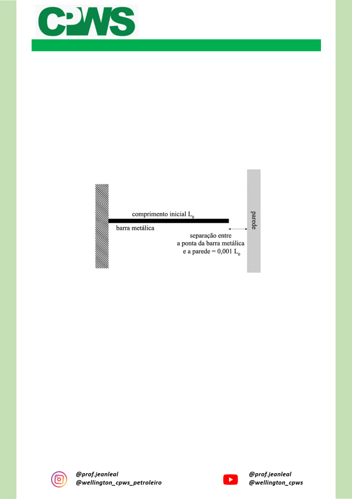 TERMOLOGIA (CEBRASPE 2023 – TBG) Acerca do fenômeno de dilatação térmica, julgue os seguintes itens. 1) Existe uma relação matemática simples entre o coeficiente de dilatação linear (α) e o coeficiente de dilatação superficial (β) para um mesmo material sólido, que é dada por β = α/2. 2) Considere-se que, no esquema a seguir, o coeficiente de expansão linear da barra metálica seja 10−5 °C−1. Nessa situação, adotando-se apenas a dilatação linear no eixo da barra e desconsiderando-se os efeitos de dilatação da parede, será necessária uma elevação de 100 °C para que a barra entre em contato com a parede. (CEBRASPE – PETROBRAS 2023 ÊNFASE 2) Com relação à medição de temperatura e suas escalas e à conversão de unidades, julgue o item a seguir. 3) Uma variação de 10 graus na escala Celsius corresponde a uma variação de 18 graus na escala Fahrenheit. 4) (CEBRASPE 2022) Considere-se uma barra de aço com 10 cm de comprimento, 6 cm2 de área de seção transversal retangular e cujas extremidades sejam submetidas a temperaturas constantes e diferentes, 20 ℃ em uma extremidade e 130 ℃ em outra. Nessa hipótese, sabendo-se que a condutividade térmica do aço vale 1,1 × 10−2 kcal ∙ (m ∙ ℃ ∙ s)−1, após alcançado o estado estacionário, o valor do fluxo de calor na barra, devido ao processo de transmissão de calor por condução, é superior ou igual a 1 cal/s e inferior a 10 cal/s. (CEBRASPE 2016 – FUB) Em um laboratório, 300 g de gelo que se encontra a -10 ºC deverá ser transformado em água a +50 ºC. Considerando o calor latente de fusão do gelo igual a 80 cal/g, o calor específico do gelo igual a 0,5 cal/g ºC e o calor específico da água igual a 1 cal /g ºC, julgue o item subsequente. 5) Para que todo o gelo a -10 ºC se transforme em água a 0 ºC são necessárias 24.000 cal. P E T R O B R A S/ P S P R H 2 0 2 3 .2 Ê N FA SE 2 : IN SP EÇ Ã O D E E Q U IP A M E N TO S E I N ST A LA Ç Õ ES (CEBRASPE 2016) Um fio de cobre de 40 cm de comprimento e área de seção transversal desprezível, a uma temperatura inicial de 30 ºC (ou 18 ºX, em que ºX é outra escala termométrica), foi aquecido até atingir uma temperatura de 100 ºC (60 ºX). Com base nessas informações, julgue o seguinte item, considerando o coeficiente de dilatação linear do cobre igual a 1,7 × 10-6 / ºC, e considerando também os princípios relacionados a escalas termométricas, equilíbrio térmico e dilatação térmica. 6) Dois corpos que estejam em equilíbrio térmico apresentam a mesma temperatura em Kelvin; o mesmo processo não ocorrerá caso essa temperatura seja medida em graus Celsius. (CEBRASPE 2015) Julgue o item subsequente, a respeito da variação do tamanho ou volume de um material em consequência de mudança da temperatura. 7) Independentemente do estado físico, o coeficiente de expansão de um material é sempre o mesmo. (CEBRASPE 2018 – INMETRO TÉCNICO DE METROLOGIA) Com relação às escalas de temperatura em graus Celsius, Fahrenheit e Kelvin julgue as afirmativas a seguir: 8) Existe um ponto de coincidência entre as escalas Celsius e Fahrenheit na temperatura equivalente a -38 K. 9) Um intervalo de 9 graus na escala Fahrenheit corresponde a um intervalo de 5 graus na escala Celsius. 10) A temperatura confortável de 20 o C equivale a uma temperatura de 72 o F. 11) A água congela a 43 °F, nas condições normais de pressão. 12) O limite inferior de temperatura em uma escala absoluta é denominado zero absoluto. Se a temperatura mais baixa registrada em determinada região geográfica for igual a – 50 o C, essa temperatura corresponderá ao zero absoluto nessa região. (CEBRASPE – 2015) Quando varia a quantidade de calor cedida a um corpo, a sua temperatura aumenta gradativamente, desde que esteja em uma mesma fase física da matéria. No processo de mudança de fase, a temperatura permanece constante, e o calor cedido é utilizado para a mudança de fase. O gráfico a seguir representa a curva de aquecimento de determinado material, em que os intervalos A, B, C, D e E destacam as diversas fases e os processos de transformação. Ê N FA SE 2 : IN SP EÇ Ã O D E E Q U IP A M E N TO S E I N ST A LA Ç Õ ES P E T R O B R A S/ P S P R H 2 0 2 3 .2 A partir das informações apresentadas acima e considerando que as quantidades das grandezas sejam proporcionais à representação no gráfico, julgue o item subsecutivo. 13) Os intervalos A, C e E do gráfico ilustram, respectivamente, as fases sólida, líquida e gasosa. (CEBRASPE 2010) Suponha que uma chapa fina de alumínio, de forma retangular com lados A e B distintos entre si, seja submetida a um incremento de sua temperatura de T1 para T2 e, como resultado, passe por processo de dilatação. Com base nas informações julgue o que se segue: 14) O lado que era maior antes da dilatação permanecerá maior após esse processo. 15) Dependendo dos valores de T1 e T2, é possível a obtenção de uma chapa quadrada. 16) A variação no comprimento de cada lado é inversamente proporcional à variação da temperatura. 17) A variação no comprimento de cada lado é fenômeno que independe do seu comprimento inicial. (IDECAN 2021) Com relação aos mecanismos de transferência de calor, julgue as afirmações a seguir: 18) Na transferência de calor por condução não há fluxo de matéria, há apenas fluxo de energia e corre preferencialmente em materiais no estado sólido. 19) Na convecção ocorre fluxo de massa e de energia. 20) Condução, convecção e radiação são mecanismos de transferência de calor, os dois primeiros não ocorrem no vácuo enquanto que o último ocorre. 21) A condução é um processo de transferência de energia que não ocorre se os corpos estiverem à mesma temperatura. Ê N FA SE 2 : IN SP EÇ Ã O D E E Q U IP A M E N TO S E I N ST A LA Ç Õ ES P E T R O B R A S/ P S P R H 2 0 2 3 .2 22) Um termômetro A foi calibrado de 