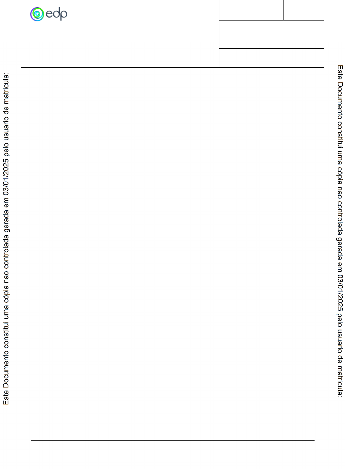 TÍTULO CÓDIGO VERSÃO ES.DT.PDN.00169 02 VIGÊNCIA INÍCIO FIM 05/10/2023 CONDICIONADO CLASSIFICAÇÃO DA INFORMAÇÃO ESPECIFICAÇÃO TÉCNICA CABOS COM ISOLAÇÃO EXTRUDADA DE POLICLORETO DE VINILA (PVC) - 0,6/1KV “PÚBLICA” SUMÁRIO 1. OBJETIVO ...........................................................................................................................................................2 2. APLICAÇÃO ........................................................................................................................................................2 3. REFERÊNCIAS EXTERNAS ....................................................................................................................................2 4. DEFINIÇÕES........................................................................................................................................................3 5. DESCRIÇÃO E RESPONSABILIDADES ....................................................................................................................3 5.1. Requisitos Gerais ........................................................................................................................................3 5.1.1. Tipos.......................................................................................................................................................3 5.1.2. Identificação ...........................................................................................................................................3 5.1.3. Condutor ................................................................................................................................................3 5.1.4. Isolação ..................................................................................................................................................3 5.2. Acondicionamento .....................................................................................................................................4 5.3. Desvios à Especificação...............................................................................................................................4 5.4. Garantia .....................................................................................................................................................4 5.5. Condições Específicas .................................................................................................................................4 5.6. Inspeção e Ensaios ......................................................................................................................................4 5.6.1. Generalidades.........................................................................................................................................4 5.6.2. Ensaios....................................................................................................................................................5 5.7. Aceitação ou Rejeição.................................................................................................................................5 5.7.1. Responsabilidade do fabricante ..............................................................................................................5 5.8. Execução dos Ensaios..................................................................................................................................5 5.9. Amostragem...............................................................................................................................................5 6. INFORMAÇÃO DOCUMENTADA..........................................................................................................................5 7. HISTÓRICO DAS REVISÕES ..................................................................................................................................5 8. ANEXOS .............................................................................................................................................................6 TÍTULO CÓDIGO VERSÃO ES.DT.PDN.00169 02 VIGÊNCIA INÍCIO FIM 05/10/2023 CONDICIONADO CLASSIFICAÇÃO DA INFORMAÇÃO ESPECIFICAÇÃO TÉCNICA CABOS COM ISOLAÇÃO EXTRUDADA DE POLICLORETO DE VINILA (PVC) - 0,6/1KV “PÚBLICA” PÁGINA 2 DE 6 1. OBJETIVO Estabelecer os critérios e as exigências técnicas mínimas aplicáveis a fabricação e ao recebimento dos condutores com isolação extrudada de policloreto de vinila (PVC) para tensões 0,6/1KV, destinados às empresas do Grupo EDP. 2. APLICAÇÃO Esta especificação aplica-se às distribuidoras de energia do grupo EDP no Brasil. 3. REFERÊNCIAS EXTERNAS Os condutores com isolação extrudada de policloreto de vinila para tensões 0,6/1KVdevem satisfazer às condições exigidas nesta Especificação e no que não contrariem a esta, as seguintes normas em suas últimas versões: NBR 5111 - Fios de cobre nus de seção circular para fins elétricos – Especificação; NBR 9511 - Cabos elétricos – Raios mínimos de curvatura para instalação e diâmetros mínimos de núcleo de carretéis para acondicionamento – Padronização. NBR 11137 - Carretéis de madeira para o acondicionamento de fios e cabos elétricos – Dimensões e estruturas – Padronização; NBR 5456 - Eletricidade Geral – Terminologia; NBR 5471 - Eletrotécnica e eletrônica – Condutores Elétricos – Terminologia; NBR 6242 - Verificação dimensional para fios e cabos elétricos – Métodos de ensaio; NBR 6814 - Fios e cabos elétricos – ensaio de resistência elétrica; NBR 7312 - Rolos para fios e cabos elétricos – Características dimensionais –Padronização; NBR 7288 - Cabos de potência com isolação extrudada de cloreto de Polivinila (PVC) ou Polietileno (PE) para tensões de 1 kV a 6 kV; NBR 6244 - Ensaio de resistência à chama para fios e cabos elétricos – Método de ensaio; NBR 6251 - Cabo
