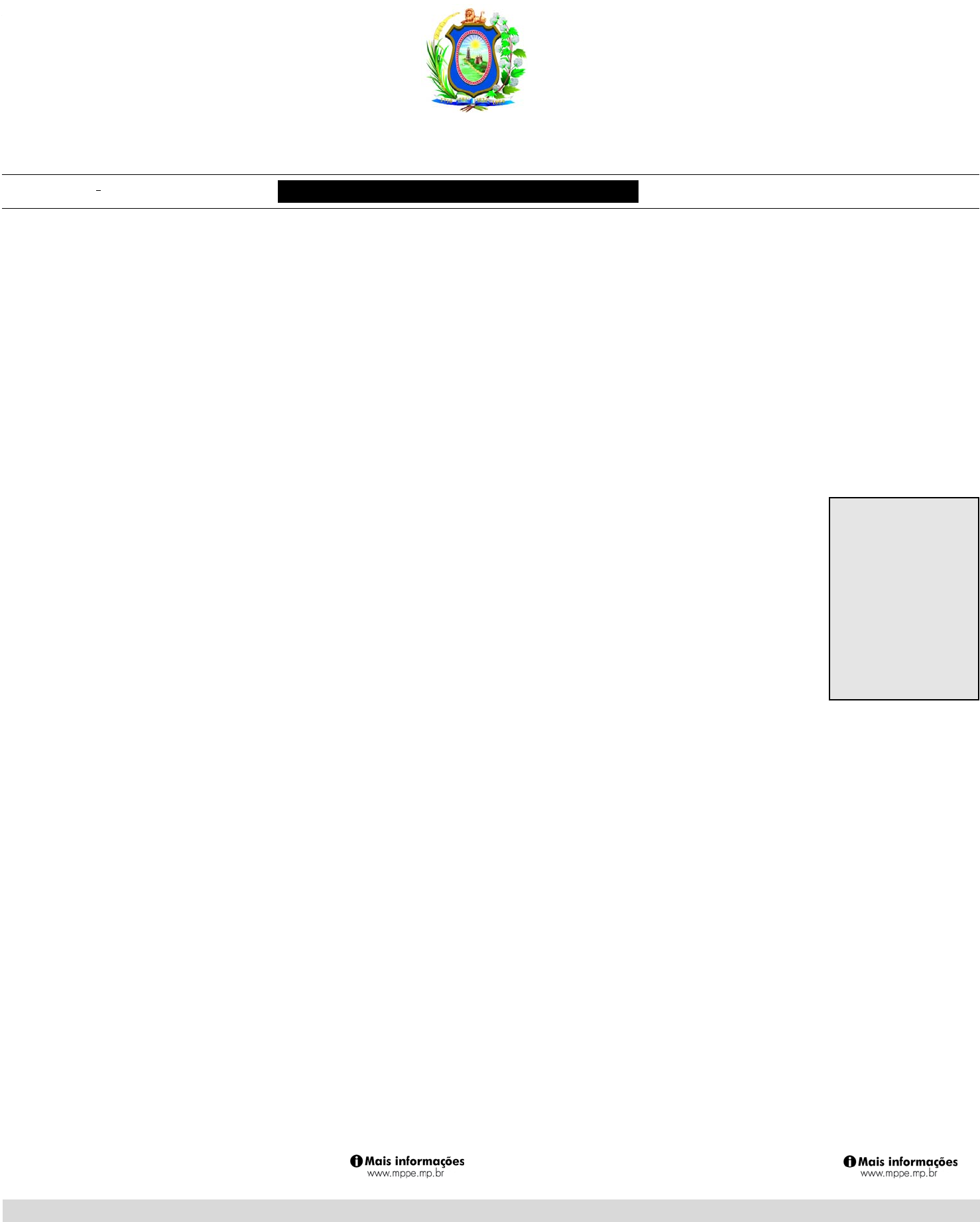 Diário Oficial Estado de Pernambuco Ministério Público Estadual Recife, sexta-feira, 27 de novembro de 2015Ano XCII • N0 215 CERTIFICADO DIGITALMENTE BREJO DA MADRE DE DEUS CC onsiderando a emer- gência sanitária pro- vocada pela epide- mia da dengue, chikungunya e zika vírus, as Secretarias Municipais da Saúde e da Fazenda de Olinda se com- prometem a retornar com os profissionais de saúde para o Serviço de Pronto Atendi- mento (SPA) de Peixinhos em 1° de dezembro. Com isso, o SPAPeixinhos volta a atender com plantões noturnos. Essa foi a principal deliberação da audiência pública realizada pelo Ministério Público de Pernambuco, por meio da 2ª promotora de Justiça de Cidadania de Olinda, Maísa Melo, na quarta-feira (24). As Secretarias também vão apresentar no dia 21 de ja- neiro de 2016 uma proposta de regularização de todos os plantões do SPA Peixinhos, bem como prover as lacunas deixadas com o retorno des- ses profissionais para o SPA Peixinhos. A secretária de Saúde de O- linda, Tereza Miranda, escla- receu que a proposta é reabrir o plantão sem contratar novos profissionais, reorganizando as equipes, uma vez que a Se- cretaria da Fazenda já anun- ciou dificuldade financeira para o município fazer novas contratações. “Para um equi- pe básica para plantão são ne- cessários três clínicos, três pediatras, dois enfermeiros e dez técnicos de enfermagem, dois recepcionistas e dois auxiliares de serviços gerais. Hoje, o quadro de profis- sionais do SPA Peixinhos tem ao todo 16 clínicos, 19 pedia- tras, dez enfermeiros e cinco técnicos de enfermagem”. O coordenador do Centro de Apoio Operacional às Promo- torias de Justiça de Defesa da Saúde (Caop Saúde) do MP- PE, promotor de Justiça Édipo Soares, ressaltou a situação de epidemia que se vive em relação à microce- falia, dengue, chikungunya e zika, exortando a Olinda não faltar com a atenção à saúde, bem como para atentar para os cortes previstos na Lei de Responsabilidade Fiscal, para que não se iniciem pelos serviços essenciais de saúde. Para o presidente do Cre- mepe, dr. Sílvio Rodrigues, as conquistas sociais, prin- cipalmente na saúde, preci- sam ser preservadas ainda que se esteja em crise. “O Cremepe mantém o posicio- namento de que a unidade (SPA Peixinhos) precisa funcionar 24 horas, sendo necessário que se trabalhe a saúde como prioridade”. Márcio Morais, do PSOL O- linda, questionou, na ocasião, o real impacto financeiro do fechamento do plantão notur- no, uma vez que nada sobre esse assunto foi apresentado de forma transparente para u- ma demanda que afeta uma boa parte da população. Como deliberação da audi- ência, a Secretaria de Saúde de Olinda também se com- prometeu a apresentar ao MPPE o impacto do retorno dos profissionais do SPA Peixinhos no demais equi- pamentos de saúde do mu- nicípio, no prazo de 20 dias, a contar da quarta-feira (24). Participaram também da au- diência a analista ministerial (do MPPE) em medicina, dra. Maria Helena Ferreira da Costa; e o secretário da Fazendo de Olinda, João Alberto; além da sociedade civil. Nesta sexta-feira (27), os Centros de Apoio Operacional às Promotorias de Justiça de Defesa da Cidadania e Saúde (Caop Cidadania e Caop Saú- de) promovem, em Gara- nhuns, um encontro com os promotores de Justiça da 5ª Circunscrição Ministerial, além de outros operadores da saúde, segurança, assistência social e educação, para um aprofundamento na questão do enfrentamento às drogas. Na abertura do encontro, o coordenador do Caop Cidada- nia, promotor de Justiça Mar- co Aurélio Silva, vai explanar sobre o projeto institucional de enfrentamento às drogas; e o coordenador do Caop Saúde, promotor de Justiça Édipo So- ares, sobre a rede de atenção à saúde mental. Em seguida será a palestra do analista ministe- rial da área médica com espe- cialidade em psiquiatria, dr. Marcos Creder, que vai abor- dar sobre o estudo de depen- dências químicas e os proble- mas relativos ao consumo de substâncias tóxicas. De acordo com o coordena- dor da 5ª Circunscrição, pro- motor de Justiça Domingos Sávio Agra, a ideia da reunião é instrumentalizar os promoto- res e outros operadores com uma compreensão mais ampla e atual sobre a questão das drogas, especialmente quanto à atenção à saúde mental. “Fo- ram convidados todos os pro- motores de Justiça da circuns- crição, além dos CREAs, CRAS, Polícias Civil e Militar, Conselho Tutelar e as Secretarias de Saúde, Educa- ção, Assistência Social de Garanhuns”. O Caop Cidadania está, com esse encontro em Garanhuns, retomando as atividades de ir às Promotorias de Justiça que aderiram ao projeto institu- cional discutir e ampliar a atuação para um efetivo enfrentamento às drogas. ENFRENTAMENTO ÀS DROGAS Medida foi a principal deliberação de audiência pública realizada pelo Ministério Público em Olinda O Ministério Público de Per- nambuco (MPPE), por meio da atuação do promotor de Justiça Antônio Rolemberg Feitosa Júnior, ingressou com uma Ação Civil Pública, com pedido de liminar, para que seja nomeado, em até 30 dias, um defensor público para a- tuar no município de Brejo da Madre de Deus. Aação é dire- cionada tanto ao Governo do Estado quanto à Defensoria Pública Geral do Estado. De acordo com o promotor de Justiça Antônio Rolemberg, há vários anos o Estado de Per- nambuco não presta assistên- cia jurídica, judicial e extraju- dicial, integral e gratuita, com- preendendo a orientação, pos- tulação e defesa de direitos e interesses em todos os graus de jurisdição, às pessoas com hi- possuficiência de recursos fi- nanceiros do município de Brejo da Madre de Deus. In- clusive, o promotor de Justiça Antônio Rolemberg afirma que foram feitas várias solicita- ções à pessoa do defensor pú- blico geral do estado, requisi- tando ao Estado de Pernambu- co a designação de um def