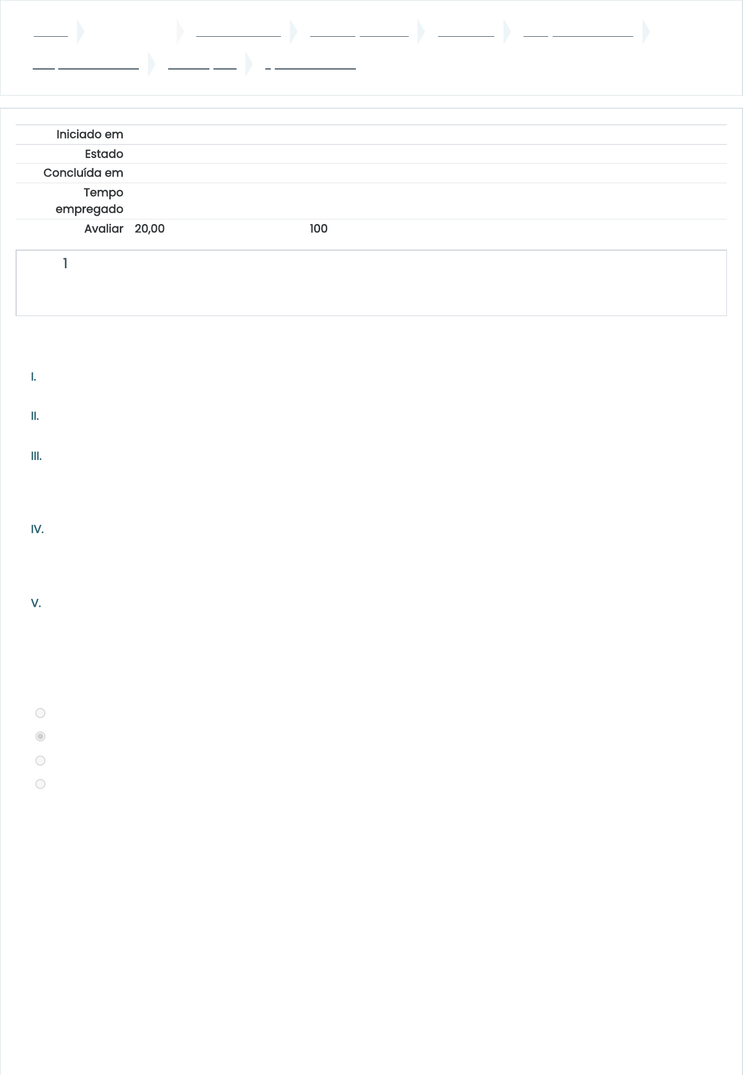 Painel Meus cursos CURSOS FUNEC Graduação - EAD Aluno EAD JUNÇÕES DE TURMA Máquinas Elétricas AVALIAÇÕES QUESTIONÁRIO 2 Iniciado em Friday, 23 Aug 2024, 15:49 Estado Finalizada Concluída em Friday, 23 Aug 2024, 15:53 Tempo empregado 3 minutos 46 segundos Avaliar 20,00 de um máximo de 20,00(100%) Questão 1 Completo Atingiu 2,00 de 2,00 Considere as afirmativas a seguir sobre os MOTORES MONOFÁSICOS: I. O motor universal é uma extensão imediata do motor CC série e, portanto, pode funcionar tanto com uma fonte de tensão CC como uma fonte de tensão CA. II. Um motor de indução monofásico não possui conjugado de partida, no entanto, quando o rotor começa a girar em um dos sentidos surgirá um conjugado líquido que tende a frear e girar o rotor no sentido contrário ao movimento. III. Um motor de indução monofásico com enrolamento de fase dividida possui um enrolamento auxiliar posicionado com um distanciamento angular de 90° do enrolamento principal. Dessa forma, com uma corrente adiantada devido a uma maior relação resistência/reatância em relação ao enrolamento principal, haverá a rotação do campo magnético e surgirá um conjugado de partida. IV. Nos motores de indução monofásicos com dois capacitores, um capacitor de valor menor estará presente no circuito do enrolamento auxiliar apenas durante a partida. Quando o motor atinge certa velocidade de operação, a chave centrífuga abre e apenas o capacitor permanente com maior valor de capacitância é mantido no circuito auxiliar. V. Os motores de indução monofásicos de polos sombreados produzem menos conjugado de partida do que qualquer outro tipo de partida para motor de indução. Neste tipo de motor o sentido de rotação pode ser invertido simplesmente trocando as ligações da bobina de sombreamento. Conclui-se que: Escolha uma opção: a. Apenas as afirmativas II e IV estão corretas b. Apenas as afirmativas I e III estão corretas c. Apenas as afirmativas III e V estão corretas d. Apenas as afirmativas I, II, IV e V estão corretas 23/08/2024, 15:52 QUESTIONÁRIO 2 https://ava.funec.br/mod/quiz/review.php?attempt=649934&cmid=23249 1/8 https://ava.funec.br/my/ https://ava.funec.br/course/index.php?categoryid=10 https://ava.funec.br/course/index.php?categoryid=17 https://ava.funec.br/course/index.php?categoryid=19 https://ava.funec.br/course/index.php?categoryid=77 https://ava.funec.br/course/view.php?id=1994 https://ava.funec.br/course/view.php?id=1994#section-5 https://ava.funec.br/mod/quiz/view.php?id=23249 Questão 2 Completo Atingiu 2,00 de 2,00 Questão 3 Completo Atingiu 2,00 de 2,00 Considere as afirmativas a seguir sobre MOTORES PARA APLICAÇÕES ESPECIAIS: I. Neste tipo de motor, quando a velocidade de rotação é menor do que a rotação síncrona, as correntes parasitas ajudam a incrementar o conjugado produzido. Na velocidade síncrona o rotor passa a se comportar como um ímã permanente e o conjugado será proporcional ao ângulo entre os campos magnéticos do estator e do rotor. II. São motores muito úteis em sistemas de controle e posicionamento pois permitem conhecer tanto a velocidade quanto a posição exata do motor. É projetado para girar um número específico de graus a cada pulso elétrico recebido em sua unidade de controle. III. Neste tipo de motor o campo externo induz um campo magnético interno no material ferromagnético e, dessa forma, surge um conjugado que tende a alinhar o objeto com o campo magnético externo. IV. Este tipo de motor possui um sensor de posição que permitirá ao circuito de controle desligar uma bobina e ligar outra de forma a manter um conjugado para que o motor possa girar. Com esse tipo de motor podem ser conseguidas velocidades muito elevadas. Assinale a alternativa que relaciona as afirmativas, na ordem em que foram apresentadas, com seu respectivo tipo de motor: ( ) Motor de relutância; ( ) Motor de histerese; ( ) Motor de passo; ( ) Motor CC sem escovas; Escolha uma opção: a. II, IV, III e I b. III, I, II e IV c. IV, III, II e I d. I, III, IV e II Assinale a alternativa INCORRETA sobre os motores e geradores CC: Escolha uma opção: a. Um motor CC série o conjugado é proporcional ao quadrado de sua corrente de armadura. Como resultado, este tipo de motor fornece mais conjugado por ampère do que qualquer outro motor CC. b. Em um gerador CC composto cumulativo na configuração hipercomposto, a tensão de terminal de plena carga é maior do que a tensão de terminal a vazio, devido ao reforço produzido no fluxo pelo enrolamento série. c. Uma desvantagem do motor CC composto cumulativo é que quando o conjugado vai a zero, a velocidade de rotação do motor CC série tende ao infinito. d. Um gerador CC série a vazio possui tensões em um nível bem baixo, dado somente pelo fluxo residual presente na máquina. A medida que a corrente aumente, a tensão induzida internamente eleva-se rapidamente. 23/08/2024, 15:52 QUESTIONÁRIO 2 https://ava.funec.br/mod/quiz/review.php?attempt=649934&cmid=23249 2/8 Questão 4 Completo Atingiu 2,00 de 2,00 Marque a opção que representa corretamente o tipo de motor representado no circuito equivalente da figura a seguir: Escolha uma opção: a. Motor CC em derivação b. Motor CC série c. Motor CC composto diferencial d. Motor CC composto cumulativo 23/08/2024, 15:52 QUESTIONÁRIO 2 https://ava.funec.br/mod/quiz/review.php?attempt=649934&cmid=23249 3/8 Questão 5 Completo Atingiu 2,00 de 2,00 Um motor de indução de 380 V, 10 HP, 60 Hz, quatro polos e ligado em Y, conforme a figura a seguir, tem as seguintes impedâncias em ohms por fase, referidas ao circuito do estator: R = 0,540 Ω; R = 0,488 Ω X = 2,093 Ω; X = 3,209 Ω; X = 51,12Ω Marque a opção que representa, respectivamente, o conjugado máximo e o conjugado de partida do motor: Escolha uma opção: a. Τ = 61,5 N.m; Τ = 12,2 N.m b. Τ = 33,7 N.m; Τ = 6,7 N.m c. Τ = 80,3 N.m; Τ = 80,3 N.m d. Τ = 170,4 N.m; Τ = 104,2 N.m 