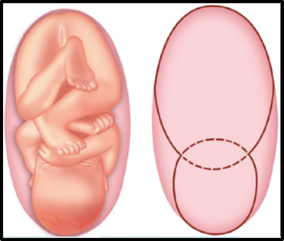 ESTÁTICA FETAL- TEXTO DE ESTUDO PROFA REGINA RIBEIRO Frequência da situação e da apresentação Neste capítulo, são analisadas as relações do produto conceptual com a bacia e com o útero. Trata-se do estudo que possibilita o conhecimento da nomenclatura obstétrica, fundamental para o tocólogo cultivado. Atitude Durante a gestação O continente uterino, ao termo da gravidez, mede, na maior de suas dimensões, 30 cm. O feto, com cerca de 50 cm de comprimento, deve adaptar-se a tais condições de espaço, flexionando-se. Dessa maneira, o seu eixo longitudinal (do lambda ao cóccix) fica reduzido a 25 cm. Denomina-se atitude ou hábito fetal a relação das diversas partes do feto entre si. Graças à flexibilidade da coluna vertebral e à articulação occipitovertebral, o feto se aloja na cavidade uterina em atitude de flexão generalizada, isto é, a coluna vertebral encurvada no seu todo e a cabeça com o mento aproximado da face anterior do tórax, o que dá ao concepto a forma ovoide, o ovoide fetal, que apresenta então dois polos: o cefálico e o pélvico, este maior que aquele (Figura 8.1). Nos membros inferiores, as coxas se fletem sobre a bacia e as pernas, na mesma atitude, sobre as coxas. Nos membros superiores, os braços se locam na face anterior do tórax bem como os antebraços, também fletidos. O conjunto do tronco com os membros denomina-se ovoide córmico. Na apresentação pélvica, a atitude da cabeça fetal é das mais variáveis: de regra ligeiramente fletida, com o mento próximo ao manúbrio. Pode, no entanto, ficar em atitude indiferente ou em deflexão; pode apresentar-se, ainda, lateralmente inclinada, com ou sem rotação. Essa atitude da cabeça, durante a gravidez, não tem implicações prognósticas para o parto, à vista da correção espontânea que ocorre no decurso do trabalho. No parto Ao iniciar-se o trabalho de parto, e principalmente após a amniorrexe, a atitude do feto se modifica. Nessas condições, devido à expansão do segmento inferior e à incorporação da cérvice, que ascende, o útero toma forma diversa daquela anteriormente guardada, passando de globosa a cilindroide, o que obriga o feto a endireitar o tronco, diminuindo sua flexão de maneira a se constituir em um cilindro, o cilindro fetal, formado pela cabeça fletida sobre o tronco, com as pequenas partes a ele mais aconchegadas. O polo cefálico é a parte do feto que merece o estudo mais minucioso, por ser o segmento menos redutível e desempenhar papel da maior importância no processo de adaptação ao trajeto pelviperineal. Enquanto o perímetro occipitofrontal é de 35 cm, o torácico, menor, mede 33 cm, uma peculiaridade que perdura, proporcionalmente, até o início do segundo ano de vida. O perímetro abdominal é ainda mais reduzido, medindo 28 cm. Figura 8.1 Ovoide fetal. Cabeça. Entre as duas partes que a compõem – crânio e face –, é a primeira que se reveste de importância obstétrica, devido às pequenas proporções de tamanho da segunda. O crânio é constituído de dois ossos frontais, dois parietais, dois temporais, um occipital, um esfenoide e um etmoide. Enquanto os ossos da abóbada craniana são separados por tecidos membranosos – suturas e fontanelas –, possibilitando a redução de seu volume durante o parto, os ossos da base compõem bloco indeformável. As suturas mais importantes são: •Sutura sagital, entre os parietais •Sutura metópica, interfrontal ou frontal média •Sutura coronária, entre os frontais e os parietais •Sutura lambdoide, entre os parietais e o occipital •Sutura temporal, entre os parietais e os temporais. As fontanelas, descritas a seguir, são zonas membranosas nos pontos de convergência de 3 ou 4 ossos e delas partem as suturas: •Fontanela bregmática (anterior, ou grande fontanela): tem configuração losangular, com os lados formados pelos frontais e parietais, e de cujos vértices saem as suturas sagital, metópica e coronária. Constitui valioso ponto de referência para o diagnóstico de posição, obtido com o toque digital ou manual •Fontanela lambdoide (posterior ou pequena fontanela): limitada pelo occipital e pelos parietais, apresenta morfologia relativamente triangular, e dos seus vértices saem as suturas sagital e lambdoide •Fontanelas ptéricas ou ptérios (lateroanteriores): no total são duas (uma de cada lado) e têm como limites o temporal, o frontal, o parietal e o esfenoide •Fontanelas astéricas ou astérios (lateroposteriores): também são duas e têm como limites o occipital, o temporal e o parietal. Os ptérios e os astérios são fontanelas que carecem de expressão obstétrica. A média dos diâmetros e das circunferências cefálicas está apresentada na Tabela 8.1 e na Figura 8.2. Tronco. Os diâmetros e circunferências do tronco que importam ao obstetra são: •Diâmetro biacromial: 12 cm •Circunferência biacromial: 35 cm •Diâmetro bitrocanteriano: 9,5 cm •Circunferência bitrocanteriana (variável de acordo com a posição do feto): ■Pernas estendidas: 27 cm ■Pernas flexionadas (apresentação pélvica, modo de nádegas): 35 cm. Nas apresentações occipital ou de vértice, partindo da atitude inicial indiferente ou de rápida flexão, a cabeça se flete gradualmente, substituindo- se diâmetros maiores por outros menores: occipitofrontal (12 cm) pelo suboccipitofrontal (11 cm) e, finalmente, pelo suboccipitobregmático (9,5 cm). Nas apresentações com deflexão cefálica, esta se acentua, substituindo-se o occipitomentoniano (13 cm) pelo submentobregmático (9,5 cm), diâmetro de insinuação das apresentações de face. Nas apresentações pélvicas, os diâmetros fetais do cinto pélvico se reduzem por aconchegamento. Figura 8.2 Diâmetros principais do crânio fetal. BP, biparietal; BT, bitemporal; OF, occipitofrontal; OM, occipitomentoniano; SMB, submentobregmático; SOB, suboccipitobregmático; SOF, suboccipitofrontal. Situação Denomin