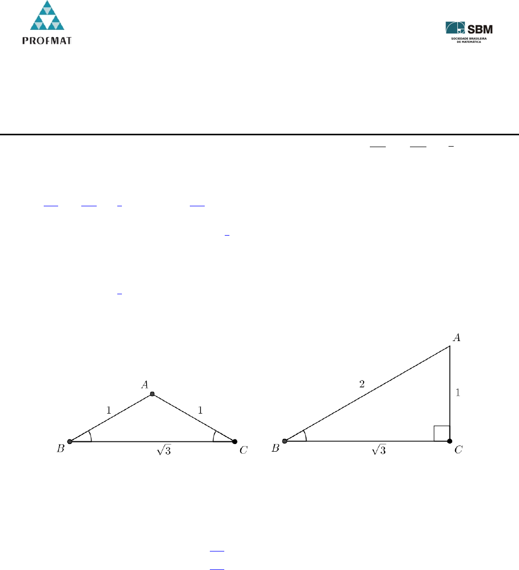 MESTRADO PROFISSIONAL EM MATEMÁTICA EM REDE NACIONAL ENQ – 2017.2 – Gabarito Questão 01 [ 1,25 ] Encontre as medidas dos lados e ângulos de dois triângulos ABC diferentes tais que AC = 1, BC = √ 3 e AB̂C = 30◦. Solução Considere AC = 1, BC = √ 3 , AB̂C = 30◦ e BA = c. Aplicando a lei dos cossenos, obtemos 1 = c2 + 3− 2 √ 3c · cos 30◦ = c2 + 3− 3c, ou seja, c2 − 3c+ 2 = 0. Logo c = 1 ou c = 2. Para c = 1 obtemos um triângulo isósceles, logo BĈA = 30◦ e BÂC = 120◦. Para c = 2 temos 22 = ( √ 3)2 + 12, logo obtemos um triângulo retângulo com BĈA = 90◦ e CÂB = 60◦. Para fins de ilustração, estes triângulos estão esboçados abaixo: Pauta de Correção: • Aplicar corretamente a lei dos cossenos. [0,25] • Determinar os dois valores para a medida do lado AB. [0,50] • Determinar as medidas dos ângulos no caso AB = 1. [0,25] • Determinar as medidas dos ângulos no caso AB = 2. [0,25] SOLUÇÃO ALTERNATIVA Sejam BC = √ 3 e a reta r formando um ângulo de 30◦ com BC. A perpendicular ao segmento BC, traçada de C, intersecta r em um ponto, denotado por A. No triângulo retângulo ABC, tem-se que cos 30◦ = √ 3 2 = BC BA = √ 3 BA , donde BA = 2. Usando o teorema de Pitágoras, ( √ 3)2 + (AC)2 = 22, e dáı AC = 1. Assim obtemos um triângulo retângulo ABC, com BA = 2, AC = 1 e BÂC = 60◦. Seja A′ o ponto médio de BA, logo BA′ = A′A = 1. Traçando a mediana CA′ obtém-se o triângulo A′AC isósceles com A′ÂC = 60◦, logo um triângulo equilátero. Concluimos dáı que A′C = 1. Consequentemente, o triângulo A′BC é o outro triângulo pedido, com BÂ′C = 120◦. Pauta de Correção : • Traçar a perpendicular CA e concluir que AB = 2. [0,25] • Determinar as medidas dos lados e ângulos do triângulo ABC. [0,25] • Traçar a mediana relativa à hipotenusa AB e mostrar que o triângulo A′AC é equilátero. [0,50] • Encontrar as medidas dos lados e ângulos do triângulo A′BC. [0,25] Questão 02 [ 1,25 ::: (a)=0,75; (b)=0,50 ] Sejam a, b e c números reais com a 6= 0. Considere a função f : R→ R definida pela expressão f(x) = ax2 + bx+ c. (a) Escreva a expressão de f na forma f(x) = a(x−m)2 + k. (b) Utilizando o item anterior, prove que, se b2 − 4ac > 0, as ráızes da equação ax2 + bx+ c = 0, são dadas por r1 = −b+ √ b2 − 4ac 2a e r2 = −b− √ b2 − 4ac 2a . Solução (a) Podemos fatorar a expressão de f como abaixo: f(x) = ax2 + bx+ c = a [ x2 + b a x+ c a ] = a [ x2 + 2 · b 2a · x+ b2 4a2 − b2 4a2 + c a ] = a [( x+ b 2a )2 + 4ac− b2 4a2 ] = a ( x+ b 2a )2 + 4ac− b2 4a . (b) Utilizando o item anterior, ax2 + bx+ c = 0 ⇐⇒ f(x) = 0 ⇐⇒ a ( x+ b 2a )2 = −4ac− b2 4a ⇐⇒ a ( x+ b 2a )2 = b2 − 4ac 4a ⇐⇒ ( x+ b 2a )2 = b2 − 4ac 4a2 ⇐⇒ b2−4ac>0 x+ b 2a = ± √ b2 − 4ac 4a2 ⇐⇒ x+ b 2a = ± √ b2 − 4ac 2|a| ⇐⇒ x = ± √ b2 − 4ac 2a − b 2a ⇐⇒ x = −b± √ b2 − 4ac 2a Com isso, as ráızes da equação ax2 + bx+ c = 0 são dadas por r1 = −b+ √ b2 − 4ac 2a e r2 = −b− √ b2 − 4ac 2a . Pauta de Correção: (a) • Fazer corretamente o completamento de quadrados. [0,5] • Concluir corretamente as expressões para m e k. [0,25] (b) • Observar que a expressão dentro da raiz é positiva. [0,25] • Chegar corretamente à expressão final. [0,25] Questão 03 [ 1,25 ::: (a)=0,75; (b)=0,50 ] Considere as sequências pn e qn definidas recursivamente por p1 = q1 = 1, pn+1 = p2n + 2q2n, qn+1 = 2pnqn, para n > 1. (a) Prove que p2n − 2q2n = 1, para n > 2. (b) Use o item (a) para concluir que as frações pn qn são irredut́ıveis para todo n > 2. Solução (a) A afirmação é verdadeira para n = 2. De fato, p2 = p21+2q21 = 1+2 = 3 e q2 = 2p1q1 = 2, portanto p22−2q22 = 32−23 = 1. Suponha a afirmação verdadeira até um certo k > 2, isto é, p2k − 2q2k = 1 (hipótese de indução). Vamos provar que a afirmação é válida para k + 1. Considerando a recorrência, temos que p2k+1 − 2q2k+1 = (p2k + 2q2k)2 − 2(2pkqk)2 = = p4k + 4p2kq 2 k + 4q4k − 8p2kq 2 k = p4k − 4p2kq 2 k + 4q4k = (p2k − 2q2k)2 Usando a hipótese de indução, conclúımos que p2k+1 − 2q2k+1 = (p2k − 2q2k)2 = 1. Portanto, pelo Prinćıpio de Indução Matemática, temos que p2n − 2q2n = 1, para n > 2. (b) Seja d o máximo divisor comum entre pn e qn. Como d | pn e d | qn, então d | p2n − 2q2n. Usando o item (a) obtemos que d | 1, o que nos mostra que d = 1. Pauta de Correção: (a) • Provar a afirmação para n = 2. [0,25] • Supor a afirmação válida para n = k e provar para n = k + 1. [0,5] (b) • Provar que (pn, qn) = 1. [0,5] Questão 04 [ 1,25 ::: (a)=0,50; (b)= 0,75 ] Uma técnica simples para calcular o quadrado de um número natural N , representado no sistema decimal, cujo algarismo das unidades é igual a 5 é a seguinte: (i) O algarismo das dezenas de N2 será 2 e o das unidades será 5, ou seja, N2 “termina”em 25. (ii) Para determinar os algarismos antecedentes a 25 em N2, considere o número a obtido pela retirada do algarismo 5 (algarismo das unidades) do número N que se quer elevar ao quadrado e multiplique pelo seu sucessor a+ 1. Assim, os algarismos do número a× (a+ 1) serão os algarismos que antecedem o 25. Por exemplo: 352 = 1225, pois 3× 4 = 12; 1952 = 38025, pois 19× 20 = 380. (a) Use a técnica acima para calcular 7052 e 99952. (b) Prove a validade desse resultado. Solução (a) Tem-se que 7052 = 497025, pois 70× 71 = 4970 e 99952 = 99900025, pois 999× 1000 = 999000. (b) Considere um número N , representado no sistema decimal, cujo algarismo das unidades é 5: N = an · 10n + an−1 · 10n−1 + · · ·+ a1 · 10 + 5 Tem-se que N = (an · 10n−1 + an−1 · 10n−2 + · · ·+ a1)︸ ︷︷ ︸ a ·10 + 5 = 10a+ 5 onde a é o número formado por todos os algarismos, exceto o algarismo 5. Segue dáı que N2 = (10a+ 5)2 = (10a)2 + 2× 10a× 5 + 52 = 100a2 + 100a+ 25 = a× (a+ 1)× 100 + 25