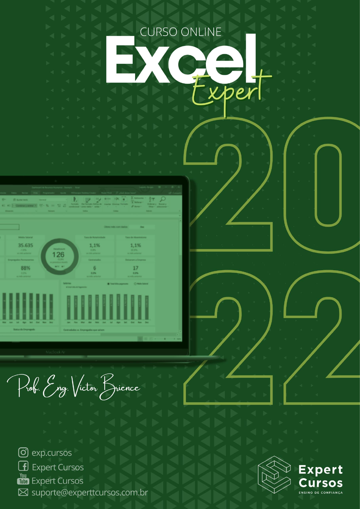 https://experttcursos.com.br/ SUMÁRIO Seja bem-vindo(a) ao curso de Excel Expert.......................................................3 Área de trabalho do Excel.....................................................................................4 Movimentando-se pelo Excel................................................................................5 Teclas de Atalho....................................................................................................5 Inserindo dados....................................................................................................6 Entrada de fórmulas na barra de fórmulas..........................................................6 Alteração do conteúdo de uma célula..................................................................8 Formatação de textos e números.........................................................................8 Formatação numérica em uma célula..................................................................8 Alinhamento e posicionamento............................................................................9 Mesclar e centralizar.............................................................................................9 Alterando a altura de uma linha ou a largura de uma coluna...........................10 Salvando o seu arquivo no excel.........................................................................11 As funções básicas mais utilizadas.....................................................................11 Criando planilhas e tabelas.................................................................................12 Inserindo imagens no Excel................................................................................14 Criando diferentes tipos de gráficos...................................................................14 Funções somase e somases.................................................................................15 Função SE.............................................................................................................16 Função para descobrir a média ponderada........................................................17 Função de arredondamento de casas decimais.................................................18 Função PROCV.....................................................................................................19 Função PROCH.....................................................................................................19 Criando macros no Excel.....................................................................................19 Validação de dados (lista suspensa)..................................................................20 Função SEERRO...................................................................................................22 Proteção de arquivos e planilhas no Excel.........................................................22 Tabelas e gráficos dinâmicos..............................................................................23 Criação de DASHBOARDS....................................................................................25 Agradecimentos...................................................................................................27 https://experttcursos.com.br/ https://experttcursos.com.br/ SEJA BEM-VINDO(A) AO CURSO EXCEL EXPERT O Curso de Excel Expert tem por objetivo fazer você dominar o Microsoft Office Excel do básico ao avançado, independente da sua formação ou área de atuação, estamos falando do programa mais utilizado e requisitado em milhares de empresas no Brasil e no mundo. Mesmo quem já usa o Excel pode ter interesse pelo curso, porque pode usá-lo para revisar o que já sabe e aprender novos conteúdos, como aprender funções mais avançadas, formatações e criação de excelentes Dashboards. Durante o treinamento você vai aprender como funciona o Excel, diferentes tipos de funções, atalhos, criação de planilhas, tabelas, gráficos e diversos recursos para você trabalhar de maneira inteligente. https://experttcursos.com.br/ https://experttcursos.com.br/ ÁREA DE TRABALHO DO EXCEL Ao ser carregado, o Excel exibe sua tela de trabalho mostrando uma planilha em branco com o nome de Pasta 1. A tela de trabalho do Excel é composta por diversos elementos, ícones e botões, entre eles podemos destacar: Células: Uma tabela ou uma planilha é composta por células. Uma célula é o encontro de uma coluna com uma linha. Elas podem ser identificadas de acordo com a sua Coluna e Linha, na imagem acima, por exemplo, a célula em destaque está posicionada na A1 (Coluna A e Linha 1). Guia: Faixa superior de abas do Excel que vai desde Arquivo até Ajuda. Marcadores de páginas (abas): Um único arquivo do Excel pode conter várias abas com diferentes nomes, na imagem acima vemos as abas “Planilha1”, “Planilha2” e “Planilha3” criadas. Isso facilita pois você pode ter diferentes base de dados, planilhas e tabelas dentro do mesmo arquivo. Barra de fórmulas: Exibe todo o conteúdo da célula selecionada e permitir você editar esse conteúdo ou função da célula. Caixa de diálogo: Pode ser acionada pelo atalho F5, com ela você consegue buscar alguma célula específica. Linha de status: Tem como finalidade exibir mensagens orientadoras ou de advertências sobre os procedimentos que estão sendo executadas, assim como sobre o estado de algumas teclas do tipo liga desliga (Como o Caps Lock por exemplo). Caixa de nomes: Localizada em cima da Coluna A, nela você consegue clicar e digitar a Coluna e Linha que você deseja buscar. https://experttcursos.com.br/ https://experttcursos.com.br/ MOVIMENTANDO-SE PELO EXCEL Para você editar uma célula com atribuir algum dado, fórmula ou formatação é necessário que ela esteja seleciona, você pode chegar até a célula desejada por diferentes maneiras: 1. Utilizando as setas do seu teclado para m