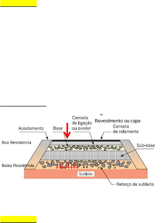 QUESTÃO 1: Defina que é pavimento e indique, mediante desenho esquemático quais camadas que podem estar em um pavimento flexível. Resposta: Pode ser definido como o conjunto de múltiplas camadas de espessura finita, construída sobre uma superfície de terraplenagem, com a finalidade de resistir aos esforços do tráfego de veículos e do clima, e a proporcionar aos usuários melhoria nas condições de rolamento, com conforto, economia e segurança. Pavimento flexível Subleito não é camada QUESTÃO 2: Comente sobre (i) um tipo de base rígida; (ii) um tipo de base flexível; (iii) um tipo de revestimento rígido; e (iv) um tipo de revestimento flexível. Resposta: i) Solo-cimento: Consiste em uma mistura homogênea de solo, cimento e água em proporções adequadas, visando melhorar a resistência e durabilidade do solo. Essa combinação, após a compactação e cura, confere rigidez à camada, aumentando sua capacidade de suporte. É uma solução econômica e amplamente utilizada na estabilização de bases e sub-bases de pavimentos, especialmente em rodovias de baixo a médio tráfego. ii) Paralelepípedos: Em vias previamente pavimentadas com paralelepípedos, o revestimento asfáltico pode ser aplicado diretamente sobre as pedras, que passam a funcionar como uma base flexível. Com o passar do tempo, o tráfego e a ação climática desgastam o material ligante entre os paralelepípedos, tornando a estrutura mais suscetível a deslocamentos. Apesar disso, essa camada pode proporcionar uma base com boa capacidade de suporte, sendo uma solução viável quando reforçada adequadamente. iii) Concreto de cimento: O concreto de cimento é o revestimento rígido mais utilizado em pavimentação, especialmente em rodovias, aeroportos e vias urbanas de alto tráfego. Suas principais vantagens são a durabilidade e a alta resistência à deformação sob cargas elevadas, o que reduz a necessidade de manutenção frequente. Por ser um material rígido, distribui melhor as cargas sobre o subleito, tornando-o ideal para pavimentos que requerem maior durabilidade. iv) Concreto Asfáltico (CA): É considerado o revestimento flexível de maior qualidade, sendo amplamente utilizado em rodovias e vias urbanas de alto tráfego. Trata-se de uma mistura asfáltica produzida em usina com rigoroso controle da granulometria dos agregados e da temperatura, tanto dos agregados quanto do ligante asfáltico. Esse controle garante um produto final com excelente resistência ao desgaste e à deformação, proporcionando maior conforto e segurança para o tráfego. QUESTÃO 3: Indique quais são os ensaios realizados para a caracterização de um subleito, bem como a importância de cada ensaio para o dimensionamento e execução de um pavimento. Resposta: Para a caracterização de um subleito (a camada de solo sobre a qual é construída a base do pavimento), são realizados diversos ensaios, são eles: Ensaio de Compactação (Proctor Normal e Modificado): é crucial para evitar deformações excessivas no pavimento, garantindo resistência suficiente para suportar o tráfego de veículos. Ensaio de CBR (California Bearing Ratio): é utilizado no dimensionamento de pavimentos, sendo essencial para avaliar se o subleito é capaz de suportar as cargas impostas pelos veículos. Solos com baixo CBR podem necessitar de reforços adicionais ou troca de material. Ensaio de Granulometria: influencia a drenagem e a compacidade do solo. Solos com granulometria inadequada podem ser suscetíveis à retenção de água ou à dificuldade de compactação, prejudicando o desempenho do pavimento. Ensaio de Limite de Liquidez e Limite de Plasticidade: ajudam a identificar o tipo de solo (arenoso, argiloso, etc.) e sua capacidade de deformação e retração. Solos com alto índice de plasticidade podem apresentar maiores variações volumétricas em função da umidade, comprometendo a estabilidade do pavimento. Ensaio de Expansão: Esse ensaio é importante para identificar a necessidade de tratamentos especiais ou substituição do solo. Ensaio de Permeabilidade: A permeabilidade influencia a drenagem do subleito. Subleitos com baixa permeabilidade podem reter água, aumentando a possibilidade de saturação do pavimento e diminuindo sua vida útil. Ensaio de Resistência ao Cisalhamento: A resistência ao cisalhamento é essencial para garantir a estabilidade do subleito, principalmente em solos argilosos ou quando o pavimento for submetido a grandes cargas. Índice de Suporte Subleito (ISS): Esse índice é uma medida global da qualidade do subleito e é frequentemente utilizado como parâmetro básico para dimensionamento do pavimento. QUESTÃO 4: Verifique se a mistura de agregados proposta na Tabela atende à especificação (coluna 2), considerando a tolerância de +/- 2% em cada peneira. Abertura da peneira % em massa passando na Especificação % em massa passando (Agregado A) % em massa passando (Agregado B) % em massa passando (Agregado C) % em massa passando (Mist. Agregado) ¾’’ 100 100 100 100 100 ½” 80-100 75 100 100 91,67 3/8’’ 70-90 60 82 100 80,67 Nº4 44-72 25 68 100 64,34 Nº 10 22-50 0 45 63 36 Nº 40 8-26 0 15 50 21,66 Nº 80 4-16 0 0 32 10,67 Nº 200 2-10 0 0 16 5,34 Atende! QUESTÃO 5: Comente sobre a EAP – Emulsão Asfáltica de Petróleo, incluindo necessariamente aspectos como: definição, propriedades, tipos de uso em pavimentação e revestimentos asfálticos que podem ser produzidos utilizando EAP. Resposta: A emulsão asfáltica de petróleo é uma mistura estável de asfalto, água e um agente emulsificante, onde o asfalto é disperso em pequenas gotículas na fase aquosa. Quando aplicada, a água evapora, deixando o asfalto para unir agregados e formar a camada de revestimento. Essa característica a torna ideal para processos de pavimentação a frio, onde o aquecimento do material não é necessário, resultando em menor consumo energético As emulsões asfálticas s