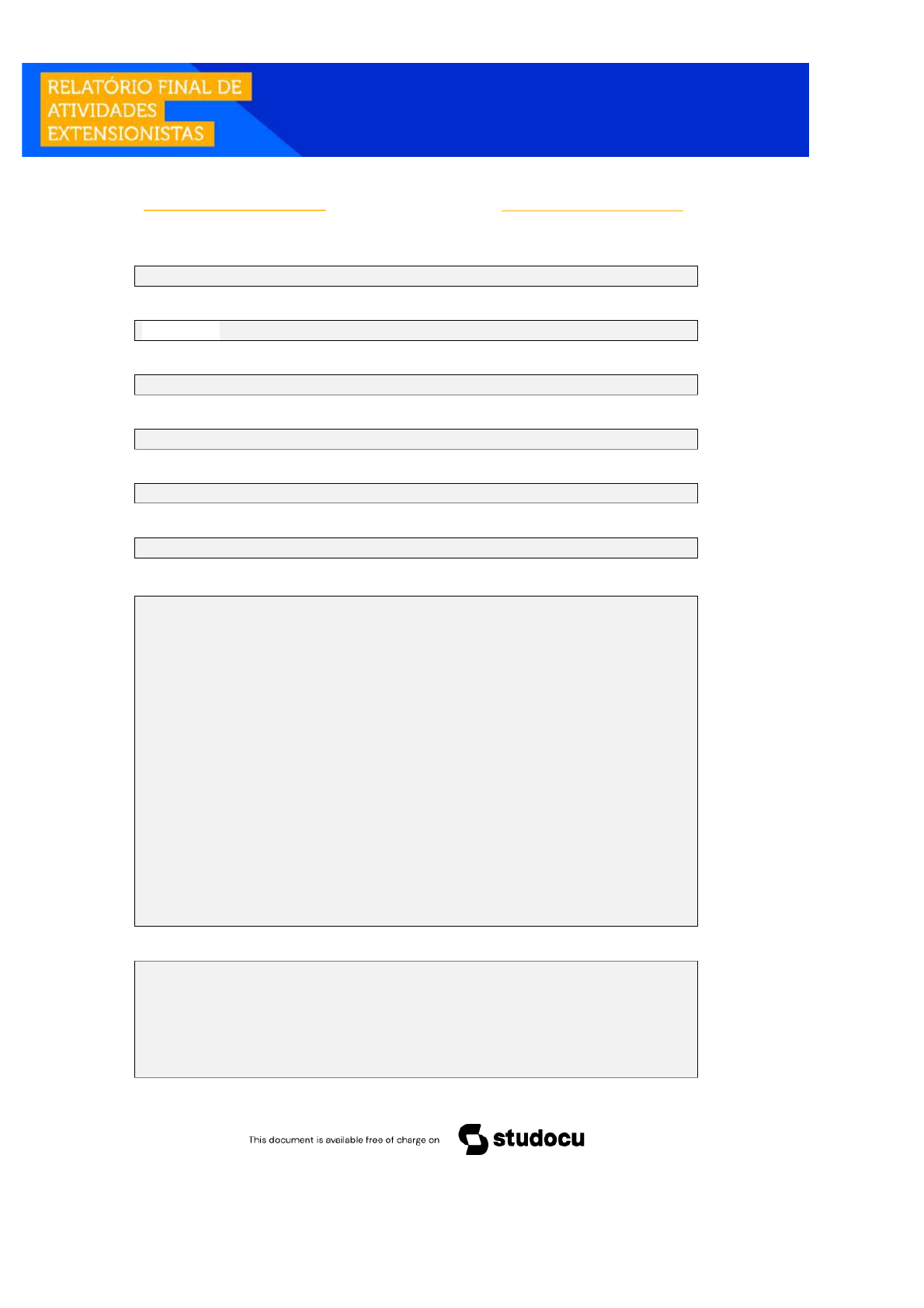Impresso por Jonnhy Michael, E-mail jonnhy.ilha@gmail.com para uso pessoal e privado. Este material pode ser protegido por direitos autorais e não pode ser reproduzido ou repassado para terceiros. 11/09/2024, 19:06:40 1 DADOS DO ALUNO : Aluno: [Nome completo] Jamille Costa de Arruda RA: [Número do RA do aluno] 3605261804 POLO / UNIDADE: Caucaia- CE / I (1061157)AC CURSO: PEDAGOGIA - LICENCIATURA COMPONENTE CURRICULAR: ATIVIDADES COMPLEMENTARES - PROJETO DE EXTENSÃO II - PEDAGOGIA PROGRAMA DE EXTENSÃO: PROGRAMA DE SUSTENTABILIDADE. FINALIDADE E MOTIVAÇÃO: O programa extensionista voltado as ações de Sustentabilidade do curso de Pedagogia - Licenciatura possui a finalidade de apoiar a comunidade por meio da educação, promovendo condições e reflexões para otimizar a relação da comunidade com o ambiente natural e o ambiente construído, priorizando o cuidado e compreensão do meio ambiente. Tais ações poderão reduzir impactos socioambientais negativos e criar uma cultura regenerativa para gerar impactos positivos que irão refletir no meio ambiente, que são importantes para possibilitar uma continuidade do uso de recursos naturais de forma sustentável. Ao identificar as problemáticas ambientais da comunidade os alunos terão a motivação para efetuar as ações de apoio relacionadas ao curso, pelas quais poderão ser desenvolvidas competências técnicas e soft skills específicas. Os conteúdos programáticos sugeridos para correlacionar as ações são: Fundamentos epistemológicos e sociológicos da educação; Educação Ambiental; Metodologias de ensino; Psicologia da Educação; Educação e diversidade; Pensamento científico. Os locais que poderão contemplar esse projeto são: Escolas; Instituições de Educação Básica; Organizações não governamentais, Associações de bairro, dentre outros. COMPETÊNCIAS: I - Executar técnicas básicas e aplicadas, em laboratório e em campo, no contexto educacional; II - Instrumentalizar a comunidade escolar para a prática social crítica, emancipatória e transformadora; III - Desenvolver produtos e processos de inovação científica, tecnológica e educacional. Baixado por Ginásio Luiz Carlos Rizardi (ginasiodomarcelino@gmail.com) Impresso por Jonnhy Michael, E-mail jonnhy.ilha@gmail.com para uso pessoal e privado. Este material pode ser protegido por direitos autorais e não pode ser reproduzido ou repassado para terceiros. 11/09/2024, 19:06:40 2 PERFIL DO EGRESSO: O perfil do egresso do curso de Pedagogia - Licenciatura idealizado pela IES proporciona a formação docente, que valoriza a inclusão dos conhecimentos produzidos pelas ciências para a Educação, contribuindo para a compreensão dos processos de ensino-aprendizagem, voltado para uso de estratégias e recursos pedagógicos, que favorecem o desenvolvimento dos saberes e eliminem as barreiras de acesso ao conhecimento. A atuação no Programa de Sustentabilidade, demonstra as habilidades para atuar com consciência junto a transformação social por meio da educação, tornando o egresso um agente transformador da realidade presente, na busca de melhoria da qualidade de vida. SOFT SKILLS (COMPETÊNCIAS SOCIOEMOCIONAIS): Tomada de Decisão Planejamento e organização Análise e resolução de problemas OBJETIVOS DE APRENDIZAGEM: O objetivo da extensão no Programa de Sustentabilidade do curso Pedagogia - Licenciatura está relacionado a transferir para a sociedade os conhecimentos desenvolvidos no curso mediante projetos e ações de apoio na resolução de diversas problemáticas no âmbito da sustentabilidade, auxiliando a comunidade e potencializando o desenvolvimento do coletivo e a integração da escola com a comunidade. CONTEÚDOS: I - Fundamentos epistemológicos e sociológicos da educação; II - Educação Ambiental; III - Metodologias de ensino; IV - Psicologia da Educação; V - Educação e diversidade; VI - Pensamento científico. INDICAÇÕES BIBLIOGRÁFICAS: TACHIZAWA, Takeshy. Gestão ambiental e responsabilidade social corporativa: os paradigmas do novo contexto empresarial. 9. ed. São Paulo: Atlas, 2019. DIAS, Reinaldo. Gestão ambiental: responsabilidade social e sustentabilidade. 3. ed. São Paulo: Atlas, 2019. AUGUSTINHO, Aline Michele Nascimento. Sociologia da educação. Porto Alegre: Sagah, 2018. FAZENDA, Ivani. Didática e interdisciplinaridade. Campinas: Papirus, 2015. LONGAREZI, Andrea Maturano. Panorama da didática: ensino, prática e pesquisa. Campinas: Papirus, 2017. RODRIGUES, Ana Maria. Psicologia da aprendizagem e da avaliação. São Paulo: Cengage, 2016. Baixado por Ginásio Luiz Carlos Rizardi (ginasiodomarcelino@gmail.com) Impresso por Jonnhy Michael, E-mail jonnhy.ilha@gmail.com para uso pessoal e privado. Este material pode ser protegido por direitos autorais e não pode ser reproduzido ou repassado para terceiros. 11/09/2024, 19:06:40 3 VIANNA, Cláudia. Políticas de educação, gênero e diversidade sexual. São Paulo: Autêntica, 2018. RELATÓRIO FINAL : Aluno e Aluna, após realizar suas atividades de extensão, é necessário que você o formalize, enviando esse Relatório Final para ser avaliado junto ao seu Ambiente Virtual (AVA) e também para você poder comprovar sua atuação. Para o preenchimento, busque as anotações junto ao TEMPLATE PCDA para auxiliar na apresentação das atividades desenvolvidas. Todos os campos são de preenchimento obrigatório! DESCRIÇÃO DA AÇÃO COM RESULTADOS ALCANÇADOS Metas dos Objetivos de Desenvolvimento Sustentável (ODS) aderentes a este projeto: CAMPO OBRIGATÓRIO busque no seu Template PDCA quais Metas você selecionou como – aderentes ao seu projeto, conforme cada Objetivo de Desenvolvimento Sustentável (ODS) da Organização das Nações Unidas (ONU) que você explorou no seu planejamento. Liste as Metas selecionadas (pelo menos uma opção): Meta 4.7: Até 2030, garantir que todos os alunos adquiram conhecimentos e habilidades necessários para promov