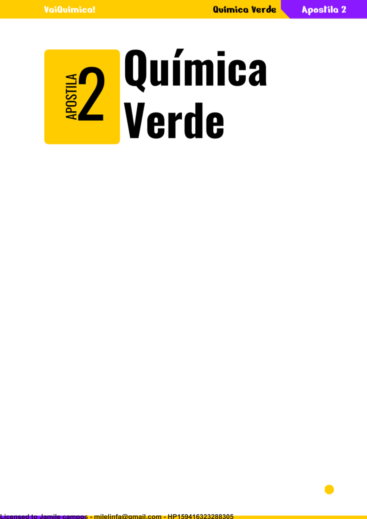 Quando falamos da Química Verde analisamos toda a interdisciplinaridade existente no tema. É comum vermos as questões envolvendo o meio ambiente relacionadas à Biologia e a Química, mas essa temática pode estar presente em todas as disciplinas mudando apenas a abordagem sobre o assunto. Embora seja um assunto recorrente no ENEM, é comum ser deixado de lado por ser um conteúdo mais “fácil e intuitivo”. De fato, esse tema costuma ser menos trabalhoso que Termoquímica, por exemplo, mas merece atenção especial justamente por conversar com todas as áreas e assim, permitir um melhor resultado geral nas provas. Mas afinal, o que é a Química Verde? Química Verde: definição A Química Verde surgiu da necessidade de prevenir a poluição ligada às atividades humanas ao meio ambiente, sendo definida pela primeira vez por John Warner e Paul Anastas em 1991. Pode-se definir essa parte da Química como sendo o desenvolvimento de produtos químicos e processos que buscam a redução ou eliminação do uso e da geração de substâncias perigosas. Ou seja, essa área possui como objetivo principal desenvolver metodologias que gerem ou usem a menor quantidade de produtos ou reagentes tóxicos. 1 Licensed to Jamile campos - milelinfa@gmail.com - HP159416323288305 Desse modo, a Química Verde nada mais é que o uso da Química na prevenção da poluição. Princípios da Química Verde A Química Verde apresenta 12 princípios diferentes que auxiliam a alcançar os objetivos propostos na minimização da poluição ao meio ambiente. Todos têm seu grau de importância e têm sido bastante aplicados no desenvolvimento de produtos e processos. 1. Prevenção O primeiro princípio da Química Verde relaciona-se com a ideia de que é melhor prevenir a obtenção de subprodutos em um processo do que tratá-los posteriormente. De um modo mais geral, se menos resíduos são formados ao final de um processo, menores serão os gastos envolvidos com o tratamento deles e também, menor será o descarte inadequado desses subprodutos. 2. Economia de átomos (eficiência atômica) Esse princípio também é conhecido como síntese verde e possui como objetivo principal incorporar todos os átomos presentes nos reagentes de uma reação no produto desejado. Ou seja, toda a massa dos reagentes é convertida em um produto sem a geração de resíduos ou subprodutos e assim, sem a necessidade de tratamento ou de descarte. 3. Redução da toxicidade Sempre que der, é importante substituir reagentes tóxicos em uma reação química por outros reagentes que apresentam menor toxicidade. Desse modo, em uma reação química, deve-se utilizar reagentes e formar produtos que não apresentem nenhum risco à saúde humana e ao meio ambiente. 4. Desenvolvimento de produtos seguros Esse princípio está intimamente relacionado com o processo de planejamento e organização de uma reação química. Sendo assim, deve-se desenvolver e formar produtos que apresentem a função desejada e também, com o menor nível de toxicidade possível. O foco principal é em formar única e exclusivamente o 2 Licensed to Jamile campos - milelinfa@gmail.com - HP159416323288305 composto de interesse, sem a produção de subprodutos ou de substâncias tóxicas. 5. Diminuição de solventes e auxiliares A ideia é não utilizar solventes ou outras substâncias auxiliares em uma reação química. Sempre que possível, deve-se evitar o uso, principalmente de substâncias que sejam tóxicas ao ambiente ou ao homem. Caso não seja possível evitar o uso, deve-se optar por solventes de baixo impacto ambiental. 6. Eficiência energética e otimização da energia Os métodos devem ser realizados em temperatura e pressão ambientes para evitar o gasto de energia durante o processo químico. Assim, busca-se realizar os processos químicos com o menor uso possível de energia e caso utilize, usar a energia proveniente de uma fonte renovável. 7. Uso de matérias-primas renováveis Os produtos e subprodutos de uma reação química devem ser reaproveitados sempre que possível. Busca-se utilizar materiais reciclados ou renováveis para o desenvolvimento de um processo. 8. Evitar derivações Nesse princípio, busca-se evitar a ocorrência da reação química em mais de uma etapa, uma vez que, etapas reacionais demandam mais reagentes e podem gerar produtos indesejados. 9. Catálise Esse princípio relaciona-se com o aumento da velocidade de um processo. Logo, implica em uma redução no tempo de processamento da reação, diminuindo o risco da geração de subprodutos e também promovendo o aumento do rendimento da reação. 10. Geração de produtos degradáveis A ideia é desenvolver produtos que sejam degradáveis, ou seja, que sofrem decomposição ao final da sua vida útil, tornando-se então produtos inócuos ao longo do tempo, e assim, não reajam com nenhuma outra substância e acabam não promovendo a poluição do meio ambiente. 11. Análise dos processos em tempo real 3 Licensed to Jamile campos - milelinfa@gmail.com - HP159416323288305 O acompanhamento dos processos precisa ser feito de maneira próxima e em tempo real para que no surgimento de qualquer problema, o responsável possa agir imediatamente. Com isso, se evita qualquer dano ao meio ambiente e diminui-se as chances da geração de subprodutos ou resíduos. 12. Segurança Todos os processos precisam ser realizados de maneira segura. Prioriza-se o planejamento das reações para que as escolhas possam ser feitas visando minimizar os riscos de acidentes, minimizando também, os danos gerados no caso de algum acidente. Conhecendo cada um dos princípios da Química Verde é possível dividir os processos e produtos em três grandes categorias: I. Uso de fontes renováveis ou reciclados de matéria-prima; II. Aumento da eficiência energética ou então usar menos energia para gerar a mesma quantidade de produto ou uma maior; III. Evitar o uso e a geração de substân