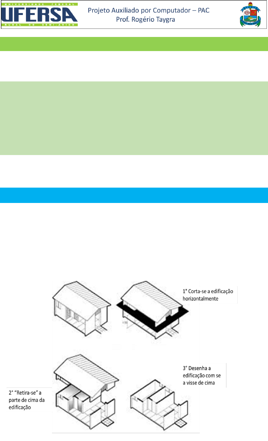 Página | 1 Capítulo 3: Planta de Edificação OBJETIVO Neste capítulo nós aplicaremos as principais ferramentas de desenho e edição do AutoCAD para criação da planta de uma residência. Aprenderemos também como organizar o nosso desenho em camadas, e a inserir blocos para tornar mais fácil a interpretação do projeto. CONCEITUANDO A PLANTA DE EDIFICAÇÃO Planta da edificação: o que é? Chamamos de planta da edificação o desenho de uma construção resultante de um corte paralelo ao plano horizontal, executado a uma de aproximadamente 1,50 m, medido a partir da nível-base do pavimento. Para facilitar a compreensão, veja a ilustração abaixo. Página | 2 A função da planta de edificação O desenho em planta, ou simplesmente planta da edificação, é uma forma extremamente eficiente de se visualizar seus cômodos simultaneamente, destacando suas dimensões (comprimento e largura), seus acessos, a distribuição dos móveis e os materiais aplicados no piso. A planta permite ainda visualizar portas e janelas, além das diferenças de níveis nos diferentes ambientes da edificação. Além das diversas informações apresentadas em uma planta, ela serve ainda de base para os projetos de instalações hidráulicas, instalações elétricas, projeto estrutural, projeto de combate a incêndio, dentre outros, sendo considerado um dos principais (se não o principal) elemento de um projeto de edificações. USO DE CAMADAS NO CAD O uso de camadas para organização do desenho digital A planta de uma edificação contém diversos elementos distintos, constituindo um todo complexo composto por paredes, portas, janelas, móveis, louça, cotas, textos. Além disso, os elementos representados na planta encontram-se em níveis de visualização diferentes, alguns elementos seccionados pelo plano de corte, portanto mais próximo do observador, enquanto outros estão mais distantes. Desta forma, é importante representar esses elementos utilizando linhas de espessura (peso) e tipos diferentes. No desenho tradicional, executado a mão com grafite, é comum utilizar diferentes lapiseiras, com minas de tamanhos variados, de forma a criar linhas com espessuras, e assim conseguir dar ao observador do projeto a sensação de proximidade e profundidade. No desenho digital, com o AutoCAD, você pode (e deve) fazer algo semelhante, utilizando as Camadas (Layers). Graças a este recurso, é possível desenhar cada tipo de objeto obedecendo padrões pré-definidos, com características diferentes, o que facilita a organização e visualização por parte do projetista. No caso do desenho arquitetônico, podemos desenhar as alvenarias em uma camada, as portas e janelas em outra, o piso em outra e assim por diante. Na prática, cada camada funciona como um tipo e transparência, onde apenas os objetos relacionados a ela são visualizados. Ao final, quando combinamos todas as camadas (empilhamos as transparências) é possível visualizar o projeto como um Página | 3 todo. As ferramentas de Camadas do AutoCAD estão disponíveis na aba HOME, categoria Layers. Configuração das camadas A criação e edição de Camadas é realizada utilizando a ferramenta Gerenciador de Camada que pode ser acessado clicando o ícone Layer Properties ou simplesmente através do comando LA + ENTER. Será aberta uma caixa denominada Layer Properties Manager. É nela onde definiremos todas as configurações de nossas camadas. Página | 4 Será aberta uma caixa denominada Layer Properties Manager (Gerenciar Propriedades da Camada). É nela onde definiremos todas as configurações de nossas camadas. 01 Nova Camada (New Layer – Alt+N): Cria uma nova camada; 02 Apagar Camada (Delet Layer – Alt+D): Deleta uma camada selecionada; 03 Ativar Camada (Set Current – Alt+C): Ativa a camada selecionada; 04 Nomear (Set Name): Nomeia uma nova camada ou altera o nome de uma camada previamente nomeada; 05 Ligar Camada (On): Liga e desliga camadas. Quando a camada está ligada é possível visualizar os objetos desenhados nela. É importante esclarecer que o desligamento da camada implica na sua exclusão, mas apenas retira a sua visibilidade, sendo ainda possível reconhecer a camada pelos comandos de seleção ou visualização. Para alternar entre a ligado e desligado, basta clicar sobre o ícone da lâmpada. Quando esta estiver “acesa” indica que a camada está ligada (visível); 06 Congelar Camada (Freeze): Congela e descongela uma camada. Semelhante ao Ligar, quando se congela a camada ela deixa de estar visível, e além disso, a camada passa a “não existir” temporariamente, não podendo ser selecionada nem acionada pelos comandos de visualização. Para alternar entre congelar e descongelar uma camada basta clicar sobre o ícone correspondente; 07 Bloquear Camada (Lock): Bloqueia ou desbloqueia uma camada. Ao ser bloqueada, os objetos desenhados na camada permanecerão visíveis, mas impossibilitados de serem manipulados ou alterados. Para alternar entre o bloqueio e o desbloqueio da camada basta clicar sobre o ícone em forma de cadeado; 08 Cor da Camada (Color): Altera a cor da camada. Todos os objetos desenhados na camada selecionada terão a cor definida pelo projetista. Esta é uma das principais funcionalidades do desenho em camadas, pois permite a organização dos objetos em função de suas cores, facilitando a interpretação e visualização por parte do projetista. Para alterar a cor da camada basta clicar sobre o ícone e selecionar a cor desejada dentre as disponíveis na lista que aparecerá; Página | 5 09 Tipo de Linha (Linetype): Permite Alterar o tipo de linha da camada (tracejada, contínua, pontilhada e etc.), estendendo o padrão selecionado para todos os objetos desenhados na mesma. Todos os objetos desenhados na camada selecionada terão o padrão de linha definido pelo projetista. Para alterar o tipo de linha da camada basta clicar sobre o ícone e selecionar o padrão desejado dentre a
