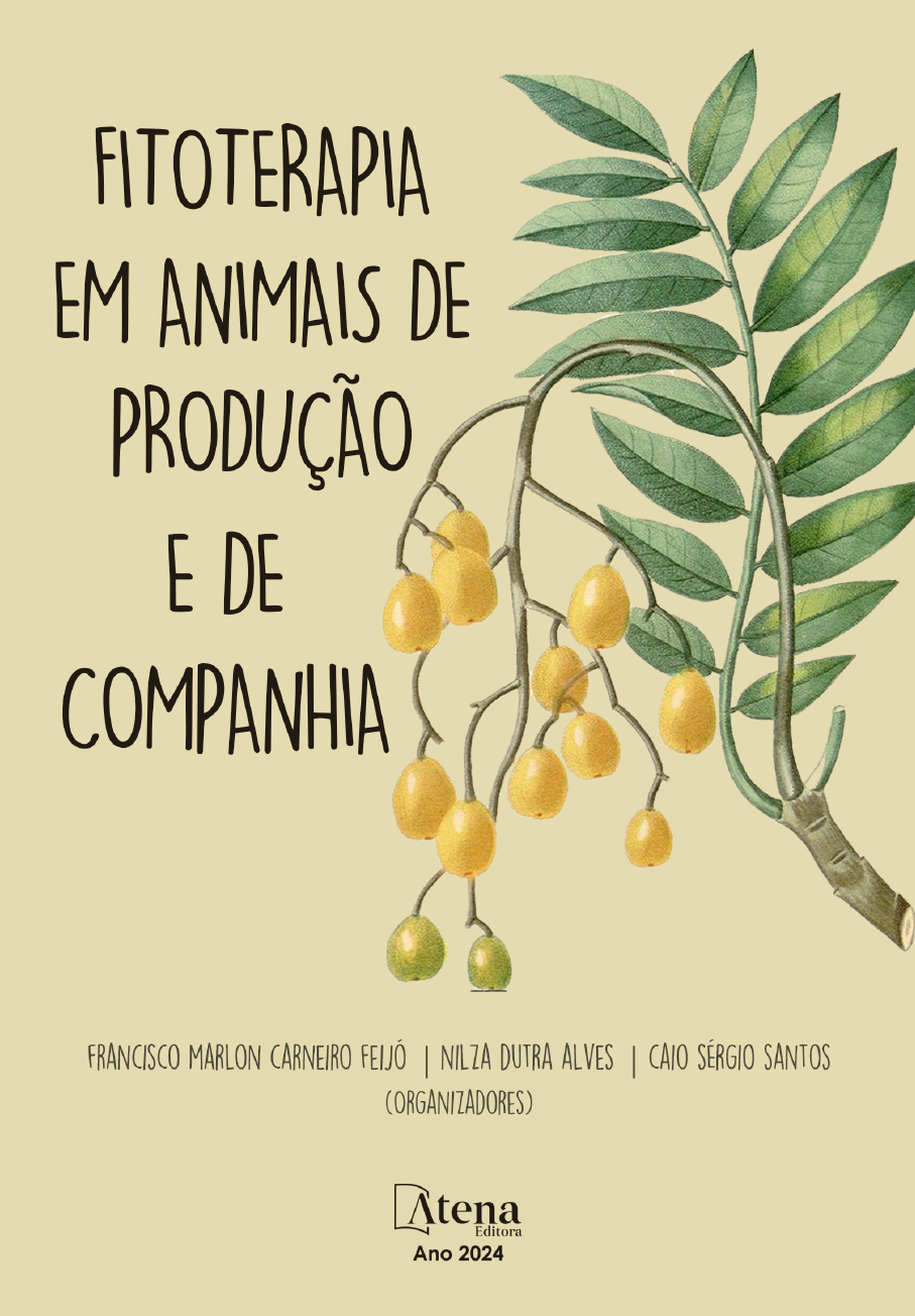 Editora chefe Profª Drª Antonella Carvalho de Oliveira Editora executiva Natalia Oliveira Assistente editorial Flávia Roberta Barão Bibliotecária Janaina Ramos Projeto gráfico Camila Alves de Cremo Ellen Andressa Kubisty Luiza Alves Batista Nataly Evilin Gayde Thamires Camili Gayde Imagens da capa iStock Edição de arte Jamile Rodrigues Cosme de Holanda Luiza Alves Batista 2024 by Atena Editora Copyright © Atena Editora Copyright do texto © 2024 Os autores Copyright da edição © 2024 Atena Editora Direitos para esta edição cedidos à Atena Editora pelos autores. Open access publication by Atena Editora Todo o conteúdo deste livro está licenciado sob uma Licença de Atribuição Creative Commons. Atribuição-Não-Comercial- NãoDerivativos 4.0 Internacional (CC BY-NC-ND 4.0). O conteúdo dos artigos e seus dados em sua forma, correção e confiabilidade são de responsabilidade exclusiva dos autores, inclusive não representam necessariamente a posição oficial da Atena Editora. Permitido o download da obra e o compartilhamento desde que sejam atribuídos créditos aos autores, mas sem a possibilidade de alterá- la de nenhuma forma ou utilizá-la para fins comerciais. Todos os manuscritos foram previamente submetidos à avaliação cega pelos pares, membros do Conselho Editorial desta Editora, tendo sido aprovados para a publicação com base em critérios de neutralidade e imparcialidade acadêmica. A Atena Editora é comprometida em garantir a integridade editorial em todas as etapas do processo de publicação, evitando plágio, dados ou resultados fraudulentos e impedindo que interesses financeiros comprometam os padrões éticos da publicação. Situações suspeitas de má conduta científica serão investigadas sob o mais alto padrão de rigor acadêmico e ético. https://www.edocbrasil.com.br/ Conselho Editorial Ciências Agrárias e Multidisciplinar Prof. Dr. Alexandre Igor Azevedo Pereira – Instituto Federal Goiano Profª Drª Amanda Vasconcelos Guimarães – Universidade Federal de Lavras Prof. Dr. Arinaldo Pereira da Silva – Universidade Federal do Sul e Sudeste do Pará Prof. Dr. Antonio Pasqualetto – Pontifícia Universidade Católica de Goiás Profª Drª Carla Cristina Bauermann Brasil – Universidade Federal de Santa Maria Prof. Dr. Cleberton Correia Santos – Universidade Federal da Grande Dourados Profª Drª Diocléa Almeida Seabra Silva – Universidade Federal Rural da Amazônia Prof. Dr. Écio Souza Diniz – Universidade Federal de Viçosa Prof. Dr. Edevaldo de Castro Monteiro – Universidade Federal Rural do Rio de Janeiro Prof. Dr. Fábio Steiner – Universidade Estadual de Mato Grosso do Sul Prof. Dr. Fágner Cavalcante Patrocínio dos Santos – Universidade Federal do Ceará Profª Drª Girlene Santos de Souza – Universidade Federal do Recôncavo da Bahia Prof. Dr. Guilherme Renato Gomes – Universidade Norte do Paraná Prof. Dr. Jael Soares Batista – Universidade Federal Rural do Semi-Árido Prof. Dr. Jayme Augusto Peres – Universidade Estadual do Centro-Oeste Prof. Dr. Júlio César Ribeiro – Universidade Federal Rural do Rio de Janeiro Profª Drª Lina Raquel Santos Araújo – Universidade Estadual do Ceará Prof. Dr. Pedro Manuel Villa – Universidade Federal de Viçosa Profª Drª Raissa Rachel Salustriano da Silva Matos – Universidade Federal do Maranhão Prof. Dr. Renato Jaqueto Goes – Universidade Federal de Goiás Prof. Dr. Ronilson Freitas de Souza – Universidade do Estado do Pará Profª Drª Talita de Santos Matos – Universidade Federal Rural do Rio de Janeiro Prof. Dr. Tiago da Silva Teófilo – Universidade Federal Rural do Semi-Árido Prof. Dr. Valdemar Antonio Paffaro Junior – Universidade Federal de Alfenas http://lattes.cnpq.br/3962057158400444 http://buscatextual.cnpq.br/buscatextual/visualizacv.do?id=K4137742T8 http://buscatextual.cnpq.br/buscatextual/visualizacv.do?id=K4257670Z4 http://buscatextual.cnpq.br/buscatextual/visualizacv.do?id=K4791258D5 http://buscatextual.cnpq.br/buscatextual/visualizacv.do?id=K4550722Z1 http://buscatextual.cnpq.br/buscatextual/visualizacv.do?id=K4343894D0 http://buscatextual.cnpq.br/buscatextual/visualizacv.do?id=K4769404T1 http://buscatextual.cnpq.br/buscatextual/visualizacv.do?id=K4402494Z9 http://buscatextual.cnpq.br/buscatextual/visualizacv.do?id=K4470682T6 http://buscatextual.cnpq.br/buscatextual/visualizacv.do?id=K4717916J5 http://buscatextual.cnpq.br/buscatextual/visualizacv.do?id=K4448161E1 http://buscatextual.cnpq.br/buscatextual/visualizacv.do?id=K4761024J9 http://buscatextual.cnpq.br/buscatextual/visualizacv.do?id=K4453764Z7 http://buscatextual.cnpq.br/buscatextual/visualizacv.do?id=K4799273E2 http://buscatextual.cnpq.br/buscatextual/visualizacv.do?id=K4776446E9 http://buscatextual.cnpq.br/buscatextual/visualizacv.do?id=K4481542Z5 http://buscatextual.cnpq.br/buscatextual/visualizacv.do?id=K4705653J5 http://buscatextual.cnpq.br/buscatextual/visualizacv.do?id=K8165109H2 http://buscatextual.cnpq.br/buscatextual/visualizacv.do?id=K4488711E2 http://buscatextual.cnpq.br/buscatextual/visualizacv.do?id=K4488711E2 http://buscatextual.cnpq.br/buscatextual/visualizacv.do?id=K4243839T9 http://buscatextual.cnpq.br/buscatextual/visualizacv.do?id=K4221072D9 http://buscatextual.cnpq.br/buscatextual/visualizacv.do?id=K4249363T4 http://buscatextual.cnpq.br/buscatextual/visualizacv.do?id=K4742429E2 http://buscatextual.cnpq.br/buscatextual/visualizacv.do?id=K4707670J6 Fitoterapia em animais de produção e de companhia Diagramação: Correção: Indexação: Revisão: Organizadores: Ellen Andressa Kubisty Jeniffer dos Santos Amanda Kelly da Costa Veiga Os autores Francisco Marlon Carneiro Feijó Nilza Dutra Alves Caio Sérgio Santos Dados Internacionais de Catalogação na Publicação (CIP) F546 Fitoterapia em animais de produção e de companhia / Organizadores Francisco Marlon Carneiro Feijó, Nilza Dutra Alves, Caio Sérgio Santos. – Ponta Grossa - PR: Atena, 202
