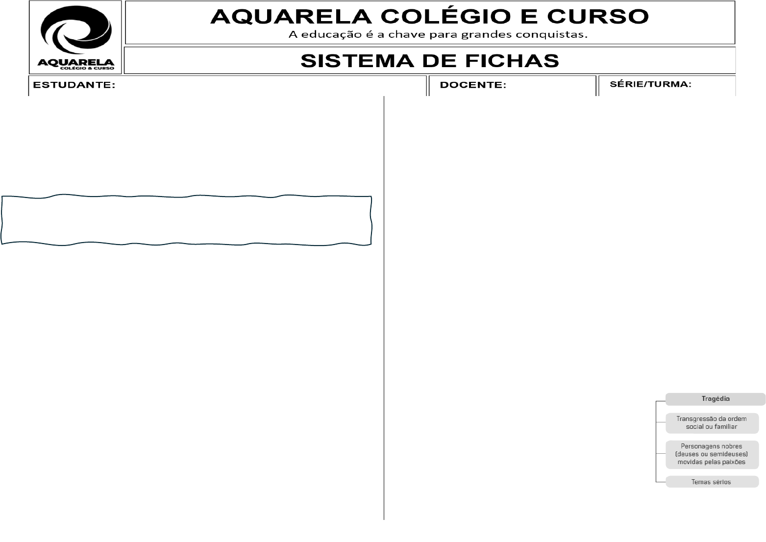 Literatura (7º ano) – O gênero dramático Aristóteles observava, na Poética, que o termo drama (do grego drân: agir) faz referência ao fato de, nesses textos, as pessoas serem representadas “em ação”. Ao identificar o drama como um dos gêneros literários, Aristóteles considerou uma característica importante desses textos: eram feitos para ser representados, dramatizados. Textos dramáticos são aqueles em que a “voz narrativa” está entregue às personagens, que contam a história por meio de diálogos e monólogos. Origens do gênero dramático Em diversas sociedades primitivas era comum a realização de danças ritualísticas. Como os participantes representavam diferentes papéis, há quem reconheça nessa atividade o germe da encenação teatral que define o gênero dramático. Outra explicação para a origem do drama seriam os festivais anuais realizados, na Grécia Antiga, em honra ao deus Dionísio (ou Baco, para os romanos). Nesses festivais, bebia-se e cantava-se para louvar esse deus. No início, havia apenas um coro que entoava os hinos, chamados ditirambos, narrando trechos da vida de Dionísio. Depois, esse coro foi dividido em perguntas e respostas coordenadas por um corifeu (o regente do coro). Mais tarde, surgiu hypokrités, o ator protagonista, simbolizado por Téspis, um poeta grego. Nascia, assim, a tragédia. A representação do ator protagonista provocava sentimentos no coro, que, nesse momento, transformava-se em plateia, porque avaliava o comportamento do protagonista. Cantando, o coro respondia a ele, para concordar ou discordar de suas ações. Essa explicação para a origem do gênero dramático destaca dois elementos que, até hoje, são essenciais para esse tipo de texto: a importância do público e a possibilidade de desencadear emoções por meio da representação. O gênero dramático na Grécia Antiga O gênero dramático, na Grécia Antiga, desenvolveu-se por meio de duas modalidades: a tragédia e a comédia. · A tragédia No início, drama e tragédia eram praticamente sinônimos e faziam referência a uma encenação que apresentava ações humanas que simbolizavam a transgressão da ordem no contexto familiar ou social. O elemento trágico por definição era a paixão (pathos), que levava os seres humanos a portarem-se de modo violento e irracional e, dessa forma, ignorarem as leis humanas ou divinas que organizavam a vida. Aristóteles estabelece, na Poética, que as tragédias desenvolvem certos temas, como as paixões humanas e os conflitos por elas desencadeados, e apresentam personagens nobres e heroicas (deuses, semideuses ou membros da aristocracia). Também esclarece que o objetivo da encenação de uma tragédia é desencadear, no público, terror ou piedade. A “purificação” de sentimentos da plateia, provocada por essa experiência estética, recebeu o nome de catarse. A tragédia pode ser definida como uma peça teatral na qual figuram personagens nobres e que procura, por meio da ação dramática, levar a um estado de grande tensão emocional. Geralmente, as peças trágicas terminam com um acontecimento funesto. Os conflitos encenados nas tragédias quase sempre tratavam de questões acerca da honra e do poder. Vamos ler, como exemplo, um trecho de Medeia, de Eurípides. Escrita em 431 a.C., Medeia apresenta o drama vivido por uma mulher que comete as maiores loucuras por amor. A cena que iremos ler nos mostra o momento em que, depois de abandonada, Medeia se dá conta do quanto errou ao depositar sua confiança no coração traiçoeiro de Jasão. ........................................... CORO [...] Idos são os tempos de respeito aos juramentos. A honra desapareceu da nobre Hélade. Não se encontra mais em toda a vastidão da nossa terra; voou além dos céus. Não tens mais espaço na casa de teus pais, pobre de ti; era teu porto, o teu abrigo seguro para as tempestades da existência. E aqui teu leito foi ocupado por outra mais ditosa, teu lar tem outra rainha. Entra Jasão JASÃO Não é a primeira vez que noto, muitas vezes notei, a desgraça que é um temperamento exacerbado. Por exemplo, agora, bem poderias permanecer neste país e nesta casa, se soubesses obedecer à vontade dos que te são superiores. Quem te expulsa de Corinto não somos nós, até condescendentes. São tuas palavras insensatas. A mim essas palavras não me dizem nada. Pode continuar apregoando ao mundo que Jasão é o mais vil dos homens. Mas, depois do que gritas contra o soberano, o banimento é até uma punição bastante generosa. [...] MEDEIA (Soberba) A única expressão que minha língua encontra para definir teu caráter, tua falta de virilidade, é o mais baixo dos canalhas. Vieste a mim, estás aqui, para quê, tu, ser odiado pelos deuses, odiado por mim e por toda a humanidade? Não é prova de coragem nem de magnanimidade olhar na cara os ex-amigos, na esperança de que esqueçam todo o mal que lhes fizeste. A isso se chama cinismo, e vem com as piores doenças do caráter humano — a falta de pudor, a ausência de vergonha. [...] Abandonei pai e pátria e vim contigo para Iolco; meu amor era maior que a minha prudência. Depois provoquei a morte de Pélias do modo mais terrível: nas mãos das próprias filhas. E assim te livrei de todos os temores. Tudo isso eu fiz por ti, e, vil traidor, procuraste uma nova esposa, embora já tivéssemos procriado dois filhos. Se eu não houvesse te dado descendência, teria perdoado tua busca de um novo leito. Já morreu em mim há muito tempo toda e qualquer confiança em tuas juras. [...] Céus, a que coração traiçoeiro confiei minha esperança. [...] CORIFEU Há algo terrível e incurável, acima de qualquer compreensão mortal, no ódio que nasce entre próximos e amados. Hélade: Grécia. Exacerbado: exagerado. Magnanimidade: generosidade, bondade. A cena é introduzida pelo coro que anuncia: “Idos são os tempos de respeito aos juramentos. A honra desapareceu d