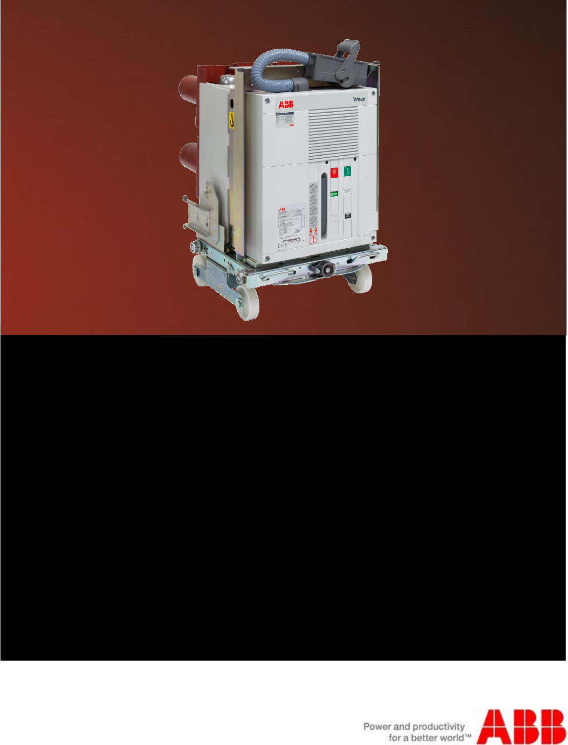 Vmax/A Medium voltage vacuum circuit breaker ANSI: 4.76kV-15 kV; 1200-2000 A; 31.5 kA Medium Voltage Products Vmax/A Medium voltage vacuum circuit breaker ANSI: 4.76kV-15 kV; 1200-2000 A; 31.5 kA For your safety! 1 1. Foreword 2 1.1. Introduction 2 1.2. Environmental protection program 2 1.3. Vacuum interrupter quenching principle 2 1.4. Information on this booklet 3 1.5. Drawout 3 1.6. Application of the X-ray emission standards 3 2. Introduction and safe practices 4 2.1. Introduction 4 2.2. Safe practices 4 2.3. Standard and regulations 5 3. Receiving, handling, and storage 6 3.1. Receiving 6 3.2. Handling 7 3.3. Storage 8 4. Description 9 4.1. General 9 4.2. Reference Standards 9 4.3. Withdrawable Vmax Outline 10 4.4. Characteristics of the electrical accessories 12 4.5. Preliminary operations 13 4.6. Putting into service 14 5. Operation, installation and maintenance 20 5.1. Interlocks 20 5.2. Maintenance 21 5.3. Truck 26 6. Spare parts and accessories 28 6.1. List of spare parts 28 7. Overall dimensions 29 8. Electric circuit diagram 31 9. Product quality and environmental protection 32 1 For your safety! - Make sure that the installation room (spaces, divisions and ambient) is suitable for the electrical apparatus. - Check that all the installation, putting into service and maintenance operations are carried out by qualified personnel with suitable knowledge of the apparatus. - Make sure that the standard and legal prescriptions are complied with during installation, putting into service and maintenance, so that installations according to the rules of good working practice and safety in the work place are constructed. - Strictly follow the information given in this instruction manual. - Check that the rated performance of the apparatus is not exceeded during service. - Check that the personnel operating the apparatus have this instruction manual to hand as well as the necessary information for correct intervention. - Pay special attention to the notes indicated in the manual by the following symbol: RESPONSIBLE BEHAVIOUR SAFEGUARDS YOUR OWN AND OTHERS’ SAFETY! FOR ANY REQUESTS, PLEASE CONTACT THE ABB ASSISTANCE SERVICE. Safe Practices Vmax/A circuit breakers are equipped with high energy/high speed mechanisms. The design includes several interlocks and safety features which help ensure safe and proper operating sequences. To ensure safety of personnel associated with installation, operation and maintenance of these breakers, the following recommendations must be followed: Only qualified persons, as defined in the National Electric Safety Code, who are familiar with the installation and maintenance of medium voltage circuits and equipment should be permitted to work on these breakers. Read these instructions carefully before attempting any installation, operation or maintenance of these breakers. DO NOT work on an energized breaker. DO NOT work on a breaker unless all components are disconnected by means of a visible break and securely grounded. DO NOT work on a breaker with power supplied to the secondary control circuit. DO NOT defeat safety interlocks. This may result in bodily injury, death and/or equipment damage. DO NOT work on a closed breaker. DO NOT work on a breaker with a charged closing spring. DO NOT use a circuit breaker by itself as the sole means of isolating a high voltage circuit. DO NOT leave a breaker in an intermediate position in a cell. Always place the breaker in the disconnect/test or connected position. 2 1. Foreword 1.1 Introduction This publication contains the information needed to install medium voltage Vmax/A circuit breakers and put them into service. For correct use of the product, please read it carefully. Like all the apparatus we manufacture, the Vmax/A circuit- breakers are designed for different installation configurations. However, they do allow further technical and construction modifications (at the customer’s request) to adapt to special installation requirements. For this reason, the information given below may sometimes not contain instructions concerning special configurations. Apart from this manual, it is therefore always necessary to consult the latest technical documentation (circuit and wiring diagrams, assembly and installation drawings, any protection coordination studies, etc.), especially regarding any variants requested in relation to the standardized configurations. For example, the racking and interlock sections do not apply to the fixed mount breaker styles. All information in this booklet was current at the time of printing. Unless otherwise noted, all references in this booklet are determined by viewing the circuit- breaker from the front. Only use original spare parts for maintenance operations. For further information, please also see the technical catalogue of the circuit breaker. 1.2 Environmental protection program The Vmax/A circuit breakers are manufactured in accordance with the ISO 14000 Standards (Guidelines for environmental management). The production processes are carried out in compliance with the Standards for environmental protection in terms of reduction in energy consumption as well as in raw materials and production of waste materials. All this is thanks to the medium voltage apparatus manufacturing facility environmental management system. 1.3 Vacuum interrupter quenching principle Due to the extremely low static interrupter chamber pressure of 10- 4 to 10-8 mbar, only a relatively small contact gap is required to achieve a high dielectric strength. The vacuum arc is extinguished on one of the first natural current zeroes. Due to the small contact gap, high conductivity of the metal vapor plasma, and short arcing time, the associated arc energy is extremely low, which has advantageous effects on the life of the contacts and thus on that of the vacuum interrupters. 3 1.4 Information in this booklet This booklet provides information for the Vmax/A circuit breakers as described below. Not all sections of