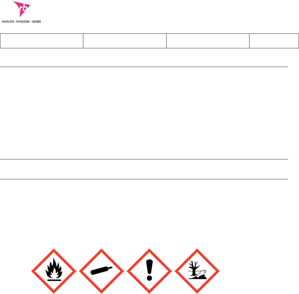 1. Identificação Nome da substância ou mistura (nome comercial): SBP Automático - Versões: Regular, Óleo de Citronela e Suave Principais usos recomendados para a substância ou mistura: Inseticida Automático Código interno de identificação da substância ou mistura: 0000 Nome da Empresa: Reckitt Benckiser (Brasil) LTDA Endereço: Rodovia Raposo Tavares, 8015 - km 18 Complemento: São Paulo - S.P. CEP 05577-900 Telefone para contato: (11) 3783-7225 Telefone para emergências: CEATOX 0800 014 8110 2. Identificação de perigos Classificação da substância ou mistura: Aerossóis: Categoria 1 - Gases sob pressão: Classificação Gás liquefeito - Corrosão/irritação à pele: Categoria 3 - Lesões oculares graves/irritação ocular: Categoria 2A - Sensibilização à pele: Categoria 1A - Perigoso ao ambiente aquático - Agudo: Categoria 2 - Perigoso ao ambiente aquático - Crônico: Categoria 2 Elementos de rotulagem do GHS Palavra de advertência: Perigo Frase(s) de perigo: H222 - Aerossol extremamente inflamável ; H229 - Recipiente pressurizado: pode romper se aquecido . H280 - Contém gás sob pressão: pode explodir sob ação do calor . H316 - Provoca irritação moderada à pele . H319 - Provoca irritação ocular grave . H317 - Pode provocar reações alérgicas na pele . H401 - Tóxico para os organismos aquáticos . H411 - Tóxico para os organismos aquáticos, com efeitos prolongados . Frase(s) de precaução: • Geral: P102 - Mantenha fora do alcance das crianças. • Prevenção: P210 - Mantenha afastado do calor/faísca/chama aberta/superfícies quentes. — Não fume., P211 - Não pulverize sobre chama aberta ou outra fonte de ignição., P280 - Use luvas de proteção/roupa de proteção/proteção ocular/proteção facial., P261 - Evite inalar as poeiras/fumos/gases/névoas/vapores/aerossóis., P273 - Evite a liberação para o meio ambiente. • Resposta à emergência: P305 + P351 + P338 - EM CASO DE CONTATO COM OS OLHOS: Enxágue cuidadosamente com água durante vários minutos. No caso de uso de lentes de contato, remova-as, se for fácil. Continue enxaguando., P302 + P352 - EM CASO DE CONTATO COM A PELE: Lave com água e sabão em abundância., P333 + P313 - Em caso de irritação ou erupção Ficha de informações de segurança de produtos químicos (FISPQ) Nome da substância ou mistura: SBP Automático - Versões: Regular, Óleo de Citronela e Suave Data da última revisão 01/08/2016 Versão: 1 FISPQ Nº 90 Página 1 de 10 cutânea: Consulte um médico. • Armazenamento: P410 + P412 - Mantenha ao abrigo da luz solar. Não exponha a temperaturas superiores a 50 °C. • Disposição: P501 - Descarte o conteúdo/recipiente em conformidade com a legislação vigente Outros perigos que não resultam em uma classificação: Não disponível Outras informações: Não disponível 3. Composição e informações sobre os ingredientes Tipo de produto: Mistura Ingredientes ou impurezas que contribuam para o perigo: 4. Medidas de primeiros socorros Medidas de primeiros socorros • Inalação: Em caso de inalação excessiva, remover a pessoa para um local arejado, fazendo-a repousar em posição confortável. Procurar auxílio médico, se a irritação persistir • Contato com a pele: Lavar imediatamente a área afetada com água em abundância e sabão. Remover as roupas contaminadas. Ocorrendo efeitos/sintomas, consultar um médico. Lavar as roupas contaminadas antes de reutilizá-las e descartar os sapatos contaminados. Procurar auxílio médico, se a irritação persistir • Contato com os olhos: Enxaguar imediata e abundantemente com água mantendo as pálpebras abertas (10 a 15 minutos) e consultar um oftalmologista, se a irritação persistir • Ingestão: Enxaguar a boca com água em abundância. NÃO provocar vômito, entretanto é possível que o mesmo ocorra espontaneamente não devendo ser evitado, deitar o paciente de lado para evitar que aspire resíduos. Procurar um médico imediatamente. ATENÇÃO: nunca dê algo por via oral para uma pessoa inconsciente Sintomas e efeitos mais importantes, agudos ou tardios: Provoca irritação moderada à pele. Provoca irritação ocular grave. Pode provocar reações alérgicas na pele Ficha de informações de segurança de produtos químicos (FISPQ) Nome da substância ou mistura: SBP Automático - Versões: Regular, Óleo de Citronela e Suave Data da última revisão 01/08/2016 Versão: 1 FISPQ Nº 90 Página 2 de 10 Nome químico comum ou técnico Nº CAS Concentração ou faixa de concentração (%) ATIVO 118712-89-3 0,20 - 0,80 ATIVO 52645-53-1 0,20 - 1,00 ANTIOXIDANTE 128-37-0 0,005 0,10 COADJUVANTE 5989-27-5 0,15 - 0,40 COADJUVANTE 8000-29-1 0,15 - 0,40 PROPELENTE 106-97-8/74-98-6 20 - 60 SOLVENTE 64-17-5 20 - 50 Notas para o médico: Tratamento sintomático. 5. Medidas de combate a incêndio Meios de extinção apropriados: Espuma, Pó químico seco, Dióxido de carbono (CO2) . O uso de neblina d’água poderá reduzir os vapores ou afastar nuvens de fumaça, ajudando a proteger a equipe de bombeiros ou as pessoas próximas Meios de extinção inadequados: Não deve ser direcionado jato de água de grande vazão, diretamente sobre o produto em chamas, pois este poderá espalhar-se Perigos específicos da substância ou mistura: Aerossol extremamente inflamável. Recipiente pressurizado: pode romper se aquecido. Contém gás sob pressão: pode explodir sob ação do calor. Manter o produto na embalagem original, bem fechado e longe do calor excessivo. Em caso de incêndio podem ser liberados: monóxido de carbono e dióxido de carbono e fumaça, tornando o ambiente asfixiante. Utilizar respirador autônomo para aproximação Medidas de proteção da equipe de combate a incêndio: Utilizar aparelho de respiração independente com demanda de pressão aprovado pela NIOSH ou equivalente e equipamento completo de proteção para combate a incêndio 6. Medidas de controle para derramamento ou vazam
