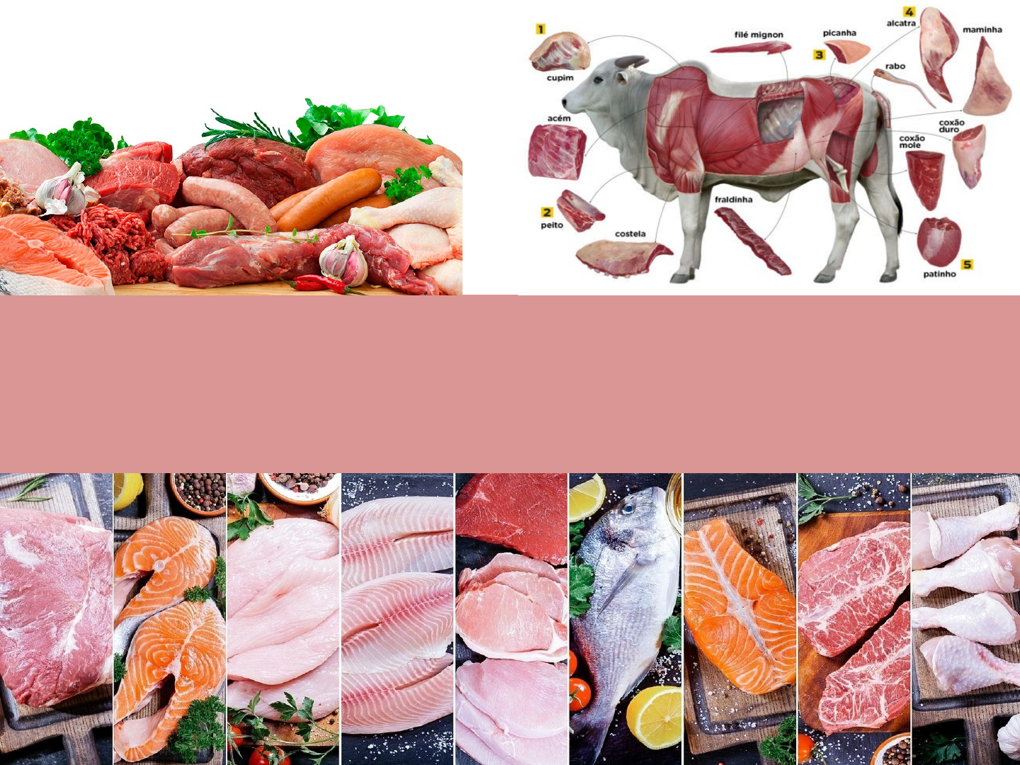 CARNES Carne • Conjunto de tecidos de cor e consistência características, que recobre o esqueleto dos animais. • Denomina-se carne todas as partes dos animais que servem de alimento ao homem. • Tipos: bovina, suína, ovina, caprina; aves, pescados, frutos do mar e tipos especiais, como avestruz, búfalo e ganso. Incluindo: • Bovinos (vísceras): língua, bucho (estômago), fígado, coração, rim, pulmão ou bofe,rabo,mocotó (carne da pata do boi), tripas (invólucro para preparo de linguiças). • Aves (miúdos): coração, moela. • Suíno (vísceras): tripas, pé , orelha. A carne compreende tecido muscular, conjuntivo e adiposo. VALOR NUTRITIVO • Proteínas de alto valor biológico (10 a 20%), • Gorduras (5 a 30%), • Vitaminas (principalmente do complexo B: B1, B2, B12 e niacina), vitamina A e • Minerais (ferro, cálcio, fósforo, zinco, magnésio, sódio e potássio). • A quantidade de calorias – em 100 g de carne bovina: • Cortes magros, cozidos, fornecem cerca de 186 calorias; • Cortes com maior teor de gordura podem fornecer mais de 300 calorias quando preparados. • Cortes crus, média de 105 kcal/100g. ESTRUTURA Tecido Muscular • Constituído de fibras musculares (que contém pigmentos). • Quantidade de pigmentos pode variar, sendo menor no animal novo que no adulto. • Os pigmentos responsáveis pela cor vermelha da carne são: mioglobulina dos músculos e a hemoglobina do sangue. • Se comportam de maneira parecida sob ação do oxigênio e do calor. • Em contato com oxigênio a hemoglobina forma a oxiemoglobina, de cor vermelha brilhante. Quando aquecida a mais de 64oC, decompõe-se a hemoglobina, produzindo a hematina, substância de cor marrom, indicando a cocção. • O tecido conjuntivo branco, embora endureça a carne, transforma-se em gelatina quando cozido em calor úmido, tornando-se macio. É composto principalmente de colágeno - em grandes proporções nos tendões (ligam músculos aos ossos). Ex.: pés de galinha e pele de peixe. • O tecido conjuntivo amarelo, composto de elastina (constituída essencialmente de tecido elástico), - flexível - aspecto brilhante - em abundância nos ligamentos que unem os ossos e os órgãos, mas não é amaciado pela cocção. • O colágeno e a elastina são insolúveis em água fria; quando submetidos ao calor seco, dessecam-se e endurecem. TECIDO CONJUNTIVO Forma as paredes das fibras musculares - Pode ser branco ou amarelo. TECIDO CONJUNTIVO • A maciez da carne depende da temperatura e do tempo de cocção. • Com o calor, o colágeno transforma-se em gelatina (gelatinização), amaciando a carne. • O amaciamento do tecido conjuntivo ocorre entre 57 e 60°C. Recomenda-se a cocção lenta, em temperatura baixa, para a carne rica em tecido conjuntivo. Exemplo: caldo com músculo, peito bovinos. • A obtenção da gelatinização se dá mais facilmente em meio ácido (vinagre ou limão), pois facilita a hidrólise do tecido protéico. TECIDO ADIPOSO • Constituído de gordura (75 a 90%), • cor e consistência - variam de um animal para outro e depende da localização. • A gordura melhora o sabor, a suculência e a maciez da carne cozida, reduz o tempo de cocção e diminui perdas de sucos por evaporação (atribuída à quantidade e distribuição de gordura – superficial, intermuscular ou intramuscular). • A gordura impede que o tecido muscular resseque durante a cocção. • Animais jovens – coloração clara. • Animais adultos - amarelada. Geralmente, a gordura de porco é mais branca e mais mole do que a bovina. • Gordura subcutânea: localizada abaixo da pele do animal – recobrindo peças - capa de gordura. ex: picanha, cupim, costela. • Gordura intermuscular: envolve órgãos e vísceras - (função de proteção); são camadas de gordura presente entre os grupos musculares. • Gordura intramuscular: distribuída entre os músculos ; presente entre fibras musculares e bainhas e adicionam umidade, textura e sabor à carne cozida. • A gordura intramuscular é chamada de marmoreio pois tem uma aparência estriada semelhante ao mármore. QUALIDADE DA CARNE A palatabilidade da carne é julgada por sua maciez e pela quantidade e deposição de gordura. • A maciez por sua vez é determinada pela idade e sexo do animal, quantidade de tecido conjuntivo, estado de maturação da carne abatida. • As partes mais exercitadas do animal são os músculos do pescoço, das pernas e do quarto dianteiro, que têm paredes celulares mais espessas e tecido conjuntivo mais denso, resultando em carne menos MACIAS. A qualidade da preparação depende das técnicas de preparo adequadas: • os cortes menos tenros (MACIOS) podem tornar-se macios e saborosos quando preparados por métodos culinários apropriados; • um corte macio preparado por métodos inapropriados pode tornar-se rijo e inadequado. RELAÇÃO Estrutura e Maciez Maturação • A maturação: armazenar a carne em embalagens à vácuo (sem oxigênio) em temperaturas entre 0 -1o C por um período de 15 dias. O vácuo visa o retardamento do crescimento de bactérias aeróbicas putrefativas e favorece o crescimento de bactérias lácticas, que produzem substâncias antimicrobianas. • Ocorrem mudanças químicas e estruturais- influenciam na maciez e sabor da carne. Características da Carne Maturada: • A diferença de coloração (vermelha-enegrecida) é devido à formação da metamioglobina, resultante da falta de oxigênio. Quando a carne é exposta ao ambiente (retirada embalagem - oxigênio) a metamioglobina é transformada em oxiemoglobina e a coloração retorna ao vermelho-vivo. • A vida de prateleira - 30 dias, se mantida em refrigeração. É o amaciamento da carne que ocorre após o rigor mortis (rigidez cadavérica), durante a estocagem refrigerada. Agentes amaciadores • O processo de amaciamento - ação mecânica, enzimática, química ou por maturação a vácuo. • Ação mecânica: no 