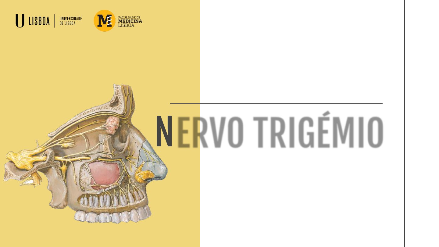NERVO TRIGÉMIO Diogo Santos Neuroanatomia – P23 CLASSIFICAÇÃO E ORIGEM APARENTE TRAJETO E RELAÇÕES NERVO OFTÁLMICO (V1) – TRAJETO E RELAÇÕES NERVO OFTÁLMICO (V1) – RAMOS COLATERAIS NERVO OFTÁLMICO (V1) – RAMOS TERMINAIS NASOCILIAR NERVO OFTÁLMICO (V1) – RAMOS TERMINAIS FRONTAL NERVO OFTÁLMICO (V1) – RAMOS TERMINAIS LACRIMAL NERVO OFTÁLMICO (V1) – TERRITÓRIO FUNCIONAL • Sensibilidade: - Região frontal - Pálpebra superior - Mucosas da porção superior das fossas nasais - Seios frontais, etmoidais e esfenoidais - Globo ocular (reflexo da córnea) - Dura-máter frontal e occipital • Fibras para a secreção lacrimal e para a midríase e vasomotricidade do globo ocular. NERVO MAXILAR (V2) – TRAJETOS E RELAÇÕES NERVO MAXILAR (V2) – RAMOS COLATERAIS NERVO MAXILAR (V2) – TERRITÓRIO FUNCIONAL • Sensibilidade: - Pele da região geniana - Pálpebras inferiores - Asa do nariz - Lábio Superior - Mucosa da porção inferior das cavidades nasais - Raízes alveolares e gengivas (Maxila) - Dura-máter • Fibras para as secreções lacrimal, nasal e palatina. SECREÇÃO LACRIMAL NERVO MANDIBULAR (V3) – TRAJETO E RELAÇÕES NERVO MANDIBULAR (V3) – RAMO COLATERAL NERVO MANDIBULAR (V3) – RAMOS TERMINAIS TRONCO TERMINAL ANTERIOR NERVO MANDIBULAR (V3) – RAMOS TERMINAIS TRONCO TERMINAL POSTERIOR SECREÇÃO PAROTÍDEA SECREÇÃO SALIVAR NERVO MANDIBULAR (V3) – TERRITÓRIO FUNCIONAL • Sensibilidade: - Região temporal - Bochecha e mento - Mucosa bucal - Gengivas - Lábio Inferior - Região anterior da língua - Dentes inferiores - Mandíbula - Meninges do andar médio do crânio • Impressões gustativas dos 2/3 anteriores da língua • Secreção da parótida, glândulas sublingual e submaxilar. NERVO TRIGÉMIO – LESÕES