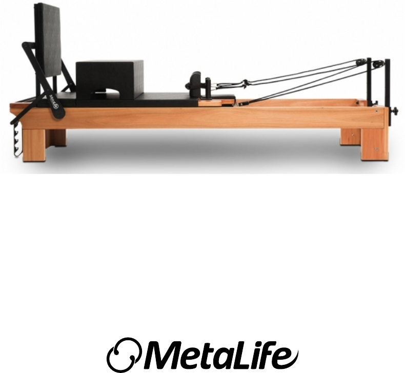 Manual do equipamento REFORMER Revisão 10/01/2020 2 ESTE MANUAL CONTÉM INFORMAÇÕES ESSENCIAIS PARA A UTILIZAÇÃO DO SEU EQUIPAMENTO. LEIA-O ATENTAMENTE ANTES DE INICIAR SUA INSTALAÇÃO E OPERAÇÃO. PRESERVE E MANTENHA-O PARA CONSULTAS FUTURAS. Ao longo do manual este símbolo a esquerda indicará informações de extrema importância que devem ser lidas, compreendidas e seguidas rigorosamente. Manual do equipamento REFORMER 3 SUMÁRIO Apresentação do produto...............................................................4 Especificações técnicas.......................................................5 Conteúdo embalagem.......................................................6 Manual de instalação..........................................................7 Componentes .....................................................................8 Preparação para montagem..............................................9 Montagem detalhada.........................................................10 Manual de utilização...........................................................12 Usos e regulagens...............................................................12 Manutenção e segurança..................................................16 Termo de garantia...............................................................19 4 APRESENTAÇÃO DO PRODUTO O Reformer é considerado um equipamento essencial para quem trabalha com o Método Pilates. Sua configuração, composta de sistemas com ajustes simples e rápidos, permite uma facilidadede adaptação para usuários de diversos tamanhos e níveis de habilidade. A resistência, gerada pelas molas do Reformer, permite exercícios suaves de contração desenvolvendo seus músculos sem agressões. O Reformer possibilita exercícios precisos de resistência regendo um trabalho exato de alinhamento, centro de força e de todos os princípios dos exercícios de pilates. Os trilhos do Refomer Metalife permitem o perfeito deslizamento do carrinho. Seu denso estofamento é ideal para exercícios nas posições sentada, em pé ou deitada. A base do Reformer Metalife é desenvolvida em madeira nobre maciça Lyptus, proveniente de fontes 100% sustentáveis e renováveis. qualidade do seu equipamento e no futuro do meio ambiente.É a Metalife pensando na 5 ESPECIFICAÇÕES TÉCNICAS DIMENSÃO 90 KG 140 KG Obs: O peso do equipamento pode sofrer alterações em função da variação de densidade da matériaprima empregada em sua fabricação. PESO MÁXIMO SUPORTADO A B C 0,40m 2,70m 0,77m 0,62m 2,70m 0,77m REFORMER REFORMER ALTO AB C 6 CONTEÚDO DA EMBALAGEM CONTEÚDO CONJUNTO BASE RF CONJUNTO CARRO RF CHAPA MOLA VERMELHA 3X31X499MM(4x) MOLA AZUL 2,6X31X499MM CONJUNTO BARRA AUXILIAR RF CONJUNTO PE 1 SOLEIRA RF CONJUNTO PE 2 SOLEIRA RF CONJUNTO PE 2 CABECEIRA RF/CD CONJUNTO PE 1 CABECEIRA RF/CD EMBALAGEM RF KIT MANUAL RF TR CONJUNTO OMBREIRA PUNHO RF(2x) 1 2 3 4 5 6 7 8 9 10 11 12 A 1 34 5 67 8 9 10 11 12 2 7 CONTEÚDO ALÇA COXA/PE (2x) SUPORTE BARRA APOIO 1 RF SUPORTE BARRA APOIO 2 RF CONJUNTO MOITÃO COMPLETO RF (2x) CONJUNTO SUPORTE APOIO PS (2x) MOSQUETÃO TRAVA SIMPLES 8X80MM (3x) ALÇA SUSTENTAÇÃO STOPPER RF KIT CHAVE ALÇA MÃO (2x) TRAVA APOIO RF CORDA ALÇA/ALÇA PÉ TRANCADA PRETA 8X5000MM PARAFUSO SI PN ZP 1/4X3/4 (8x) PARAFUSO SI CH ZP 1/4X1 (4x) 13 14 15 16 17 18 19 20 21 22 23 24 25 26 OLHAL DUPLO (2X)27 16 15 19 20 22 23 24 25 26 13 1814 17 21 27 8 COMPONENTES MANUAL DE INSTALAÇÃO Para sua comodidade, a Metalife possui uma Rede de Técnicos Autorizados qualificados para instalar seu equipamento. Por esse serviço será cobrada uma taxa de instalação. Esta instalação não compreende serviços de preparação do local que são de responsabilidade do consumidor. Caso prefira, você mesmo pode montar seu equipamento, contanto que siga passo-a- passo as instruções desse manual. 1 1 2 3 4 5 6 7 8 9 10 11 12 13 14 15 16 17 18 19 20 21 2324 26 28 27 9 CONTEÚDO PORCA SX AT ZB M10 (8x) SUSTENTAÇÃO BARRA APOIO 1 RF SUSTENTAÇÃO BARRA APOIO 2 RF TRAVA APOIO RF TUBO AUXILIAR BARRA APOIO RF CONJUNTO PE 1 SOLEIRA RF CONJUNTO PE 2 SOLEIRA RF CONJUNTO PE 1 CABECEIRA RF/CD CONJUNTO PE 2 CABECEIRA RF/CD CONJUNTO PRENDEDOR MOLAS SUPORTE APOIO PS (2x) ARRUELA LISA ZB 2X10,5X21MM (M10) (4x) CAPA PORCA M10 (4x) CONJUNTO HASTE MOITÃO RF (2x) CONJUNTO SUPORTE HASTE MOITÃO RF (2x) MANIPULO MACHO 3P 60xM12x1,75x25MM CONJUNTO CARRO RF CHAPA ESTOFADO CARRO RF ESTOFADO OMBREIRA CARRO RF (2x) ESTOFADO CABECEIRA CARRO RF/CD CONJUNTO OMBREIRA PUNHO RF (2x) PARAFUSO SI CH ZP 1/4X1 (4x) PARAFUSO SI PN ZP 1/4X3/4 (8x) BASE RF PARAFUSO SI PN ZP 5/16X7/8 (2x) CHAVE COMBINADA 17MM CHAVE ALLEN HEXAGONAL CURTA 3/16 CHAVE ALLEN HEXAGONAL CURTA 5/32 1 2 3 4 5 6 7 8 9 10 11 12 13 14 15 16 17 18 19 20 21 22 23 24 25 26 28 27 10 PREPARAÇÃO PARA MONTAGEM O Reformer deverá ser instalado e u�i lizado em ambiente propício para prát ica de FERRAMENTAS E FIXADORES PARA MONTAGEM Pilates. Deverão ser respeitadas as seguintes caracterís�i cas na área de instalação do equipamento: • Nivelamento adequado e estabilidade do piso; • Baixa umidade; • Proteção contra incidência de raios solares. Para seu conforto, a Metalife disponibiliza todas as ferramentas e f ixadores necessários para realizar a montagem do seu equipamento. Guarde-as para futuras manutenções ou reposições de componentes. Durante a montagem deve-se seguir corretamente as orientações cont idas neste manual. O Equipamento está sujeito a danos durante este processo, portanto tenha cautela ao lidar com componentes e ferramentas. Os danos causados pelo não cumprimento das instruções deste manual são de responsabilidade do consumidor. Em caso de dúvidas ou dif iculdades entre em contato com a Assistência Técnica Metalife. Seguindo as orientaçõ con�das neste manual es �ma-se um tempo de 60 minutos para a montagem completa do seu Reformer Metalife. São necessárias 02 pessoas para re