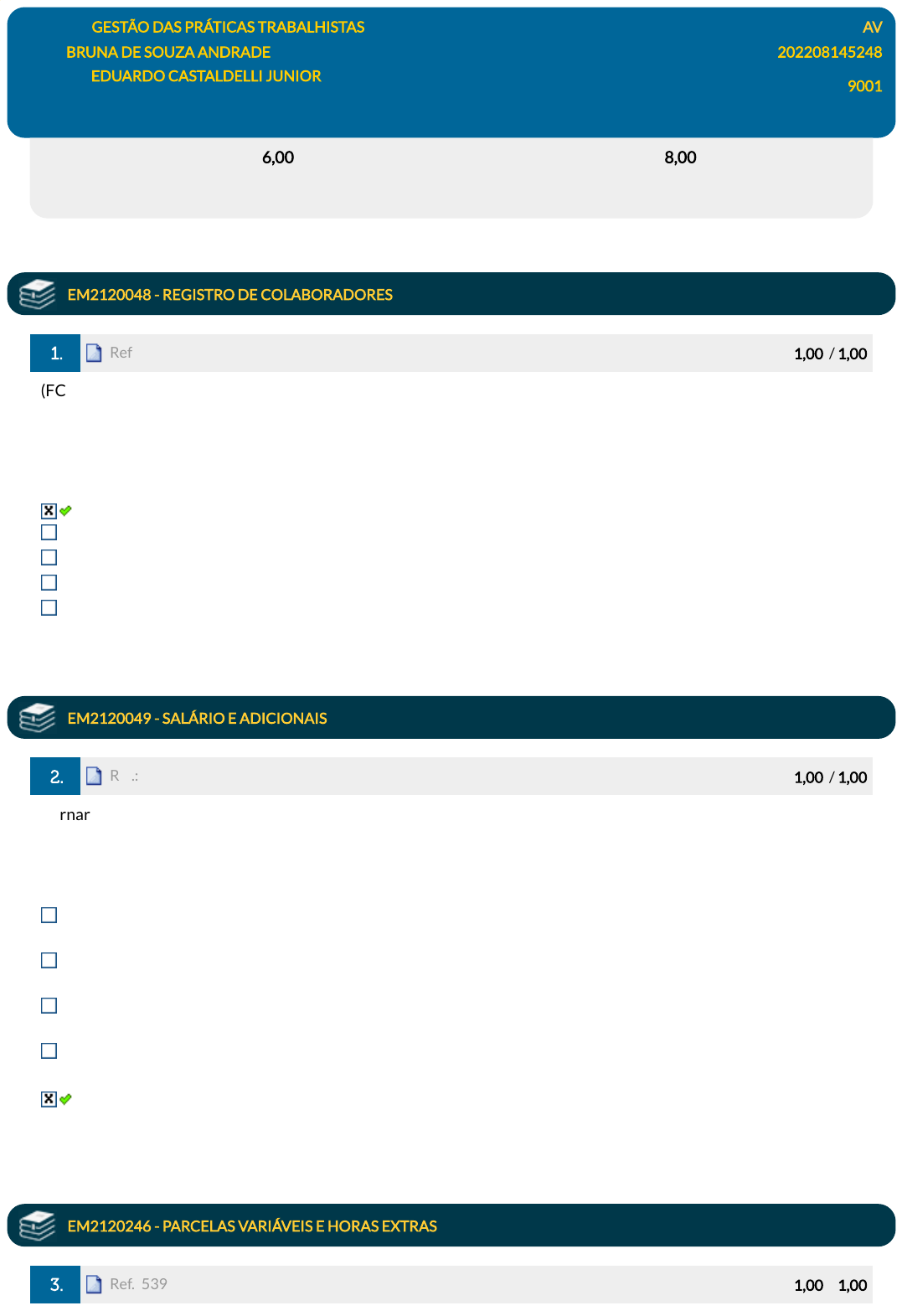 Avaliação: 6,00 pts Nota SIA: 8,00 pts