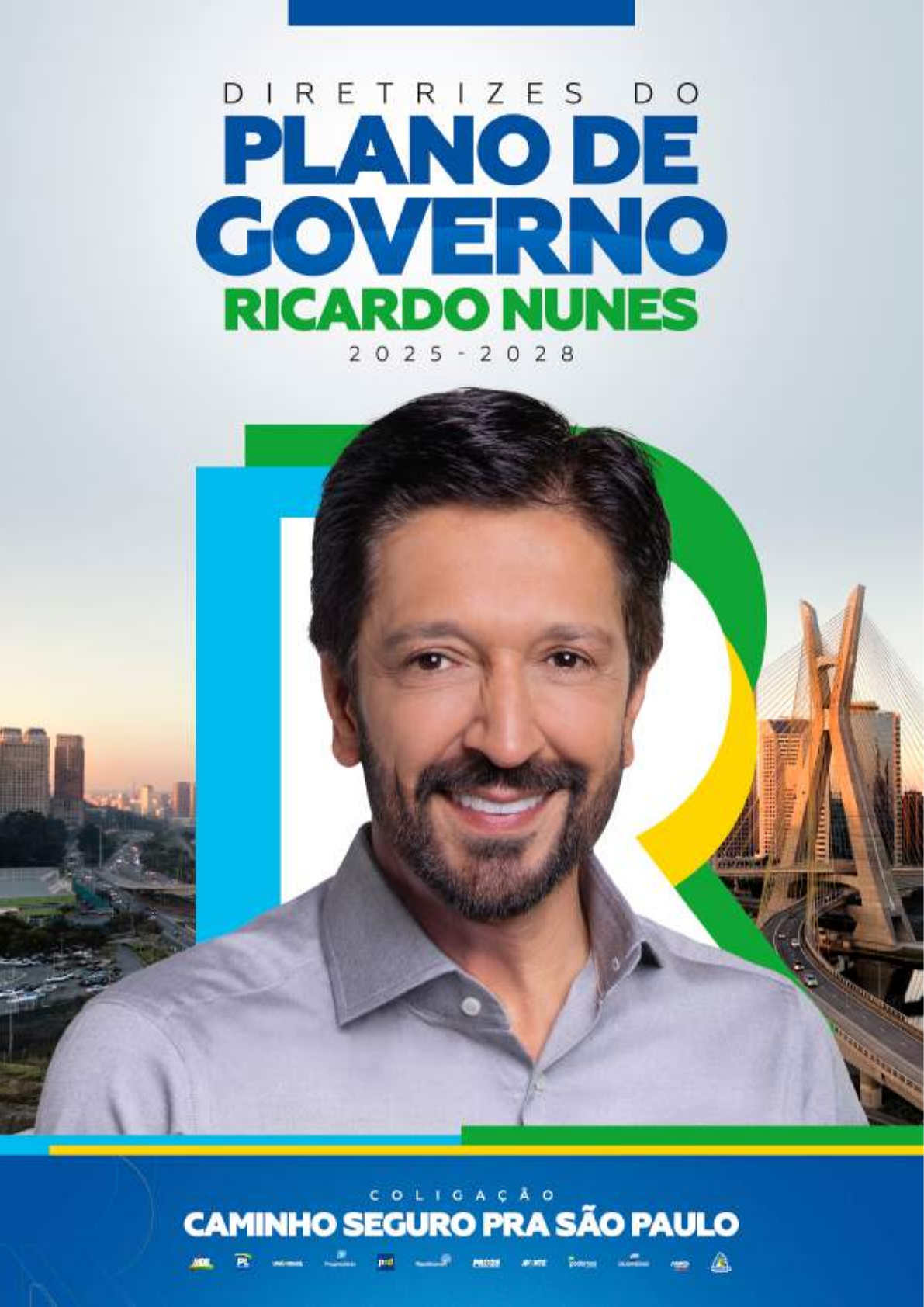 PLANO DE GOVERNO RICARDO NUNES | 2025-2028 1 UM PLANO DE GOVERNO CONSTRUÍDO COM A VERDADEIRA PARTICIPAÇÃO DO POVO DE SÃO PAULO POR MEIO DA PLATAFORMA E EVENTOS DO FALA AÍ SP. QUANTO MAIS PERTO DO POVO, MAIS LEGÍTIMA E EFETIVA É A GESTÃO 32 REUNIÕES REGIONAIS 4 GRANDES ENCONTROS 12 MIL PARTICIPANTES 40 MIL INTERAÇÕES PELO APP Reunião do Plano de Governo PLANO DE D I R E T R I Z E S D O 2 0 2 5 - 2 0 2 8 C O L I G A Ç Ã O CAMINHO SEGURO PRA SÃO PAULO GOVERNO RICARDO NUNES Esse documento é constituído por diretrizes. S U M Á R IO CAMINHO SEGURO PRA SÃO PAULO PRA SÃO PAULO SEGUIR NO CAMINHO SEGURO DO DESENVOLVIMENTO E INCLUSÃO SOCIAL Saúde pra frente, cuidando de gente Educação pra frente, cuidando de gente Assistência Social, Direitos Humanos e Cidadania pra frente População em Situação de Rua Crianças e Adolescentes Mulheres Pessoa Idosa Igualdade Racial Diversidade Imigrantes Juventude Segurança Alimentar e Combate à Fome Pra frente com ações para Pessoas com Deficiência Segurança e Ordem Pública pra frente, cuidando de gente Defesa Civil pra frente, cuidando de gente Esportes, Lazer e Atividade Física pra frente, cuidando de gente Cultura e Economia Criativa pra frente, cuidando de gente PRA SÃO PAULO SEGUIR NO CAMINHO SEGURO DA INOVAÇÃO, COMPETITIVIDADE E GERAÇÃO DE EMPREGO E RENDA Pra frente com Desenvolvimento Econômico, Trabalho e Empreendedorismo Inovação e Tecnologia pra frente, cuidando de gente Turismo e Eventos pra frente, cuidando de gente PRA SÃO PAULO SEGUIR NO CAMINHO SEGURO DO DESENVOLVIMENTO URBANO E DA SUSTENTABILIDADE AMBIENTAL Meio Ambiente pra frente, cuidando de gente Pra frente com Ações para enfrentar as Mudanças Climáticas Gestão Urbana pra frente, cuidando de gente Transportes e Mobilidade pra frente, cuidando de gente Habitação e Regularização Fundiária pra frente, cuidando de gente Infraestrutura e Obras pra frente, cuidando de gente PRA SÃO PAULO SEGUIR NO CAMINHO SEGURO DA GESTÃO INOVADORA E DEMOCRÁTICA Gestão e Modernização Institucional pra frente, cuidando de gente Transparência, Controle e Prevenção à Corrupção Descentralização e Parcerias Gestão Orçamento e Finanças Planejamento e Entregas Prioritárias 06 12 14 16 20 20 21 21 22 22 22 22 22 22 26 28 30 32 34 36 38 40 42 44 46 48 50 52 54 58 60 62 63 63 64 64 64 PLANO DE GOVERNO RICARDO NUNES | 2025-2028 PLANO DE GOVERNO RICARDO NUNES | 2025-2028 6 7 C omeço esta mensagem expressando meu agradecimento a todos os paulistanos que participaram, com muito entusiasmo, da construção deste conjunto de diretrizes do Plano de Governo que, mais do que cumprir um requisito legal para o registro da candidatura, ressalta o nosso compromisso com a democracia no processo de construção da cidade que todos sonhamos. Tenho uma crença inabalável de que o cidadão deve ser protagonista no processo de desenvolvimento. Acredito que a Agenda Pública deve ser estabelecida com o cidadão, as instituições e as empresas, e temos, portanto, um papel de catalisar estes fundamentos da ordem social e criar consensos, pois no mundo em que vivemos, as vozes que fazem diferença são muitas e diversas. Assim, invertemos a lógica de reunir, inicialmente, os especialistas para posteriormente apresentar as propostas à sociedade. Iniciamos a elaboração deste documento ouvindo as pessoas em todos os cantos da cidade. Realizamos 32 reuniões regionais com a participação de cerca de 12 mil cidadãos, que puderam exprimir seus anseios, ideias e propostas. Lançamos a plataforma FALA AÍ SP de contribuições online, pela qual tivemos 40 mil interações. Posteriormente, organizamos quatro grandes plenárias, macrorregionais, nas quais apresentamos a consolidação das propostas recebidas na etapa anterior, resultando num volume extraordinário de contribuições, que sistematizadas e analisadas por colaboradores especialistas, possibilitaram a elaboração destas diretrizes. É o ponto de partida de um processo dinâmico, democrático e aberto, que sofrerá os devidos ajustes, quando necessários, e os acréscimos que se fizerem devidos, durante a campanha eleitoral, mediante acordos e compromissos que vamos firmando com as entidades representativas da sociedade e com o cidadão. Logo no início do novo mandato, o plano conformará o Programa de Metas, além de ser a principal referência para o Plano Plurianual – PPA, que integrará os investimentos para os quatro anos seguintes. Uma maneira democrática de definirmos a Agenda Governamental para os próximos quatro anos. Governar uma cidade como São Paulo, não é uma tarefa solitária, aglutinamos uma boa equipe, estabelecemos parcerias com as outras esferas de governo, sobretudo com o governo estadual, o que tem gerado uma boa sinergia nos grandes projetos de infraestrutura, macrodrenagem, mobilidade e transportes, habitação, saúde, segurança e tantos outros. Também procuramos estimular o capital social, investindo na organização democrática da sociedade e trazendo as entidades para a execução de várias políticas públicas, tendo sempre como foco da nossa atenção o cidadão, legítimo destinatário da ação governamental. Todos sabem dos imensos contrastes que esta megacidade apresenta e o desafio imenso que é governá-la com o foco na redução das suas desigualdades e criação de oportunidades para todos. Aqui, temos a maior geração de riqueza, bem como a maior concentração de pobreza, convivendo intimamente no território, motivo de agravamento das tensões sociais, da violência e da criminalidade. Tendo nascido no extremo Sul desta extraordinária metrópole, e conhecedor das suas potencialidades e desafios, comecei a empreender desde cedo e simultaneamente entrei para a vida pública com o objetivo de melhorar a vida das pessoas. Como empreendedor, compreendi a importância da geração de oportunidades de emprego e renda na dignificação da vida das pessoas e no progresso s