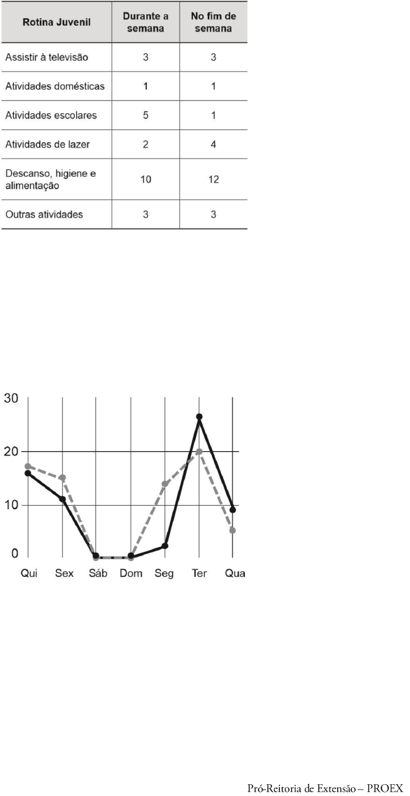 72 Caderno de material complementar e de apoio 6. (ENEM - 2012) Uma pesquisa realizada por estudantes da Faculdade de Estatística mostra, em horas por dia, como jovens entre 12 e 18 anos gastam seu tempo, tanto durante a semana (de Segunda- feira a sexta-feira), como no fim de semana (sábado e domingo). A seguinte tabela ilustra os resultados da pesquisa. De acordo com esta pesquisa, quantas horas de seu tempo gasta um jovem entre 12 e 18 anos, na semana interfira ( de segunda-feira a domingo), nas atividades escolares? a) 20 b) 21 c) 24 d) 25 e) 27 7. (ENEM - 2012) A Figura a seguir apresenta dois gráficos com informações sobre as reclamações diárias recebidas e resolvidas pelo Setor de Atendimento ao Cliente (SAC) de uma empresa, em uma dada semana. O gráfico de linha tracejada informa o número de reclamações recebidas no dia, o de linha contínua é o numero de reclamações resolvidas no dia. As reclamações podem ser resolvidas no mesmo dia ou demorarem mais de um dia para serem resolvidas. O gerente de atendimento deseja identificar os dias da semana em que o nível de eficiência pode ser considerado muito bom, ou seja, os dias em que o número de reclamações resolvidas excede o número de reclamações recebidas. O gerente de atendimento pôde concluir, baseado no conceito de eficiência utilizado na empresa e nas informações do gráfico, que nível de eficiência foi muito bom na a) segunda e na terça-feira. b) terça e na quarta-feira. c) terça e na quinta-feira. d) quinta-feira , no sábado e no domingo. e) segunda, na quinta e na sexta-feira.