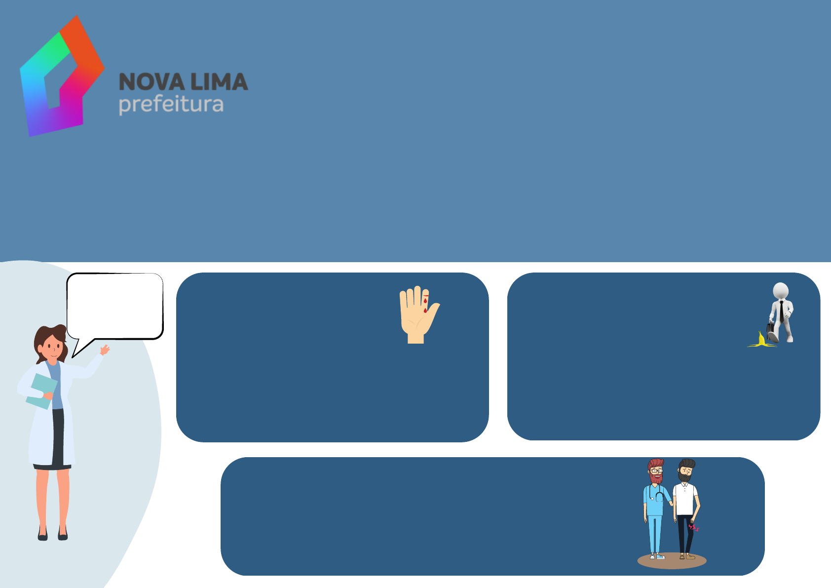 ACIDENTE DE TRABALHO, VOCÊ SABE O QUE É? TÍPICO QUANDO O FUNCIONÁRIO SOFRE UM ACIDENTE EXECUTANDO SUAS ATIVIDADES DIÁRIAS, DENTRO DO HORÁRIO DE TRABALHO, OU MESMO FORA DO LOCAL HABITUAL,QUANDOESTÁ A SERVIÇO DA EMPRESA QUANDO O FUNCIONÁRIO SOFRE UM ACIDENTE EXECUTANDO SUASUAS ATIVIDADES DIÁRIAS, DENTRO DO HORARIO DE TRABALHO, OU MESMO FORA DO LOCAL HABITUAL, QUANDO ESTÁ A SERVIÇO DA EMPRESA DE T SERVIDORES DA PREFEITURA MUNICIPAL DE NOVA LIMA ACIDENTE DE TRABALHO É TODO ACONTECIMENTO INESPERADO QUE OCORRE COM O TRABALHADOR QUANDO ELE ESTÁ A SERVIÇO DA EMPRESA, PROVOCANDO LESÃO FÍSICA, PERTURBAÇÃO MENTAL, PERDA MATERIAL OU DANO AO MEIO AMBIENTE QUANDO O FUNCIONÁRIO SE ACIDENTA NO SEU TRAJETO ROTINEIRO DE CASA PARA O TRABALHO OU VICE - VERSA SEM INTERRUPÇÃO OU DESVIO DO SEU TRAJETO DIÁRIO DE TRAJETO QUANDO O FUNCIONÁRIO ADQUIRE UMA DOENÇA POR CAUSA DO SEU TRABALHO OU POR CAUSA DO SEU AMBIENTE DE TRABALHO DOENÇA OCUPACIONAL ACIDENTES DE TRABALHO PODEM SER: EM CASO DE ACIDENTE DE TRAJETO Procurar atendimento médico, na UPA de Nova Lima ou Hospital Nossa Senhora de Lourdes, preferencialmente; Comunicar à chefia imediata que deverá preencher o formulário da Comunicação de Acidentes do Trabalho – CAT - e enviá-la junto com o servidor acidentado para que o médico responsável pelo atendimento faça o preenchimento das informações do atestado médico (em caso de dúvidas, ligue no SIASS: 3541-3990); Comunicar por e-mail engenharia.siass@pnl.mg.gov.br e atendimento.siass@pnl.mg.gov.br em um prazo máximo de 12 horas úteis a ocorrência do acidente, com nome completo do servidor, lotação, secretaria, telefone e matrícula, além da descrição sucinta do ocorrido para que a equipe de Segurança do Trabalho possa realizar a investigação da ocorrência e a equipe da recepção possa agendar a consulta com o médico do trabalho; Comparecer ao SIASS da PNL, conforme agendamento: Rua Dr. José Ribeiro da Fonseca nº1, bairro Centro, (telefone 3541-3990) para consulta com médico do trabalho, término do registro da Comunicação de Acidente de Trabalho - CAT no portal do E social, ( prazo de até 24 horas úteis após o acidente), trazendo a CAT totalmente preenchida. * Casos de maior gravidade serão reportados por terceiros, tais como familiares ou colegas de trabalho e não precisarão do comparecimento em consulta com médico do trabalho, no SIASS. PROCEDIMENTOS BÁSICOS PARA EMISSÃO DA CAT Procurar atendimento médico em uma unidade de atendimento mais próxima ao local da ocorrência; Comunicar à Chefia Imediata que deverá preencher o formulário da Comunicação de Acidentes do Trabalho – CAT - e enviá-la junto com o servidor acidentado para que o Médico responsável pelo atendimento faça o preenchimento das informações do atestado médico (em caso de dúvidas, ligue no SIASS: 3541 3990); Se for um acidente de trânsito ou assalto, chamar a polícia e solicitar o Boletim de Ocorrência Policial (BO); Providenciar o nome completo, telefone e endereço completo de duas testemunhas no local do acidente; Comunicar por e-mail engenharia.siass@pnl.mg.gov.br e atendimento.siass@pnl.mg.gov.br no prazo máximo de 12 horas úteis a ocorrência do acidente, com nome completo do servidor, lotação, secretaria, telefone e matrícula, além da descrição sucinta do ocorrido para que a equipe de Segurança do Trabalho possa realizar a investigação da ocorrência e a equipe da recepção possa agendar a consulta com o médico do trabalho; Comparecer ao SIASS da PNL, conforme agendamento: Rua Dr. José Ribeiro da Fonseca nº1, bairro Centro, (telefone 3541-3990) para consulta com médico do trabalho, término do registro da Comunicação de Acidente de Trabalho - CAT no portal do E social, ( prazo de até 24 horas úteis após o acidente), trazendo a CAT totalmente preenchida. * Casos de maior gravidade serão reportados por terceiros, tais como familiares ou colegas de trabalho e não precisarão do comparecimento em consulta com médico do trabalho, no SIASS. OBS: Em caso de acidente do trabalho, o servidor deverá, obrigatoriamente, passar por consulta com médico do trabalho do SIASS. EM CASO DE ACIDENTE TÍPICO/ DOENÇA OCUPACIONAL mailto:engenharia.siass@pnl.mg.gov.br mailto:atendimento.siass@pnl.mg.gov.br mailto:engenharia.siass@pnl.mg.gov.br mailto:engenharia.siass@pnl.mg.gov.br mailto:atendimento.siass@pnl.mg.gov.br