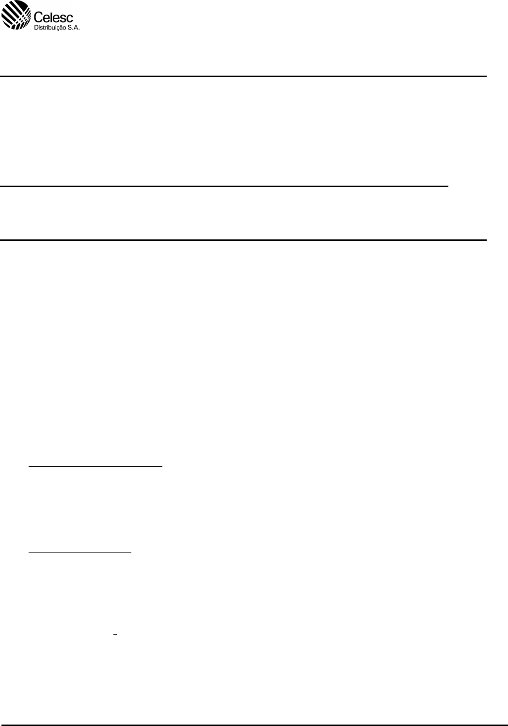 SISTEMA DE DESENVOLVIMENTO DE SISTEMAS DE DISTRIBUIÇÃO SUBSISTEMA NORMAS E ESTUDOS DE MATERIAIS E EQUIPAMENTOS DE DISTRIBUIÇÃO CÓDIGO TÍTULO FOLHA I-313.0023 LOTEAMENTOS COM REDE AÉREA DE DISTRIBUIÇÃO DE ENERGIA ELÉTRICA PADRONIZAÇÃO APROVAÇÃO ELABORAÇÃO VISTO APRE RES. DDI Nº 079/2022 - 22/06/2022 DVEN DPEP MANUAL DE PROCEDIMENTOS 1/49 1. FINALIDADE Estabelecer os procedimentos técnicos e critérios básicos para projeto elétrico, montagem, inspeção e recebimento de materiais de redes aéreas de distribuição de energia elétrica aplicados a loteamentos, desmembramentos e condomínios, para fins residencial, comercial e industrial, onde os ativos serão transferidos à Celesc Distribuição S.A. – Celesc D. Esta Instrução Normativa tem como princípio assegurar que as redes aéreas tenham condições técnicas necessárias das instalações elétricas, qualidade no fornecimento de energia e níveis de segurança compatíveis com as necessidades operacionais, de crescimento e de manutenção da rede de distribuição da Celesc D. 2. ÂMBITO DE APLICAÇÃO Aplica-se a toda a Celesc D, Núcleos e/ou Unidades, fabricantes, fornecedores de materiais, empreendedores, empreiteiras, projetistas e demais órgãos usuários. 3. ASPECTOS LEGAIS Devem ser consultadas como complemento a esta Instrução Normativa, as seguintes normas, leis e resoluções: a) Resolução no 229, de 8 de agosto de 2006 – ANEEL; b) Resolução no 359, de 14 de abril de 2009 – ANEEL; CÓDIGO: I-313.0023 FL. 2/49 PADRONIZAÇÃO APROVAÇÃO ELABORAÇÃO VISTO APRE RES. DDI Nº 079/2022 - 22/06/2022 DVEN DPEP c) Resolução no 1.000, de 7 de dezembro de 2021 – ANEEL; d) N-321.0001 – Fornecimento de Energia Elétrica em Tensão Secundária de Distribuição; e) I-313.0005 – Metodologia de Cálculo de Estruturas para Redes Aéreas de Distribuição; f) I-134.0025 – Diretrizes Contratuais de Segurança e Saúde no Trabalho; g) I-313.0011 – Símbolos Gráficos para Projetos de Redes e Linhas Aéreas de Distribuição; h) I-313.0021 – Critérios para Utilização de Redes de Distribuição; i) E-313.0002 – Estruturas Para Redes Aéreas Convencionais de Distribuição; j) E-313.0085 – Estruturas para Redes de Distribuição Aérea com Cabos Cobertos Fixados em Espaçadores – Rede Compacta; k) NE-111E – Estruturas para redes isolada multiplexadas de MT; l) E-313.0078 – Rede de Distribuição Aérea Secundária Isolada até 1 kV; m) N-321.0002 – Fornecimento de Energia Elétrica em Tensão Primária de Distribuição até 25 KV; n) N-321.0003 – Fornecimento de Energia Elétrica a Edificações de Uso Coletivo; o) Lei no 6.766 de 19 de dezembro de 1979, dispõe sobre o parcelamento do solo urbano e dá outras providencias; p) normas e especificações técnicas da Celesc D e da ABNT, sendo que as normas auxiliares para o claro entendimento estão listadas no subitem 6.1. desta Instrução Normativa. CÓDIGO: I-313.0023 FL. 3/49 PADRONIZAÇÃO APROVAÇÃO ELABORAÇÃO VISTO APRE RES. DDI Nº 079/2022 - 22/06/2022 DVEN DPEP 4. CONCEITOS BÁSICOS 4.1. Sistema de Distribuição É a parte do sistema de potência destinado ao transporte de energia a partir do barramento secundário de uma subestação de distribuição, onde termina a subtransmissão, até o ponto de entrega da unidade consumidora. 4.2. Circuito Primário É a parte da rede aérea destinada a alimentar os transformadores de distribuição da concessionária e/ou de consumidores, nas classes de tensão de 13,8; 23,1 e 34,5 kV ditas de média tensão. A escolha do tipo de construção, nua para área agressiva, compacta com cabos cobertos em espaçadores, rural protegida ou isolada aérea com cabos isolados multiplexados de média tensão deve ocorrer de acordo com a Instrução Normativa I-313.0021 – Critério para Utilização de Redes de Distribuição. 4.3. Circuito Secundário Isolado É a parte da rede aérea, constituída de cabos isolados multiplexados de baixa tensão até 1 kV que, a partir dos transformadores de distribuição, conduzem energia aos pontos de consumo. 4.4. Ramal de Entrada Secundário Isolado São os condutores e acessórios compreendidos entre o ponto de derivação no circuito secundário e a medição. 4.5. Ramal de Entrada Primário São os condutores e acessórios compreendidos entre o ponto de derivação no circuito primário e a medição. 4.6. Poste de Transição Poste a partir do qual são derivados os circuitos primários ou secundários. CÓDIGO: I-313.0023 FL. 4/49 PADRONIZAÇÃO APROVAÇÃO ELABORAÇÃO VISTO APRE RES. DDI Nº 079/2022 - 22/06/2022 DVEN DPEP 4.7. Unidade de Consumo Nos edifícios é considerado como unidade de consumo, cada apartamento, individualizado pela respectiva medição de energia, enquanto na parte térrea, cada lote constitui uma unidade. 4.8. Ponto de Entrega O ponto de entrega de energia elétrica nas redes de distribuição será no ponto de conexão da derivação da rede secundária ou primária com o ramal de entrada do cliente. 4.9. Limite de Propriedade São as demarcações que separam a propriedade do consumidor da via pública e dos terrenos adjacentes de propriedade de terceiros no alinhamento designado pelos poderes públicos. 4.10. Condomínio Fechado São lotes ou residências de um local fechado por muro ou cerca, legalmente constituído, de uso comum e com acesso controlado, e que, por essa razão, pertencem à totalidade dos proprietários que ali residem. 4.11. Carga Instalada É a soma das potências nominais em kW das cargas a serem ligadas ao sistema considerado. 4.12. Demanda É a potência, em kVA ou em kW, requisitada por determinada carga instalada. Normalmente se considera a potência média de 15 minutos. 4.13. Demanda Máxima É a maior de todas as demandas registradas ou ocorridas durante um período de tempo definido como um dia, uma semana, um ano etc. CÓDIGO: I-313.0023 FL. 5/49 PADRONIZAÇÃO APROVAÇÃO ELABORA