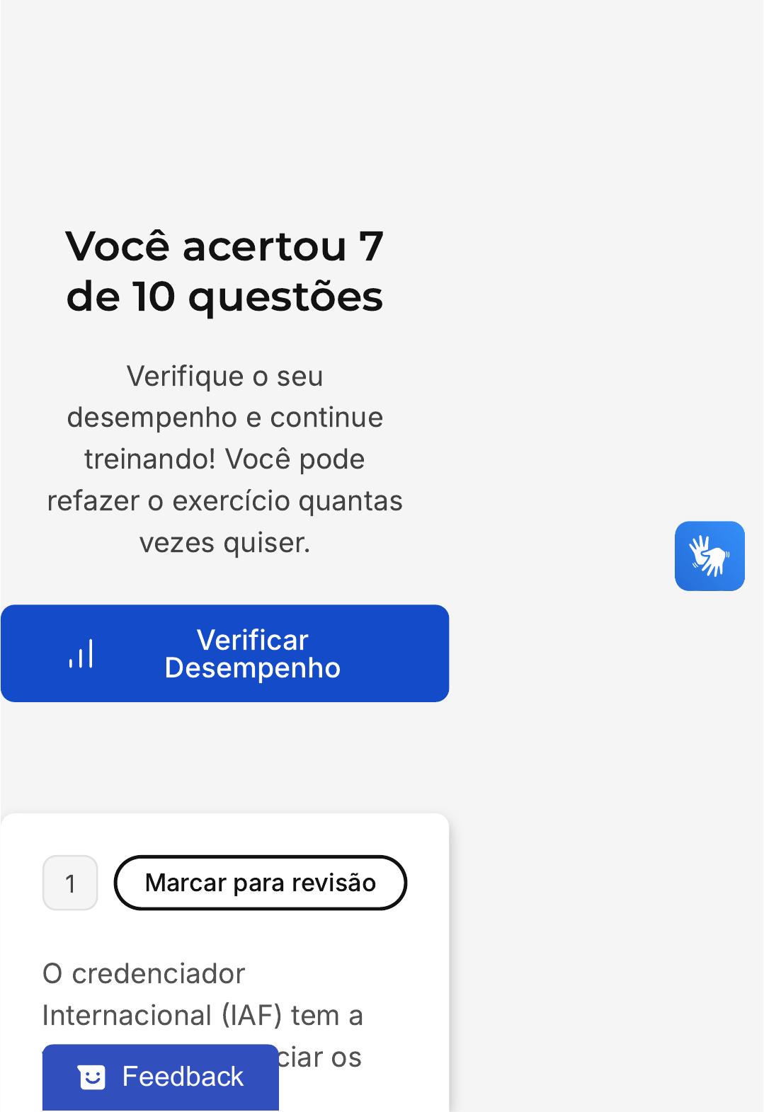 Você acertou 7 de 10 questões Verifique o seu desempenho e continue treinando! Você pode refazer o exercício quantas vezes quiser. Verificar Desempenho 1 Marcar para revisão O credenciador Internacional (IAF) tem a função de credenciar os Feedback A B C credenciadores nacionais em diversos países. No caso do Brasil, o credenciador nacional é: _______________. Escolha a alternativa correta. ABNT garantia da qualidade dos produtos brasileiros INMETRO ISO conformidade dos produtos fabricados D E Bureau Veritas Centro tecnológico brasileiro Resposta incorreta Opa! A alternativa correta é a letra B. Confira o gabarito comentado! Gabarito Comentado O INMETRO (Instituto Nacional de Metrologia, Qualidade e Tecnologia) é o órgão responsável por credenciar os credenciadores nacionais no Brasil. Este processo de credenciamento é fundamental para garantir a qualidade e a conformidade dos produtos e serviços oferecidos no país. O INMETRO, portanto, desempenha um papel crucial na manutenção dos padrões de qualidade, pois credencia empresas que têm como objetivo auditar e certificar outras empresas. 2 Marcar para revisão No final da década de 1980, o Governo Federal A B financiou vários grupos ligados principalmente às universidades para conhecerem sobre métodos de implantação da qualidade em vários países. Como resultado, foi constituído em 1990 o Programa Brasileiro de Qualidade e Produtividade. Este programa tinha como objetivo: Escolha a alternativa correta. Buscar a melhoria da qualidade e produtividade das empresas brasileiras. Integração do Mercosul. C D E Intensificar a Segurança Mundial. Integração com países europeus. Buscar a Sustentabilidade Ambiental. Resposta correta Parabéns, você selecionou a alternativa correta. Confira o gabarito comentado! Gabarito Comentado O Programa Brasileiro de Qualidade e Produtividade, criado em 1990, tinha como principal objetivo buscar a melhoria da qualidade e produtividade das empresas brasileiras. Este programa foi uma iniciativa do Governo Federal para dinamizar a competitividade da indústria nacional, através do financiamento de grupos ligados principalmente às universidades, com o intuito de estudar e implementar métodos de qualidade adotados em diversos países. Portanto, a alternativa correta é a "A". 3 Marcar para revisão Em meados do século passado, representantes de vinte e cinco países decidiram fundar a International Organization for Standardization, com o objetivo de promover o desenvolvimento da normalização de atividades industriais. A criação da ISO possibilitou o intercâmbio econômico, científico e tecnológico. Qual é o significado da sigla ISO? Escolha a alternativa correta. A B C D E Instituição Social das Organizações. Instituição Social das Organizações Ambientais. Instituição Social das Organizações Socioambientais. Organização Internacional de Normalização. Organização Internacional de Normalização Ambiental. Resposta correta Parabéns, você selecionou a alternativa correta. Confira o gabarito comentado! Gabarito Comentado A sigla ISO é uma abreviação de International Organization for Standardization, que em português significa Organização Internacional de Normalização. Esta organização foi criada com o objetivo de desenvolver e promover normas que possam ser utilizadas de maneira consistente e repetida para certos processos, materiais e produtos em todo o mundo. A alternativa correta é a letra D, que traduz corretamente o significado da sigla ISO. 4 Marcar para revisão O Brasil segue o exemplo dos sistemas mais modernos, nos quais somente um organismo acreditador por país ou economia é reconhecido, e há uma clara separação entre as atividades de certificação e de acreditação. No Brasil, o único organismo A B C D E acreditador reconhecido pelo Sistema Nacional de Metrologia, Normalização e Qualidade Industrial denomina-se IPEM. ABNT. INMETRO. SINMETRO. CONMETRO. Resposta correta Parabéns, você selecionou a alternativa correta. Confira o gabarito comentado! Gabarito Comentado O enunciado refere-se ao único organismo acreditador reconhecido pelo Sistema Nacional de Metrologia, Normalização e Qualidade Industrial no Brasil. A alternativa correta é o INMETRO (Instituto Nacional de Metrologia, Qualidade e Tecnologia), que é o organismo brasileiro responsável por atividades de acreditação no país. As demais alternativas, IPEM, ABNT, sta de exercícios Sistema… Sair SINMETRO e CONMETRO, embora sejam organismos importantes em suas respectivas áreas, não desempenham o papel de organismo acreditador no contexto descrito pelo enunciado. 5 Marcar para revisão Julgue os itens a seguir, com relação aos prêmios da qualidade no mundo. O prêmio Deming foi instituído no: Questão 10 de 10 Corretas (7) Incorretas (3) Em branco (0) 1 2 3 4 5 6 7 8 9 10 A B C D E EUA China. Alemanha Brasil Japão. Resposta correta Parabéns, você selecionou a alternativa correta. Confira o gabarito comentado! Gabarito Comentado O Prêmio Deming, nomeado em homenagem ao estatístico americano W. Edwards Deming, foi estabelecido no Japão. Este prêmio foi criado para reconhecer empresas que demonstram um compromisso excepcional com a qualidade de seus produtos e serviços. A instituição deste prêmio no Japão foi uma estratégia para impulsionar a competitividade e a busca pela qualidade dos produtos japoneses no período pós-guerra. Portanto, a alternativa correta é a letra E, que afirma que o Prêmio Deming foi instituído no Japão. 6 Marcar para revisão Um sistema organizacional é um conjunto de processos. Um processo é um conjunto de atividades inter-relacionadas ou interativas que utilizam entradas para um resultado pretendido. Escolha a alternativa a seguir que corresponde a um processo. A B C D E Fabricação de produtos. Agitar uma mistura de produtos. Medir a massa de um produto. Medir o volume de uma embalagem. Preencher um formulá