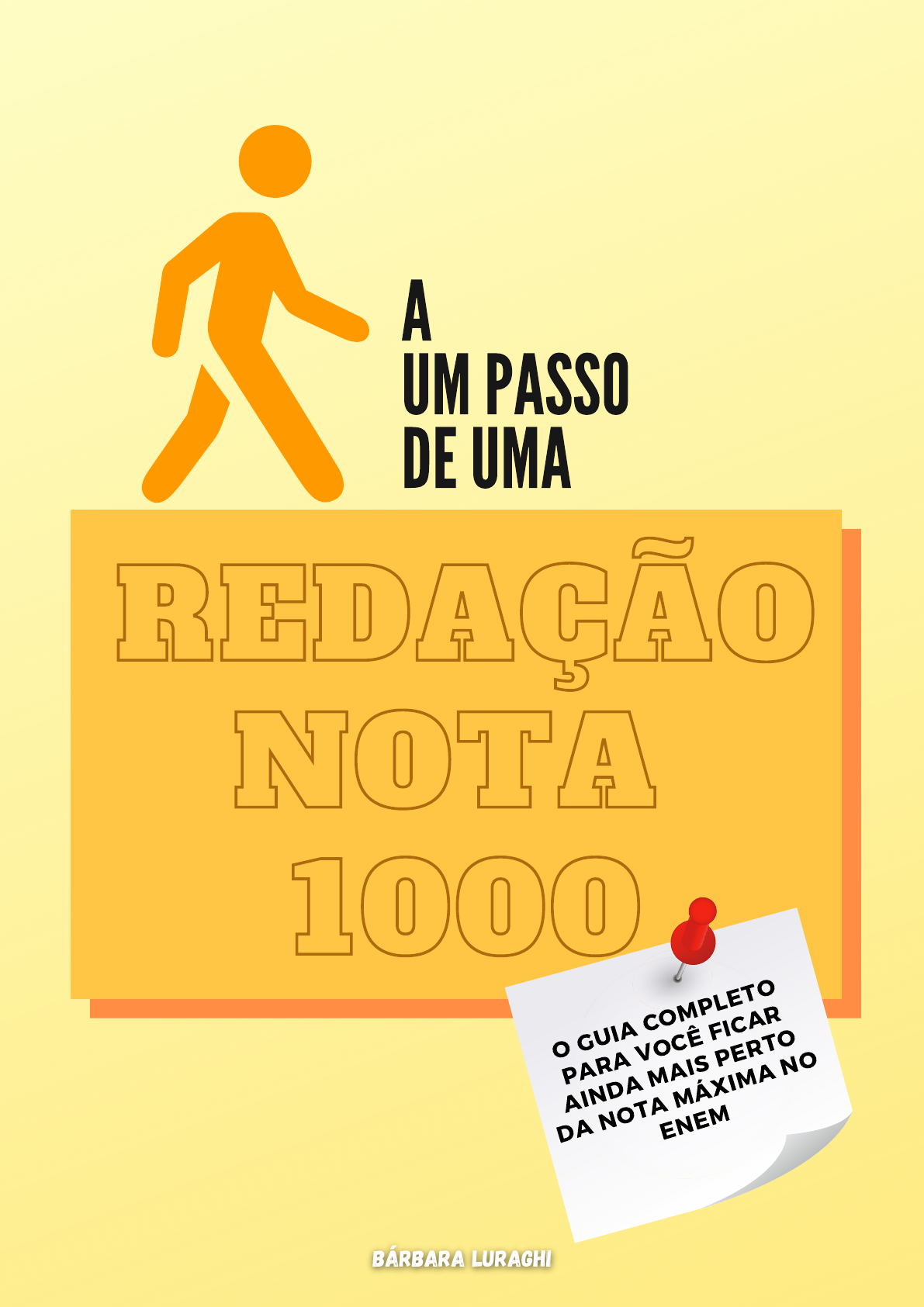 REDAÇÃOREDAÇÃOREDAÇÃO NOTANOTANOTA 100010001000 A UM PASSO DE UMA O GUIA CO MPLE TO PARA VO CÊ FIC AR AINDA MAIS PE RTO DA NOTA MÁXIM A NO ENEM Bárbara LuraghiBárbara Luraghi Critérios deCritérios de avaliaçãoavaliação Nessa competência você deverá estar atento às regras gramaticais de modo a garantir a fluidez do seu texto. É IMPORTANTE NÃO INSERIR NENHUM REGISTRO INFORMAL OU MARCA DE ORALIDADE NA REDAÇÃO, OK? COMPETÊNCIA 2: Compreender a proposta de redação e aplicar conceitos de várias áreas de conhecimento para desenvolver o tema, dentro dos limites estruturais do texto dissertativo argumentativo. Essa competência avaliará se você compreendeu o tema que lhe foi pedido. Por isso, o corretor irá avaliar se você foi capaz de entender e desenvolver o tema em um texto dissertativo argumentativo. Você deverá expor o seu conhecimento sobre o assunto sem fugir do tema principal. PARA ISSO TENTE E X T R A P O L A R O TEMA E NÃO F U G I R DELE, OK? ALÉM DISSO, NÃO SE ESQUEÇA QUE É PROIBIDO A CÓPIA DE QUALQUER PARTE DA PROVA! Essa competência avalia a sua consistência argumentativa e a sua capacidade de persuasão. É na C3 que o corretor verifica se o texto é apenas uma dissertação ou se você coloca seu ponto de vista a fim de convencer o leitor. A REDAÇÃO DO ENEM É CORRIGIDA POR MEIO DE COMPETÊNCIAS.5 Demonstrar domínio da modalidade escrita e formal da língua portuguesa. COMPETÊNCIA 1: COMPETÊNCIA 3: Selecionar, relacionar, organizar e interpretar informações, fatos, opiniões e argumentos em defesa de um ponto de vista. A competência 5 exige de você a elaboração de uma proposta de intervenção para o problema abordado. Parece fácil, mas você não pode se esquecer que a proposta de intervenção deve possuir vínculo com a tese e ser coerente com os argumentos usados no seu texto. Essa competência vai cobrar de você a presença no texto de preposições, conjunções, advérbios e locuções adverbiais utilizados para fazer o link das ideias na sua redação. Esses recursos são essenciais para garantir a coesão textual! PARA GARANTIR ESSE ENCADEAMENTO DE IDEIAS, CAPRICHE NAS CONJUNÇÕES ENTRE OS PARÁGRAFOS! ASSIM, VOCÊ VAI DEMONSTRAR FLUIDEZ E CONHECIMENTO DO SEU TEXTO. A SUA PROPOSTA DEVE INCLUIR AÇÃO, AGENTE (QUEM REALIZARÁ A AÇÃO), MODO/MEIO, FINALIDADE E DETALHAMENTO. É AQUI QUE VOCÊ TEM QUE DEIXAR A SUA OPINIÃO CONCRETA! NADA DE FICAR EM CIMA DO MURO! COMPETÊNCIA 4: Demonstrar conhecimento dos mecanismos linguísticos necessários para a construção da argumentação. COMPETÊNCIA 5: Elaborar proposta de intervenção para o problema abordado, respeitando os direitos humanos. A estrutura idealA estrutura ideal para uma redaçãopara uma redação ENEMENEM É importante você saber que a Redação do ENEM deve ser dividida em Introdução, Desenvolvimento e Conclusão. Porém, a realização de um texto dissertativo argumentativo vai bem mais além do que isso, possuindo tópicos fundamentais para a estruturação correta de uma redação. Abaixo, vou colocar para você o modelo mais adequado de se fazer um texto nota 1000. ATENÇÃO! Adequado não significa o ÚNICO modo de ser feito, mas o mais encontrado nas redações com as melhores notas. É aqui que você irá apresentar o tema da redação (aquele que será discutido em todo o texto) e também demarcar a sua tese, colocando a sua opinião sobre o assunto e introduzindo de maneira objetiva os argumentos que serão discutidos nos próximos desenvolvimentos. Tente escolher aproximadamente 2 argumentos, para que você possa discutir cada um em um parágrafo de maneira bem detalhada! Caso você escolha mais de 2 e não conseguir desenvolvê-los por completo durante a redação, isso pode te prejudicar consideravelmente. Portanto, escolha 2 e CAPRICHE na explicação de cada um! No desenvolvimento é essencial que você construa argumentos sólidos sobre o tema, explique o que ocorre, o porquê ocorre, consequências, dê exemplos, tudo que possa sustentar o argumento que você escolheu! MAS SEM ENROLAÇÃO! N ã o j o g u e i n f o r m a ç õ e s a v u l s a s s e m u m a c o m p r o v a ç ã o o u e x p l i c a ç ã o c o r r e t a ! Seja coerente e nunca fique em cima do muro! Ah, e lembre-se de fazer tudo de maneira bem detalhada! Não se esqueça, também, que é importante a colocação de um tópico frasal em cada desenvolvimento (de preferência no início do parágrafo). O tópico frasal é responsável por marcar a ideia/argumento a ser defendido naquele desenvolvimento INTRODUÇÃO: DESENVOLVIMENTO: CONCLUSÃO: Como o próprio nome diz, é aqui que você conclui o seu texto! Mas calma, não é tão fácil assim! A conclusão PRECISA estar relacionada com todas as ideias que foram discutidas no texto, nada de inventar outros argumentos e assuntos que você nunca citou! Retome o seu ponto de vista e apresente uma solução para os problemas, a famosa proposta de intervenção! Coloque QUEM irá realizar a AÇÃO proposta, POR MEIO de que, com que FINALIDADE. Tudo isso mais o DETALHAMENTO. CALMA LÁ... NÃO VAI PASSANDO PARA A OUTRA PÁGINA NÃO! EU TENHO UMA SURPRESINHA PARA VOCÊ! Muita gente me procura dizendo que mesmo sabendo algumas coisas não sabe COMO começar uma redação! POR ISSO, eu fiz um vídeozinho com algumas dicas que vão te ajudar de vez a conseguir começar uma redação! Quer saber mais, aponta seu celular para o QR CODE e aproveite! Depois me conta se gostou! E Ah, já ia esquecendo! O link é SEU, ta? Não compartilha com NINGUÉM! Minha evolução eMinha evolução e dicas de como fazerdicas de como fazer uma redaçãouma redação nota 1000nota 1000 Eu sempre amei escrever, é verdade! Mas existe uma certa e grande diferença entre gostar de colocar palavras em um papel e saber escrever uma redação estilo ENEM, afinal, não é apenas juntar diversas palavras bonitas e pronto, vai muito além disso. Sim, demorou um p