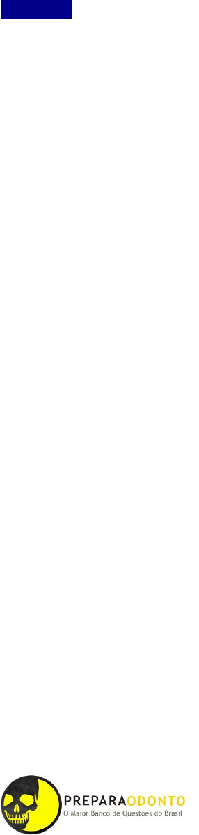 338 ( ) À direção municipal do Sistema de Saúde (SUS) compete executar a vigilância sanitária de portos, aeroportos e fronteiras. Assinale a alternativa que indica a sequência correta, de cima para baixo. a. ( ) V • V • V • V b. ( ) F • V • F • F c. ( ) V • F • V • F d. ( ) F • F • F • F e. ( ) V • F • F • F GABARITO: 1C 2A 3C 4B 5E 6B 7D 8A 9D 10E BUCOMAXILOFACIAL/ CONCURSO 21) São consideradas intervenções de urgências odontológicas e que necessitam de um pronto atendimento apesar de não fornecer risco iminente de morte, as seguintes situações, EXCETO: a) Alveolite; b) Abscesso Dentoalveolar; c) Luxação Temporomandibular; d) Hiperventilação. 22) Lesões proliferativas não neoplásicas constituem um grupo de lesões que podem ocorrer no complexo estomatognático com características proliferativas, natureza inflamatória e sede periodontal. Qual das seguintes lesões citadas a seguir apresentam aspectos clínicos: lesão pediculada ou séssil, localizado em gengiva ou processo alveolar, coloração vermelha ou purpúrea e comumente ulcerada, acentuado potencial de crescimento, erosão óssea subjacente. Achados histopatológicos intensa celuraridade, infiltrado inflamatório crônico inespecífico e células multinucleadas. Atribuem-se como possíveis agentes etiológicos: trauma ou irritação local. Radiograficamente observam-se áreas nítidas de envolvimento, restringindose à observação de discretas áreas de reabsorção óssea em forma de taça. a) Granuloma Piogênico; b) Hiperplasia Fibrosa Inflamatória; c) Granuloma Periférico de Células Gigantes; d) Fibroma Traumático. 23) As comunicações buco-sinusais comumente ocorrem como complicação de exodontia de dentes superiores, devido sua proximidade com seio maxilar. Há, outros fatores etiológicos envolvidos tais como: traumatismo gerado pelo uso inadequado de instrumentos, destruição do seio por lesões periapicais e remoção de cistos e/ou tumores do palato ou do seio maxilar, sequelas da radioterapia como osteoradionecrose e fístula decorrente de tratamento deficiente para sinusites. Quanto ao tratamento desta comunicação é CORRETO informar: a) O retalho bucal deslizante consiste no procedimento mais comum e simples, porém esse tipo de tratamento pode provocar perda da profundidade do sulco vestibular e diminuição da gengiva inserida; b) O retalho palatino deslizante apresenta como desvantagem uma menor espessura e irrigação, desconforto e dor na região de tecido ósseo exposto, além de aumentar o risco de infecção; c) A utilização do Corpo Adiposo Bucal possibilita características favoráveis para reconstrução de defeitos intraorais, especialmente na região anterior da maxila devido sua localização anatômica e suprimento sanguíneo; d) O Tratamento farmacológico deve compreender a prescrição obrigatória de antimicrobianos de largo espectro, analgésicos opióideos e glicorticóide até a remoção completa da sutura. 24) As órbitas são dois espaços simétricos entre o esqueleto facial e a base do crânio, descritas como forma de pêra ou em pirâmide. Quais estruturas ósseas formam o soalho da órbita: a) Pelo osso frontal, pela asa menor do esfenoide e o processo orbitário do osso palatino; b) Pela superfície orbitária da asa maior do esfenóide e face orbital do osso zigomático; c) Osso lacrimal, pela lâmina orbital do etmoide e o processo orbitário do osso palatino; d) Superfície orbitária da maxila, a superfície orbitária do osso zigomático e o processo orbitário do osso palatino. 25) Fraturas intra-sinusais (blowout): ocorrem após traumas na região orbitária ou do arco zigomático. Os fragmentos ósseos e tecidos moles invaginam-se para o seio maxilar, ficando suspensos pela mucosa sinusal ou pelo próprio periósteo. Fraturas intra-orbitárias (blow-in) são resultantes de grandes impactos sobre o zigomático no sentido caudo-cranial Apresentam como sintomatologia destes tipos de fraturas, EXCETO: 339 a) Diplopia, decorrente do aprisionamento da musculatura extrínseca do globo ocular (reto e oblíquo inferiores) pelo traço de fratura; b) Caso haja envolvimento nasal pode haver obstrução nasal bilateral, epistaxe bilateral e deformação da pirâmide nasal e drenagem purulenta; c) Exoftalmia ou enoftalmia, de acordo com a elevação ou abaixamento do assoalho de órbita, respectivamente; d) Perda da visão, em virtude de trauma sobre o nervo óptico ou canal óptico, aumento da pressão intraorbitária, hemorragia retro-bulbar compressão do feixe nervoso, laceração, isquemia. 26) O paciente portador de traumatismo facial pode apresentar lesões de tecidos moles de vários tipos de acordo com o agente etiológico. São considerados agentes etiológicos do tipo cortante, contundente e perfurocontundente respectivamente: a) Estilhaços, estilete e pedra; b) Navalha, punhal e madeira; c) Faca, barra de ferro e projétil de arma de fogo; d) Caco de vidro, pedra e punhal. 27) O tratamento das feridas vai depender do tipo de ferimento, do tempo decorrido, do grau de contaminação, da idade do paciente e do seu estado geral. Coloque os procedimentos em ordem cronológica crescentes para um tratamento de uma ferida cortante: A Sutura B Limpeza da Ferida C Debridamento D Hemostasia E Curativo F Anestesia G Remoção de Corpo Estranho a) I – B; II – F; III – G; IV – C; V – D; VI – A e VII – E; b) I – G; II – D; III – B; IV – C; V – F; VI – A e VII – E; c) I – B; II – E; III – C; IV – G; V – D; VI – A e VII – F; d) I – B; II – D; III – G; IV – A; V – C; VI – F e VII – E. 28) Kanakion® MM é uma solução injetável de vitamina K1 sintética que é essencial para a formação dos chamados fatores de coagulação e pode ser utilizado para o controle hemostático. Quais os fatores de coagulação que são dependentes a vitamina K? a) Fibrina, Protrombina, fator II; 