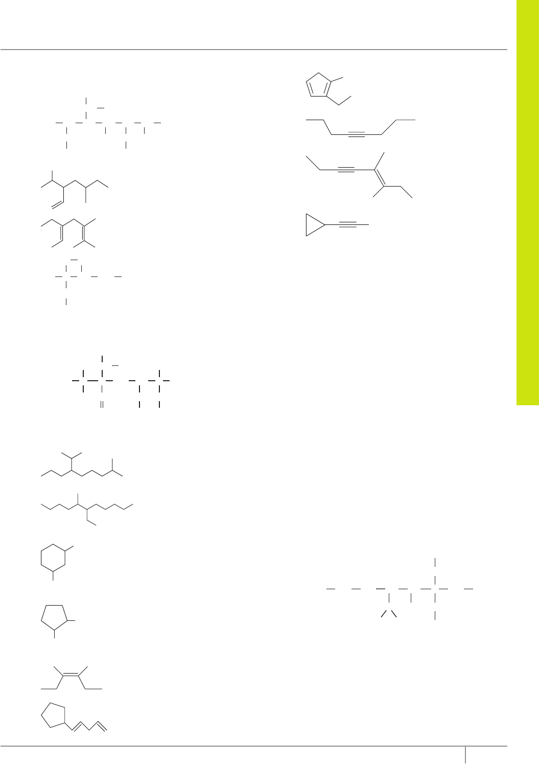 Q U ÍM IC A 81Editora Bernoulli 10. DÊ o nome dos compostos a seguir: A) CH3 CH3 CH3 CH3 CH2 CH CH CH CH CHCHH3C CH3 CH2CH3 CH3 B) C) D) CH2 CH3CH3 CH3 CH2 CH2 CHC H2C 11. DÊ o nome oficial para o composto: CH3 CH3 CH3 CH2 CH2 CH3 CH3 CH2 CH3 CH CH CC CH CH3C CH2 CH3 CH3 12. DÊ o nome sistemático dos seguintes compostos: A) B) C) CH2CH3 CH3 D) CH3 CH3 E) F) G) H) I) J) 13. FORNEÇA as fórmulas estruturais dos seguintes compostos: A) 3-etilpentano B) 3-etil-3-isopropil-2,5-dimetilexano C) 5-butil-4-etil-4,6,6-trimetilnonano D) 3-ciclopentil-3-etilexano E) 2,2,4,4,5,7-hexametiloctano F) isopropilciclopentano G) 2,3-dimetilpent-2-eno H) pent-1-eno I) 4-metilpenta-1,3-dieno J) 3-etil-4-metilcicloexeno K) hex-1-ino L) 3-metilpent-1-ino M) 10-etil-9-metiltrideca-1,4,7,12-tetraino N) 3-butil-4-propilexa-1,3-dien-5-ino 14. (Cesgranrio) Assinale a única afirmativa CORRETA, com relação ao composto que apresenta a estrutura a seguir: CH3 CH CH3 CH2 CH2 CH3 CH3 C CH2CH2H3C H3C CH3 CH2 CHCH O composto A) é um alqueno. B) apresenta um radical n-propila ligado ao carbono 4. C) apresenta 2 radicais propila. D) apresenta 3 radicais etila. E) apresenta 2 radicais etila. Hidrocarbonetos alifáticos 82 Coleção Estudo 15. (Mackenzie-SP) A união dos radicais vinil e isobutil origina um composto cuja fórmula molecular é A) C6H10. B) C6H12. C) C6H6. D) C6H14. E) C5H12. 16. DÊ o nome oficial do composto resultante da união dos radicais A) vinil e isopropil. B) isobutil e sec-butil. C) terc-butil e isobutil. D) vinil e isobutil. E) sec-butil e n-propil. 17. (UFMG) O rótulo de um aerossol comercial para lubrificação e remoção de ferrugem contém estas informações: Composição: óleos parafínicos (compostos de fórmula CnH2n+2) dissolvidos em hidrocarbonetos alifáticos; mistura de propano e butano, usada como gás propelente. Informações úteis: • Produto inofensivo para a camada de ozônio. • Evite perfurar a lata, mesmo quando vazia. • Evite usar perto de fogo. • Lave as mãos, com água e sabão, após usar este produto. Considerando-se essas informações, é INCORRETO afirmar que o aerossol A) contém gases em alta pressão. B) contém substâncias inflamáveis. C) contém substâncias solúveis em água. D) não contém clorofluorcarbonos. 18. (Mackenzie-SP) Líquido escuro formado por imenso número de compostos, encontrado na crosta terrestre, em geral sobre depósitos subterrâneos de água salgada, o que sugere a sua origem marinha. Trata-se de A) calcário. B) petróleo. C) gasolina. D) xisto betuminoso. E) álcool. 19. (UFJF-MG–2010) Leia, atentamente, as afirmativas a seguir: I. O petróleo é um recurso natural renovável e esgotável, encontrado em jazidas que se formaram ao longo de milhões de anos, através de complexas transformações químicas que ocorreram com restos de organismos acumulados no fundo de antigos mares. II. A importância do petróleo se deve ao fato de ele ser grande fonte de combustíveis e de matérias-primas industriais. III. Além dos hidrocarbonetos, há, no petróleo, em pequenas quantidades, substâncias contendo nitrogênio, oxigênio e enxofre. Marque a alternativa CORRETA. A) As afirmativas I e II são verdadeiras. B) As afirmativas I e III são verdadeiras. C) As afirmativas II e III são verdadeiras. D) As afirmativas I , II e III são verdadeiras. E) Apenas a afirmativa II é verdadeira. 20. Dentro dos conceitos existentes em Química Orgânica, é INCORRETO afirmar: A) A figura geométrica que melhor representa a estrutura do metano é um tetraedro regular. B) A fórmula geral dos alcenos é CnH2n. C) A estrutura a seguir classifica-se como alcano de cadeia saturada e alicíclica. CH CH3 CH3 H3C D) Não existe o composto 2-metil-2-pentino. E) O 2-metilbutano não apresenta átomos de carbono assimétrico. SEÇÃO ENEM 01. O vazamento de petróleo da Refinaria Duque de Caxias, o maior acidente ecológico da história brasileira, faz surgir um novo tipo de atividade no mangue. Todos se lançam em meio à lama negra em busca de animais vivos ou mortos. A Petrobras paga por eles de R$ 5,00 a R$ 10,00. JORNAL DA COMUNIDADE, 27 jan. de 2000. Frente D Módulo 05 Q U ÍM IC A 83Editora Bernoulli CERINO. Jornal da Comunidade, 27 jan. de 2000. Com base no texto, na charge e em conhecimentos químicos, na situação em questão A) os animais resgatados com vida, bem como o corpo das mulheres que faziam top less, podem ser limpos com água, pois a água é miscível em óleo. B) o óleo é menos denso do que a água e por isso flutua sobre a mesma. Um dos métodos utilizados para tirar o excesso de óleo consiste em isolar a mancha com protetores infláveis e aspirar a camada superficial. No entanto, o isolamento do óleo da água do mar pode ser realizado por decantação ou por filtração. C) o petróleo é uma mistura homogênea de uma série de compostos orgânicos, entre eles o iso-octano, um dos mais importantes componentes da gasolina: CH3 CH2 CH3 CH CH3 CH3 C CH3 Sua cadeia carbônica é aberta, saturada, homogênea e ramificada e o seu nome oficial é 2,2,4-metil-pentano. D) a molécula de iso-octano é formada por um carbono quaternário, um terciário, um secundário e cinco carbonos primários, todos tetragonais planos. E) por causa da demora na tomada de providências para diminuir a mancha de óleo na Baía de Guanabara, os componentes desse óleo receberam energia térmica do Sol e uma parte desses componentes acabou sofrendo vaporização espontânea. 02. A relativa biodegradabilidade dos hidrocarbonetos tem sido reportada (em ordem de decréscimo de degradabilidade): alcanos lineares (C10 a C19), gases (C2 a C4), alcanos (C5 a C9), alcanos ramificados com até 12 carbonos, alcenos (C3 a C11), alcenos ramificados, aromáticos e cicloalcanos. Disponível em: . Acesso em: 14 fev. 2011 Um posto de combustíveis apresentou um vazamento de gasolina que contaminou o solo de suas imediações. Com o objetivo de biorremediar os 
