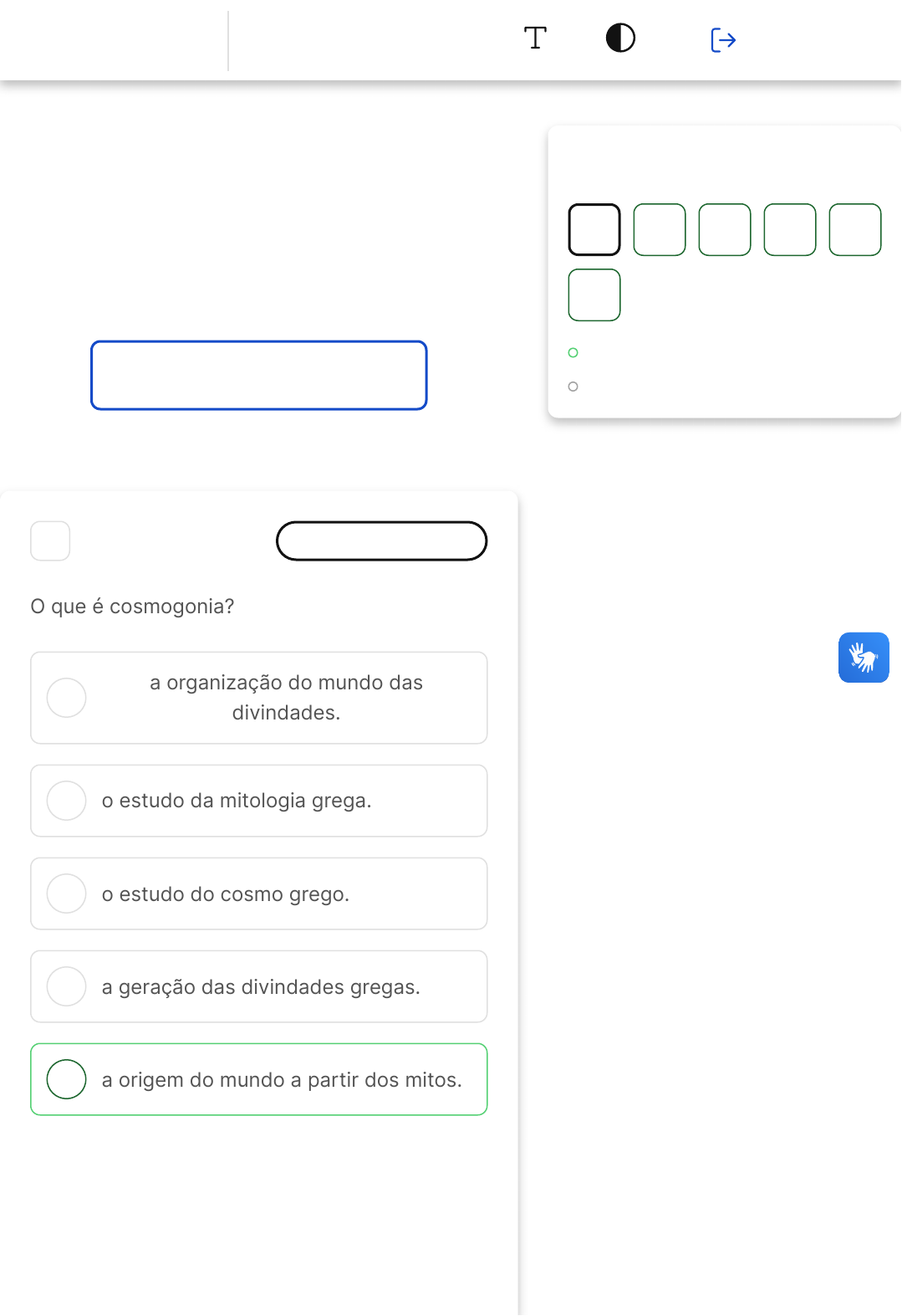 Você acertou 6 de 6 questões Verifique o seu desempenho e continue treinando! Você pode refazer o exercício quantas vezes quiser. Verificar Desempenho A B C D E 1 Marcar para revisão O que é cosmogonia? a organização do mundo das divindades. o estudo da mitologia grega. o estudo do cosmo grego. a geração das divindades gregas. a origem do mundo a partir dos mitos. Questão 1 de 6 Corretas �6� Em branco �0� 1 2 3 4 5 6 Exercicio Conteúdo Sair A B C D E Resposta correta Parabéns, você selecionou a alternativa correta. Confira o gabarito comentado! Gabarito Comentado Cosmogonia é a especulação sobre a formação do cosmos a partir de mitos. Característica dos pré-socráticos. 2 Marcar para revisão A Teologia cristã é mais que uma opção fundamental pelo Logos, é o encontro e o diálogo com Ele, buscando compreender e expressar em um discurso participativo, de linguagem acadêmica. Qual é seu princípio enquanto campo de conhecimento? primado da metodologia científica. universalização da fé. ordenação do visível ao Invisível. conceitos de verdade e justiça relativizados. imprecisão dos conceitos teológicos. Resposta correta A B C D E Parabéns, você selecionou a alternativa correta. Confira o gabarito comentado! Gabarito Comentado Sendo Deus a causa de todas as coisas, o visível é ordenado segundo o Invisível. O cristão, enquanto participante do Ser, é sua presença no mundo através do seu testemunho, ordenando as coisas ao bem comum e ao fim que lhe é próprio. ----- 3 Marcar para revisão Os gregos desenvolveram a filosofia na busca racional da matéria prima de todas as coisas. Qual o princípio imaterial para Platão? a ideia. a matéria. a água. o ar. o átomo. Resposta correta Parabéns, você selecionou a alternativa correta. Confira o A B C D E gabarito comentado! Gabarito Comentado Para Platão, o mundo é formado por um princípio material (a matéria) e outro imaterial (a ideia). A ideia é o principal, pois constitui a forma real da coisa. 4 Marcar para revisão Qual parte da Teologia Sistemática que estuda a doutrina das Últimas Coisas. Angeologia Soteriologia Mariologia Escatologia Cristologia Resposta correta Parabéns, você selecionou a alternativa correta. Confira o gabarito comentado! Gabarito Comentado Escatologia é a parte da Teologia Sistemática que estuda a doutrina das A B C D E Últimas Coisas. ----- 5 Marcar para revisão De acordo com o evangelho de Mateus, cap.9, ver. 35, pode-se considerar como uma síntese ou resumo do ministério de Jesus Cristo na Galileia e na Judeia, a seguinte tríade: ensino nas praias, pregação do evangelho do reino e cura de toda sorte de doenças e enfermidades. ensino nas sinagogas, pregação nas casas e cura de toda sorte de doenças e enfermidades. ensino nas sinagogas, pregação do evangelho do reino e cura de lunáticos e endemoninhados. ensino nas praias, pregação do evangelho do reino e cura de lunáticos e endemoninhados. ensino nas sinagogas, pregação do evangelho do reino e cura de toda sorte de doenças e enfermidades. Resposta correta Parabéns, você selecionou a alternativa correta. Confira o gabarito comentado! A B C D E Gabarito Comentado O evangelho de Mateus, cap.9, ver. 35, diz que Jesus Cristo percorreu toda a Galileia, ensinando nas sinagogas, pregando o evangelho do reino e curando toda sorte de doenças e enfermidades. 6 Marcar para revisão Leia o texto abaixo. "Houve um forte estimulo a que se voltasse ao estudo da bíblia nos textos originais, o sentido quádruplo da Escritura foi gradualmente abandonado e estabelecido o princípio de que a Bíblia tinha apenas um sentido, a bíblia era crida como a Palavra inspirada e infalível de Deus, o caráter essencial de sua exegese era o resultado de dois princípios fundamentais" �Berkhof, 2013�. A que período da história dos princípios hermenêuticos na Igreja Cristã o texto acima se refere? Período Patrístico. Período Medieval. Período do Confessionalismo. Período Histórico-Crítico. Período da Reforma. Resposta correta Parabéns, você selecionou a alternativa correta. Confira o gabarito comentado! Gabarito Comentado O texto acima se refere ao período da Reforma, pois foi nesse período que houve um forte estímulo a que se voltasse ao estudo da bíblia nos textos originais, o sentido quádruplo da Escritura foi gradualmente abandonado e estabelecido o princípio de que a Bíblia tinha apenas um sentido, a bíblia era crida como a Palavra inspirada e infalível de Deus, o caráter essencial de sua exegese era o resultado de dois princípios fundamentais. ----- Você acertou 4 de 4 questões Verifique o seu desempenho e continue treinando! Você pode refazer o exercício quantas vezes quiser. Verificar Desempenho A B C 1 Marcar para revisão O termo Filho de Deus é comum em duas correntes da antiguidade, a israelita e a romana, encontrando-se de modo próprio no cristianismo. Como Jesus é compreendido nesta expressão, Filho de Deus? escolhido pelo pai para governar seu povo. demiurgo com funções políticas, como perfil mitológico. um homem que pretende associar a si um poder universal. D E A B C em sua intimidade de relação entre homem e Deus. o rei entronizado para governar o mundo. Resposta correta Parabéns, você selecionou a alternativa correta. Confira o gabarito comentado! Gabarito Comentado De naturezas humana e divina, Jesus é o Filho que o Pai enviou para governar os corações humanos, formando e atraindo a si uma nova humanidade, configurada na intimidade filial. 2 Marcar para revisão Qual heresia que dizia que Cristo possuía um corpo humano, mas não uma mente ou um espírito humano; Eutiquianismo apolinarismo Ebionismo Exercicio Conteúdo Sair D E Eutiquianismo Docetismo Resposta correta Parabéns, você selecionou a alternativa correta. Confira o gabarito comentado! Gabarito Comentado O apolinarismo. Cristo possuía um corpo humano, mas não uma mente ou um esp