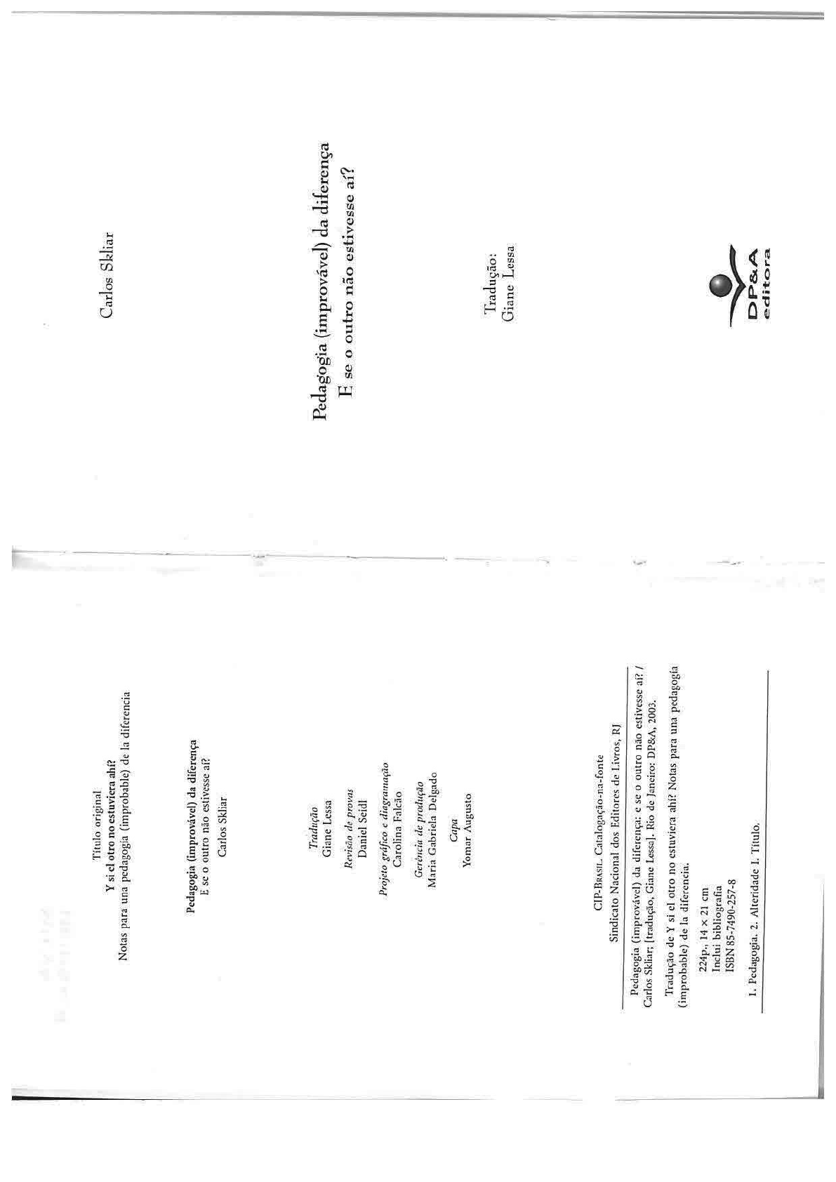 Título original Carlos Skliar Y si el otro no estuviera Notas para una pedagogía (improbable) de la diferencia Pedagogia (improvável) da diferença E se o outro não estivesse Carlos Skliar Tradução Pedagogia da diferença Giane Lessa E se outro não estivesse Revisão de provas Daniel Seidl Projeto gráfico e diagramação Carolina Falcão Gerência de produção Maria Gabriela Delgado Capa Yomar Augusto Tradução: Giane Lessa CIP-BRASIL. Catalogação-na-fonte Sindicato Nacional dos Editores de Livros, RJ Pedagogia (improvável) da diferença: e se o outro não estivesse / Carlos Skliar; Giane Lessa]. Rio de Janeiro: DP&A, 2003. Tradução de Y si el otro no estuviera Notas para una pedagogía (improbable) de la diferencia. 224p., 14 21 cm Inclui bibliografia ISBN 85-7490-257-8 DP&A Pedagogia. 2. Alteridade I. editora150 Pedagogia (improvavel) da diferença termina com sua própria essência, se retorce no nada e, como bem diz Mèlich (1998, p. 155), "acaba reduzindo-se a cinzas". CAPÍTULO IV E é aqui onde a política, a filosofia e a poética da diferença se reúnem, ainda que dispersas, ainda que dissímeis: a única aceitação possível que cabe é a de aceitar o outro na soberania de sua diferença, Sobre a anormalidade e anormal notas para no insondável de seu mistério, em sua distância, em seu ser-sempre um julgamento (voraz) da normalidade irredutível. E talvez seja aqui o caso de abandonar de uma vez e para sempre a idéia de que o outro é, possa ser, deva ser, um outro concreto, um É uma banalidade dizer que jamais existimos no outro específico, um outro sempre o mesmo. Daí que Deleuze utilize singular. Estamos rodeados de seres e de coisas com a expressão outrem e já não outro para dizer uma outra coisa bem os quais mantemos relações. Por meio da visão, por diferente, para se afastar desse outro que acaba sendo o outro maléfico, meio do tato, por meio da simpatia, por meio do a nossa invenção maléfica e/ou o nosso desesperado chamado à relação trabalho em comum, estamos com os outros. Todas com o outro. o outrem não nos sugere ninguém especificamente essas relações são transitivas. Toco um objeto, vejo o falando, ou seja: outro; mas eu não sou o Emmanuel Lévinas Que o Outrem, propriamente falando, não seja ninguém, nem você, nem eu, significa que ele é uma estrutura que se encontra efetuada somente por termos variáveis nos diferentes mundos de percepção E mesmo que seja possível que cada um de nós ou eu para você no seu, você para mim no meu. Nem mesmo basta ver cada uma de nós ao menos produzamos sempre em outrem uma estrutura particular ou específica do mundo perceptivo com nossa presença alguma perturbação que altera a em geral; de fato, é uma estrutura que funda e assegura todo o serenidade ou a dos demais, nada há funcionamento deste mundo em seu conjunto. É que as noções de tão perturbador como aquilo que a cada um necessárias à descrição deste mundo [...] permaneceriam vazias e lembra seus próprios defeitos, suas próprias inaplicáveis se Outrem não estivesse aí, exprimindo mundos possíveis limitações, suas próprias mortes; é por isso que as (DELEUZE, 1988, p. 327). crianças e os jovens perturbam os adultos; as mulheres, os homens; os fracos, os fortes; os pobres, os ricos; os deficientes, os eficientes; os loucos, os cordatos; os estranhos, os nativos [...] Nuria Pérez de Lara I E se o anormal fosse realmente anormal, não existiria. E ainda que seja uma contradição com o que acabo de expressar no final do capítulo anterior, em relação ao outrem, gostaria aqui de me referir a uma invenção de alteridade específica, pontual. DP&A editora152 Pedagogia da diferença Sobre a anormalidade e o anormal 153 Pois há um outro, em meio a nossas temporalidades e a nossas sexualidade tão única e determinada quanto constante, uma espacialidades, que foi e ainda é inventado, produzido, fabricado, aprendizagem veloz, curricular e consciente ainda que não em re)conhecido, olhado, representado e institucionalmente governado demasia uma língua capaz de ser só monolíngüe, e de dizer aquilo em termos daquilo que se poderia chamar um outro deficiente, uma que todos querem ouvir. alteridade deficiente, ou então, ainda que não seja o mesmo, um outro Esse outro corporifica a (idéia de uma) estilização incomensurável anormal, uma alteridade da mesmidade. Existe um outro que antes, durante e depois de tantas guerras, E tudo isso pensado como um movimento cênico que representa prisões, exércitos, escolas comuns e especiais, hospitais, religiões, o Paraíso. Paraíso da normalidade. A normalidade da mesmidade. fábricas, manicômios etc. foi e ainda é pensado, percebido e sentido E quanto mais a mesmidade olha cegamente somente para si mesma, como uma espécie de corpo amorfo e incontrolável, uma espécie de mais se torna hostil contra esse outro até deixá-lo mente obscura e selvagem, um movimento desigual e perigoso, uma E quanto mais a mesmidade escuta surdamente somente a si atenção para outro lugar, um comportamento que espreita, um tipo mesma, mais se torna cruel com esse outro até deixá-lo inerte. de linguagem de ausências, arritmias e sem-sentidos. E quanto mais a mesmidade se move ritmicamente em torno de Um outro cujo corpo, mente, comportamento, aprendizagem, si mesma, mais se faz hospitaleira com esse outro até fazê-lo atenção, mobilidade, sensação, percepção, sexualidade, pensamento, unicamente um hóspede; um hóspede imóvel; um hóspede hostilizado ouvidos, memória, olhos, pernas, sonhos, moral etc. parecem encarnar, pela norma. sobretudo e diante de tudo, nosso mais absoluto temor à incompletude, à incongruência, à ambivalência, à desordem, à imperfeição, ao A mesmidade que cria com placidez seus monstros e que, ao mesmo tempo, produz os antídotos necessários para matá-los, para inominável, ao dantesco. não vê-los, para ocultá-los. Um outro cujo to