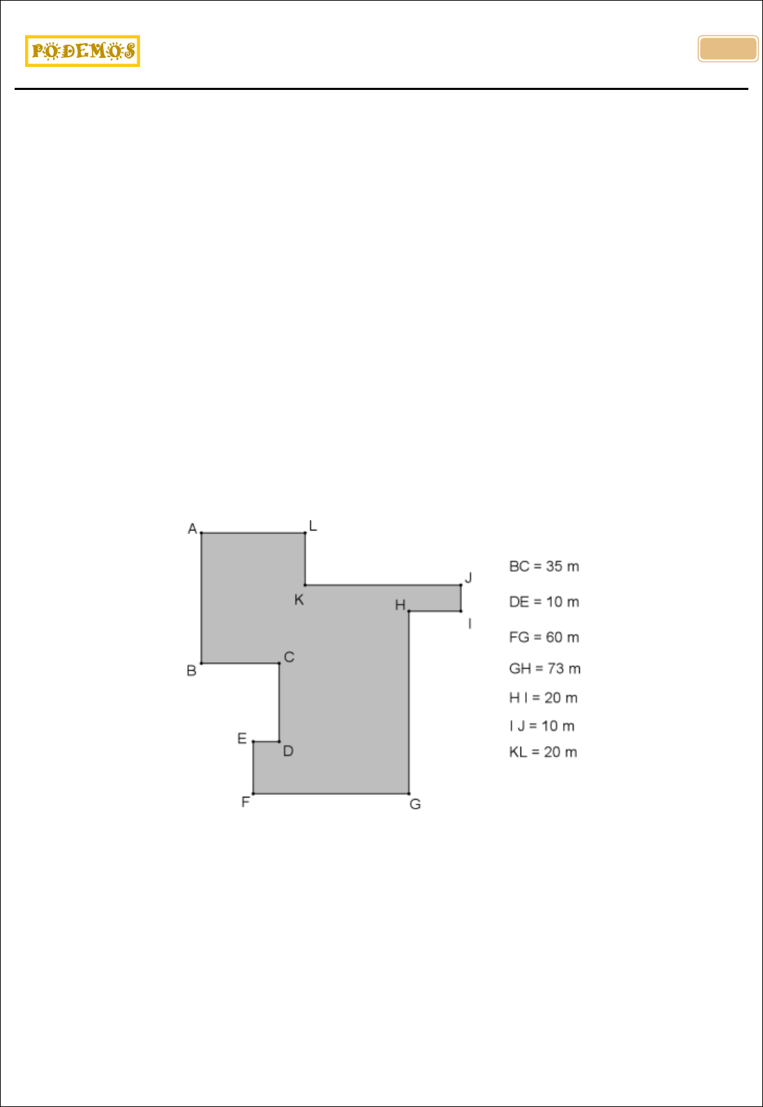 2009 - Banca COPESE/FGV) Na figura abaixo, todos os segmentos adjacentes são perpendiculares. As