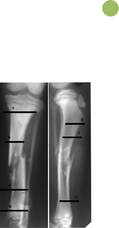 fragmento proximal e 2 pinos no plano medial e 1 crânio medial no