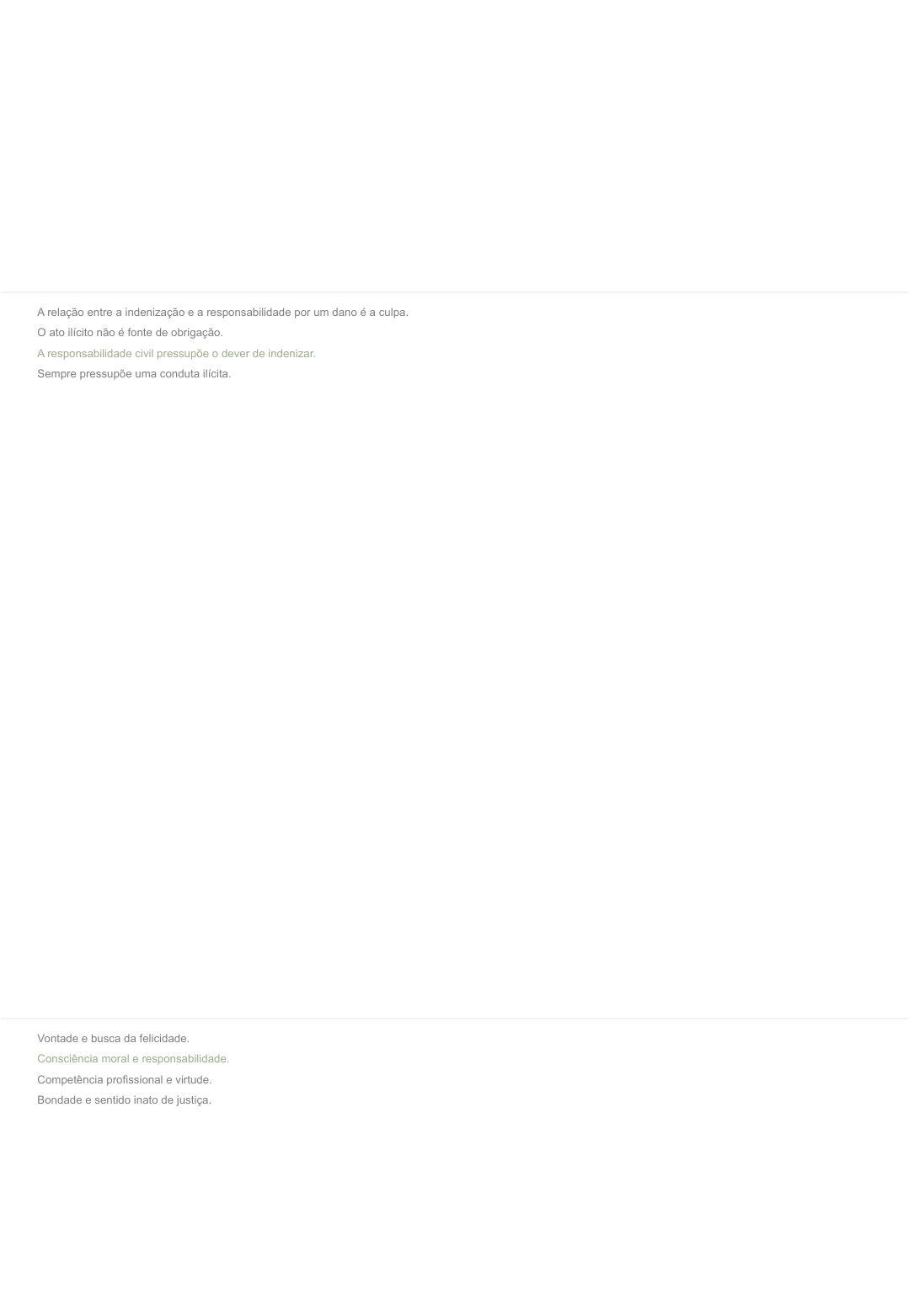 1. Sobre a obrigação de indenizar, é correto dizer: 2. "Para que haja conduta ética é preciso que a pessoa conheça a diferença entre bem e mal, certo e errado, permitido e proibido, virtude e vício. A pessoa não só conhece tais diferenças, mas também reconhece-se como capaz de julgar o valor dos atos e das condutas e de agir em conformidade com os valores morais, sendo por isso responsável por suas ações e sentimentos e pelas consequências do que faz e sente. Tem a capacidade para avaliar e pesar as motivações pessoais, as exigências feitas pela situação, as consequências para si e para os outros, a conformidade entre meios e fins, a obrigação de respeitar o estabelecido ou de transgredi-lo, se o estabelecido for imoral ou injusto." (CHAUÍ, Marilena. Convite à filosofia. São Paulo: Ática, 2000. Adaptado.) Com base no texto, assinale a alternativa que identifica corretamente condições indispensáveis para a conduta ética. 3. Toda produção humana consiste em criar condições para que o homem seja feliz. Todas as religiões, as filosofias de todos os tempos, as conquistas tecnológicas, as teorias científicas e toda a arte são criações humanas que procuram apresentar condições para a conquista da felicidade (Aristóteles, Ética a Nicômico). Nesse sentido, pode-se afirmar que: (Alternativa correta) A relação entre a indenização e a responsabilidade por um dano é a culpa. O ato ilícito não é fonte de obrigação. A responsabilidade civil pressupõe o dever de indenizar. Sempre pressupõe uma conduta ilícita. (Alternativa correta) Vontade e busca da felicidade. Consciência moral e responsabilidade. Competência profissional e virtude. Bondade e sentido inato de justiça. 13/02/2025, 07:56 ESTUDA+ - Sistema de Gestão de Aprendizagem https://lms.unimestre.com/lms/sala/6971837/sKtw8pIHQuZtqJ6O 1/4 4. Os quatro tipos de Cidadania Empresarial criados por Carrol são ordenados em forma de pirâmide, da base para o topo, em função dafrequência dentro da qual as organizações lidam com cada um dos aspectos em questão. Sabendo disso, assinale a alternativa que representa a ordem correta dos tipos de responsabilidade nas organizações. 5. A filosofia ocidental possui uma longa história e é dividida em grandes eras, não sendo uma delas a: 6. Uma empresa socialmente responsável é aquela que se preocupa com o bem-estar de seus funcionários e da comunidade, que propõe soluções proativas, fomentando o desenvolvimento social local e regional, além da sustentabilidade social. No entanto, para que uma organização chegue a um patamar de Gestão Social Cidadã - GSC, ela precisa passar por alguns estágios distintos relacionados à responsabilidade social. Analise a afirmação a seguir e assinale a alternativa que preenche corretamente as lacunas. O mais indicado é que as empresas iniciem os seus projetos de responsabilidade social empresarial pela ____________. Após as ações com o público___________ estarem formatadas, adequadas e em pleno funcionamento, é indicado que a organização passe a trabalhar a responsabilidade social __________. Muitas vezes, a empresa, por pressa de chegar ao terceiro estágio, inverte os papéis e inicia seu plano de responsabilidade social empresarial pela__________. 7. Apesar de muitas pessoas, e até mesmo organizações, ainda confundirem os conceitos de Filantropia e Responsabilidade Social, eles são muito distintos. Pensando no conceito de cada um, analise as afirmativas a seguir, supostamente vivenciadas dentro de uma organização e relacione cada uma delas ao conceito correto: I) Este ano o inverno será muito rigoroso. Vamos aderir à campanha do agasalho. (Alternativa correta)os valores são influenciados pelo tempo em decorrência das mudanças que ocorrem na sociedade. a moral e a ética são temporais e desenvolvem valores que permeiam as relações coletivas. os valores morais não são determinados pelas questões do cotidiano, tais como: religiões, conquistas tecnológicas e ciência. a ética está relacionada a normas de comportamentos que são estabelecidas para a vida em sociedade. (Alternativa correta) Responsabilidade filantrópica, responsabilidade ética, responsabilidade legal e responsabilidade econômica. Responsabilidade econômica, responsabilidade ética, responsabilidade legal e responsabilidade filantrópica. Responsabilidade econômica, responsabilidade legal, responsabilidade ética e responsabilidade filantrópica. Responsabilidade legal, responsabilidade econômica, responsabilidade ética e responsabilidade filantrópica. (Alternativa correta)Filosofia Inata. Filosofia Moderna. Filosofia Antiga. Filosofia Medieval. (Alternativa correta) responsabilidade social externa – interno – externa – responsabilidade social interna. responsabilidade social interna – interno – externa – cidadania empresarial cidadania empresarial – externo – interna – responsabilidade social interna. responsabilidade social interna – interno – externa – responsabilidade social externa. responsabilidade social externa – externo – interna – responsabilidade social interna. 13/02/2025, 07:56 ESTUDA+ - Sistema de Gestão de Aprendizagem https://lms.unimestre.com/lms/sala/6971837/sKtw8pIHQuZtqJ6O 2/4 II) Este mês tivemos um bom resultado nas vendas. Vamos doar 1% do lucro a uma entidade de apoio a crianças carentes. II) Pensar e cuidar do meio ambiente nos trará benefícios futuros. Vamos abolir o uso de copos plásticos na empresa e criar uma campanha para que cada funcionário traga a sua própria caneca. 8. O modelo ético mais atual que tem sido a base para fundamentar várias decisões é a ética relativista. Sobre ela, assinale a alternativa correta: 9. A ISO 26000 é uma norma que regulamenta, garante e promove boas práticas de gestão organizacional. Em relação a essa norma, que chegou ao Brasil no ano de 2010, é possível afirmar que: 10. A filosofia con