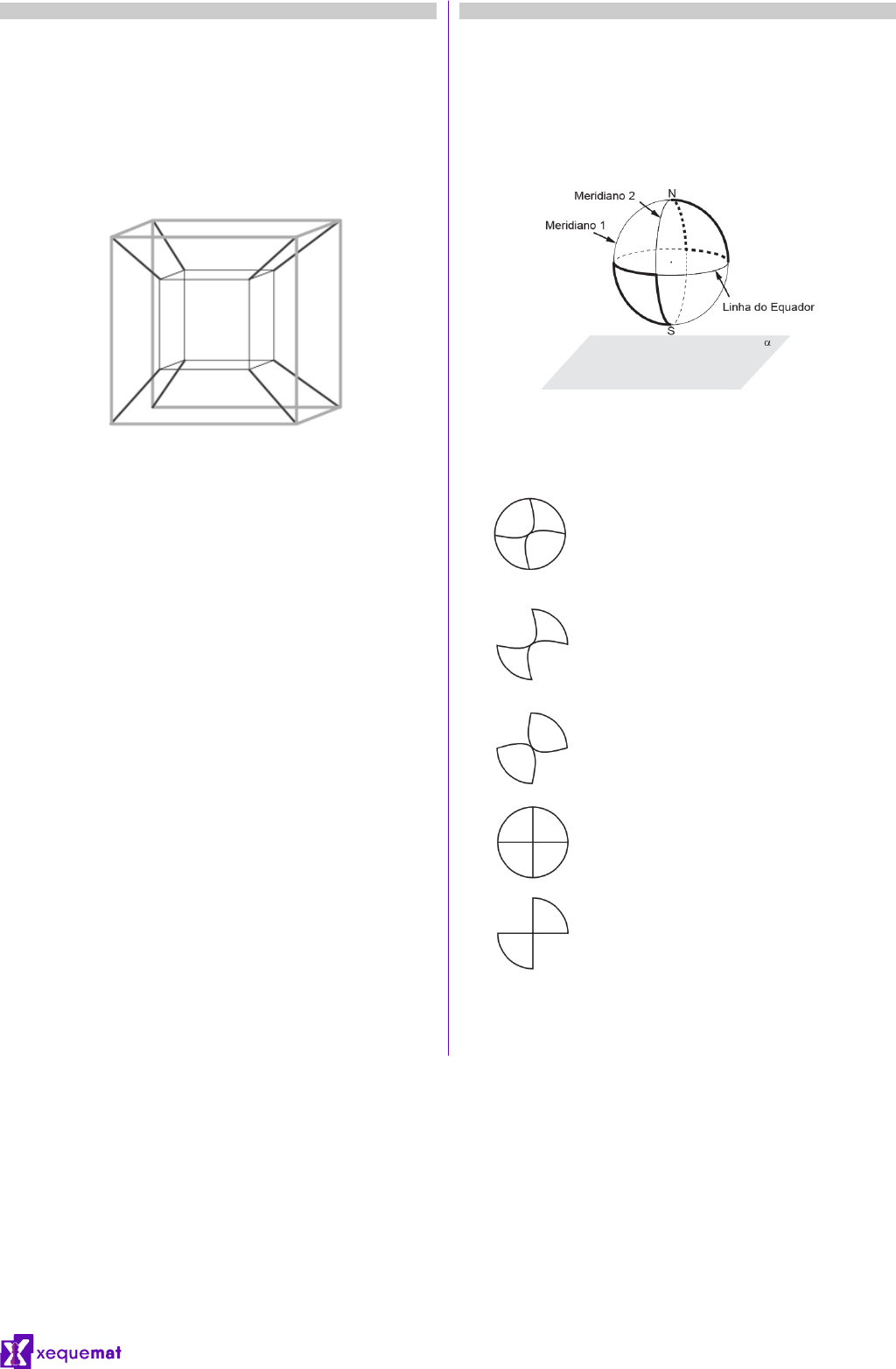 533Revisão - Geometria espacial QUESTÃO 23 Muitos brinquedos que frequentemente são encontrados em praças e parques públicos apresentam formatos de figuras geométricas bidimensionais e tridimensionais. Uma empresa foi contratada para desenvolver uma nova forma de brinquedo. A proposta apresentada pela empresa foi de uma estrutura formada apenas por hastes metálicas, conectadas umas às ouras, como apresentado na figura. As hastes de mesma tonalidade e espessura são congruentes. Com base na proposta apresentada, quantas figuras geométricas planas de cada tipo são formadas pela união das hastes? A 12 trapézios isósceles e 12 quadrados B 24 trapézios isósceles e 12 quadrados C 12 paralelogramos e 12 quadrados D 8 trapézios isósceles e 12 quadrados E 12 trapézios escalenos e 12 retângulos QUESTÃO 24 Na figura estão destacadas duas trajetórias sobre a superfície do globo terrestre, descritas ao se percorrer parte dos meridianos 1, 2 e da Linha do Equador, sendo que os meridianos 1 e 2 estão contidos em planos perpendiculares entre si. O plano α é paralelo ao que contém a Linha do Equador. A vista superior da projeção ortogonal sobre o plano α dessas duas trajetórias é A B C D E 534Revisão - Geometria espacial QUESTÃO 25 Um artista plástico esculpe uma escultura a partir de um bloco de madeira de lei, em etapas. Inicialmente, esculpe um cone reto com 36 cm de altura e diâmetro da base medindo 18cm. Em seguida, remove desse cone um cone menor, cujo diâmetro da base mede 6 cm, obtendo, assim, um tronco de cone, conforme ilustrado na figura. Em seguida, perfura esse tronco de cone, removendo um cilindro reto, de diâmetro 6cm, cujo eixo de simetria é o mesmo do cone original. Dessa forma, ao final, a escultura tem a forma de um tronco de cone com uma perfuração cilíndrica de base a base. O tipo de madeira utilizada para produzir essa escultura tem massa igual a 0,6g por centímetro cúbico de volume. Utilize 3 como aproximação para π. Qual é a massa, em grama, dessa escultura? A 1.198,8 B 1.296,0 C 1.360,8 D 4.665,6 E 4.860,0 535 Análise combinatória Caem em média 1,7 questões por ano e o nível médio de dificuldade é: Difícil Revisão - Análise combinatória QUESTÃO 1 Doze times se inscreveram em um torneio de futebol amador. O jogo de abertura do torneio foi escolhido da seguinte forma: primeiro foram sorteados 4 times para compor o Grupo A. Em seguida, entre os times do Grupo A, foram sorteados 2 times para realizar o jogo de abertura do torneio, sendo que o primeiro deles jogaria em seu próprio campo, e o segundo seria o time visitante. A quantidade total de escolhas possíveis para o Grupo A e a quantidade total de escolhas dos times do jogo de abertura podem ser calculadas através de A uma combinação e um arranjo, respectivamente B um arranjo e uma combinação, respectivamente C um arranjo e uma permutação, respectivamente D duas combinações E dois arranjos QUESTÃO 3 O diretor de uma escola convidou os 280 alunos de terceiro ano a participarem de uma brincadeira. Suponha que existem 5 objetos e 6 personagens numa casa de 9 cômodos; um dos personagens esconde um dos objetos em um dos cômodos da casa. O objetivo da brincadeira é adivinhar qual objeto foi escondido por qual personagem e em qual cômodo da casa o objeto foi escondido. Todos os alunos decidiram participar. A cada vez um aluno é sorteado e dá a sua resposta. As respostas devem ser sempre distintas das anteriores, e um mesmo aluno não pode ser sorteado mais de uma vez. Se a resposta do aluno estiver correta, ele é declarado vencedor e a brincadeira é encerrada. O diretor sabe que algum aluno acertará a resposta porque há A 10 alunos a mais do que possíveis respostas distintas B 20 alunos a mais do que possíveis respostas distintas C 119 alunos a mais do que possíveis respostas distintas D 260 alunos a mais do que possíveis respostas distintas E 270 alunos a mais do que possíveis respostas distintas QUESTÃO 2 Considere como um único conjunto as 8 crianças – 4 meninos e 4 meninas – personagens da tirinha. A partir desse conjunto, podem-se formar n grupos, não vazios, que apresentam um número igual de meninos e de meninas. A 45 B 56 C 69 D 81 E 100 536Revisão - Análise combinatória QUESTÃO 4 Um banco solicitou aos seus clientes a criação de uma senha pessoal de seis dígitos, formada somente por algarismos de 0 a 9, para acesso à conta corrente pela Internet. Entretanto, um especialista em sistemas de segurança eletrônica recomendou à direção do banco recadastrar seus usuários, solicitando, para cada um deles, a criação de uma nova senha com seis dígitos, permitindo agora o uso das 26 letras do alfabeto, além dos algarismos de 0 a 9. Nesse novo sistema, cada letra maiúscula era considerada distinta de sua versão minúscula. Além disso, era proibido o uso de outros tipos de caracteres. Uma forma de avaliar uma alteração no sistema de senhas é a verificação do coeficiente de melhora, que é a razão do novo número de possibilidades de senhas em relação ao antigo. O coeficiente de melhora da alteração recomendada é A 10 62 6 6 B ! ! 10 62 C ! ! ! ! 10 56 62 4 D 62!-10! E 626-106 QUESTÃO 6 Para cadastrar-se em um site, uma pessoa precisa escolher uma senha composta por quatro caracteres, sendo dois algarismos e duas letras (maiúsculas ou minúsculas). As letras e os algarismos podem estar em qualquer posição. Essa pessoa sabe que o alfabeto é composto por vinte e seis letras e que uma letra maiúscula difere da minúscula em uma senha. O número total de senhas possíveis para o cadastramento nesse site é dado por A 102•262 B 102•522 C ! !10 52 2 42 2: : D ! ! !10 26 2 2 42 2: : : E ! ! !10 52 2 2 42 2: : : QUESTÃO 7 Para acomodar a crescente quantidade de veículos, estuda-se mudar as placas, atualmente com três letras e quatro algarismos numéricos, para quatro letras e três algarismos numéricos, como est