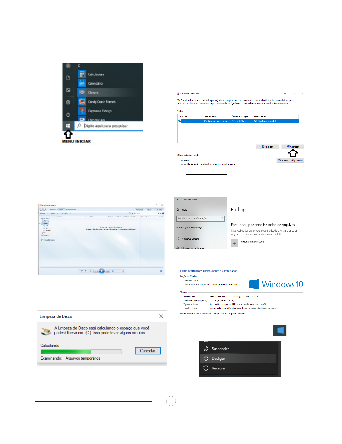 NOÇÕES DE INFORMÁTICA 118 Uso dos menus Programas e aplicativos e interação com o usuário Vamos separar esta interação do usuário por categoria para en- tendermos melhor as funções categorizadas. – Música e Vídeo: Temos o Media Player como player nativo para ouvir músicas e assistir vídeos. O Windows Media Player é uma excelente experiência de entretenimento, nele pode-se administrar bibliotecas de música, fotografia, vídeos no seu computador, copiar CDs, criar playlists e etc., isso também é válido para o media center. – Ferramentas do sistema • A limpeza de disco é uma ferramenta importante, pois o pró- prio Windows sugere arquivos inúteis e podemos simplesmente confirmar sua exclusão. • O desfragmentador de disco é uma ferramenta muito impor- tante, pois conforme vamos utilizando o computador os arquivos ficam internamente desorganizados, isto faz que o computador fi- que lento. Utilizando o desfragmentador o Windows se reorganiza internamente tornando o computador mais rápido e fazendo com que o Windows acesse os arquivos com maior rapidez. • O recurso de backup e restauração do Windows é muito im- portante pois pode ajudar na recuperação do sistema, ou até mes- mo escolher seus arquivos para serem salvos, tendo assim uma có- pia de segurança. Inicialização e finalização Quando fizermos login no sistema, entraremos direto no Win- dows, porém para desligá-lo devemos recorrer ao e: NOÇÕES DE INFORMÁTICA 119 NOÇÕES DO PROCESSADOR DE TEXTO MS-WORD PARA WINDOWS. NOÇÕES DA PLANILHA DE CÁLCULO MS-EXCEL Microsoft Office O Microsoft Office é um conjunto de aplicativos essenciais para uso pessoal e comercial, ele conta com diversas ferramentas, mas em geral são utilizadas e cobradas em provas o Editor de Textos – Word, o Editor de Planilhas – Excel, e o Editor de Apresentações – PowerPoint. A seguir verificamos sua utilização mais comum: Word O Word é um editor de textos amplamente utilizado. Com ele podemos redigir cartas, comunicações, livros, apostilas, etc. Vamos então apresentar suas principais funcionalidades. • Área de trabalho do Word Nesta área podemos digitar nosso texto e formata-lo de acordo com a necessidade. • Iniciando um novo documento A partir deste botão retornamos para a área de trabalho do Word, onde podemos digitar nossos textos e aplicar as formatações desejadas. • Alinhamentos Ao digitar um texto, frequentemente temos que alinhá-lo para atender às necessidades. Na tabela a seguir, verificamos os alinha- mentos automáticos disponíveis na plataforma do Word. GUIA PÁGINA INICIAL ALINHAMENTO TECLA DE ATALHO Justificar (arruma a direito e a esquerda de acordo com a margem Ctrl + J Alinhamento à direita Ctrl + G Centralizar o texto Ctrl + E Alinhamento à esquerda Ctrl + Q • Formatação de letras (Tipos e Tamanho) Presente em Fonte, na área de ferramentas no topo da área de trabalho, é neste menu que podemos formatar os aspectos básicos de nosso texto. Bem como: tipo de fonte, tamanho (ou pontuação), se será maiúscula ou minúscula e outros itens nos recursos automáticos. GUIA PÁGINA INICIAL FUNÇÃO Tipo de letra Tamanho Aumenta / diminui tamanho NOÇÕES DE INFORMÁTICA 120 Recursos automáticos de caixa-altas e baixas Limpa a formatação • Marcadores Muitas vezes queremos organizar um texto em tópicos da se- guinte forma: Podemos então utilizar na página inicial os botões para operar diferentes tipos de marcadores automáticos: • Outros Recursos interessantes: GUIA ÍCONE FUNÇÃO Página inicial - Mudar Forma - Mudar cor de Fundo - Mudar cor do texto Inserir - Inserir Tabelas - Inserir Imagens Revisão Verificação e cor- reção ortográfica Arquivo Salvar Excel O Excel é um editor que permite a criação de tabelas para cál- culos automáticos, análise de dados, gráficos, totais automáticos, dentre outras funcionalidades importantes, que fazem parte do dia a dia do uso pessoal e empresarial. São exemplos de planilhas: – Planilha de vendas; – Planilha de custos. Desta forma ao inserirmos dados, os valores são calculados au- tomaticamente. • Mas como é uma planilha de cálculo? – Quando inseridos em alguma célula da planilha, os dados são calculados automaticamente mediante a aplicação de fórmulas es- pecíficas do aplicativo. – A unidade central do Excel nada mais é que o cruzamento entre a linha e a coluna. No exemplo coluna A, linha 2 ( A2 ) – Podemos também ter o intervalo A1..B3 – Para inserirmos dados, basta posicionarmos o cursor na cé- lula, selecionarmos e digitarmos. Assim se dá a iniciação básica de uma planilha. • Formatação células