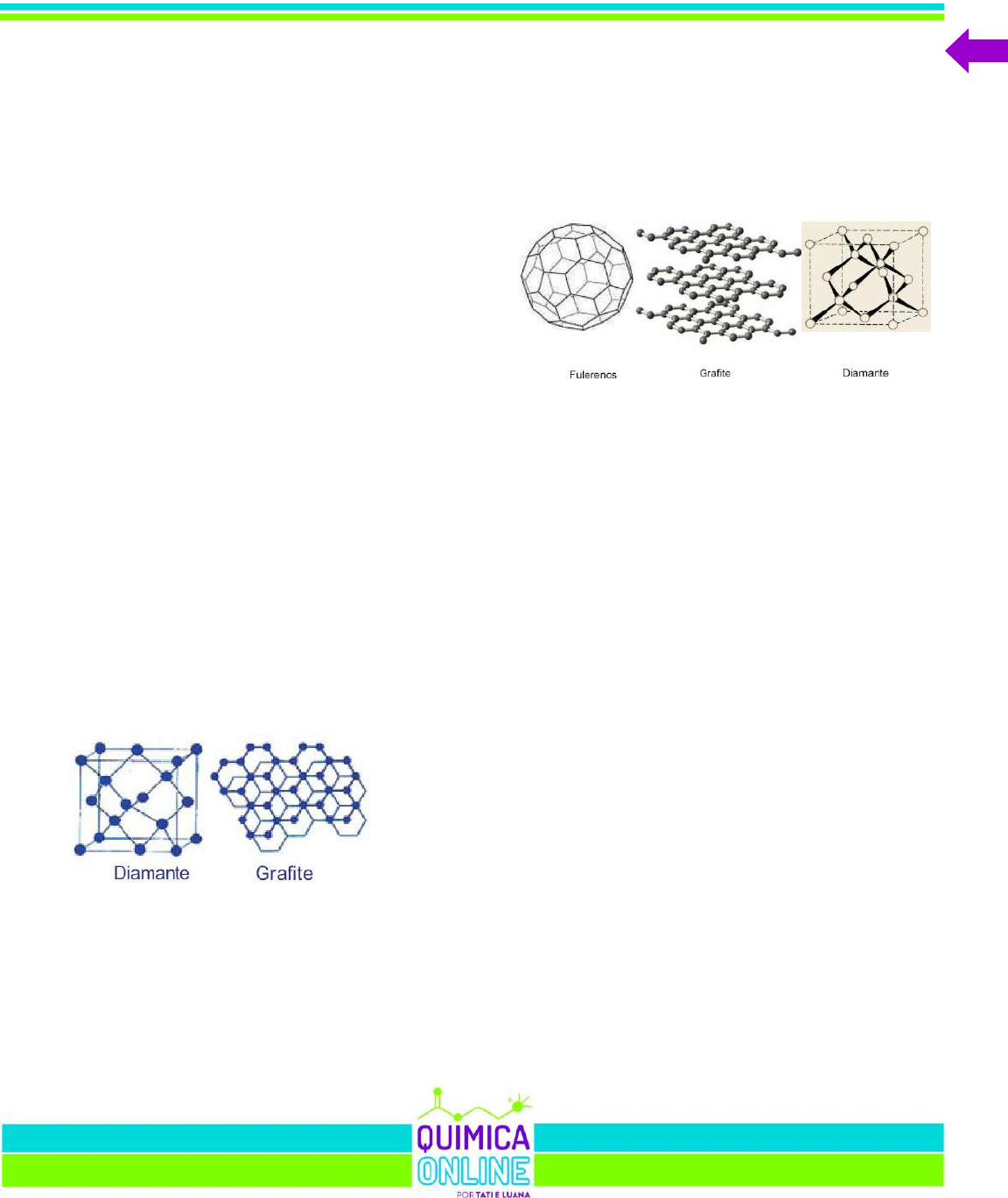 3000 QUESTÕES DE QUÍMICA 122 A figura acima ilustra o grafeno: variedade alotrópica do carbono, constituída de uma monocamada de átomos do elemento ligados em arranjo hexagonal. Essa variedade é um exemplo da alotropia do carbono, como também o são a) o diamante e o gás carbônico. b) o monóxido de carbono e o benzeno. c) a grafite e os fulerenos. d) o fósforo branco e o fósforo vermelho. 154 - (UEM PR) Assinale a(s) alternativa(s) correta(s). 01. Alotropia é o fenômeno onde um mesmo elemento químico forma duas ou mais substâncias simples diferentes. 02. Substâncias alotrópicas apresentam propriedades químicas e físicas idênticas. 04. As moléculas de CO e CO2 e o íon CO3 2– são consideradas substâncias alotrópicas entre si. 08. O nanotubo de carbono não pode ser considerado um alótropo do carbono, pois apresenta somente carbonos do tipo sp2, enquanto o diamante apresenta carbonos do tipo sp3. 16. O alótropo O2 é mais estável que o ozônio, e a conversão do primeiro para o segundo pode ser conseguida através de descargas elétricas, como relâmpagos. 155 - (UFF RJ) “Diamante” é uma palavra que vem do latim e significa “inflexível”. Por isso se diz que os diamantes são eternos. Eles são formados pelo carbono submetido a calor e pressão extremos, a partir de rocha vulcânica. As principais formas alotrópicas do carbono são o grafite e o diamante. Sobre essas formas alotrópicas, assinale a alternativa correta. a) O grafite que apresenta carbono com hibridização sp3 não conduz eletricidade. b) Os átomos de carbono possuem o mesmo tipo de hibridização no diamante e no grafite. c) Os átomos de carbono, no diamante, estão separados por ângulos de 180º. d) Os átomos de carbono possuem hibridização sp2 no diamante e sp3 no grafite. e) O diamante possui átomos de carbono com hibridização sp3. 156 - (UFU MG) Observe as representações abaixo e assinale a alternativa correta. a) As figuras mostram substâncias que possuem as mesmas propriedades físicas e químicas. b) As figuras representam formas alotrópicas do carbono, sendo que a estrutura dos fulerenos acima pode ser comparada a uma bola de futebol. c) As representações indicam que a ligação química entre os átomos de carbono − presentes nos fulerenos, diamante e grafite − é do tipo iônica. d) As substâncias representadas nas figuras podem ser classificadas como compostas, pois, por reações químicas, formam outras mais simples. 157 - (UFPA) Na natureza alguns elementos podem se apresentar sob diferentes formas, conhecidas como variedades alotrópicas. O carbono, por exemplo, pode ser encontrado nas formas cristalinas de grafite, diamante, fulereno. Sobre as propriedades dos alótropos de carbono são feitas as seguintes afirmações: I. O diamante é o menos denso das três variedades de carbono II. A grafite apresenta uma estrutura lamelar III. No fulereno cada átomo de carbono está ligado a outros 4 átomos de carbono, formando um tetraedro. IV. No diamante, os ângulos de ligação entre os átomos de carbono são de 120º. V. A grafite é boa condutora de eletricidade, porém má condutora de calor. Está(ão) correta(s) a(s) afirmação(ões) 3000 QUESTÕES DE QUÍMICA 123 a) I e III b) V c) II, IV e V d) III e V e) II 158 - (UDESC SC) O carbono é um dos elementos de maior aplicação em nanotecnologia. Em diferentes estruturas moleculares e cristalinas, ele apresenta uma vasta gama de propriedades mecânicas e eletrônicas distintas, dependendo da sua forma alotrópica. Por exemplo, os nanotubos de carbono podem ser ótimos condutores de eletricidade, enquanto o diamante possui condutividade muito baixa. Essas diferenças estão relacionadas com a hibridização do átomo de carbono nos diferentes alótropos. Com relação aos alótropos de carbono, é incorreto afirmar: a) Os nanotubos de carbono são formados por ligações entre carbonos sp2 similares àquelas da grafite. b) O diamante, em que o carbono tem hibridização sp3, é o mineral mais duro que se conhece, o que o torna um excelente abrasivo para aplicações industriais. c) A grafite, que apresenta carbono com hibridização sp, não conduz eletricidade. d) O termo carbono amorfo é usado para designar formas de carbono, como a fuligem e o carvão, que não apresentam estrutura cristalina. e) A grafite, que apresenta carbono com hibridização sp2, pode conduzir eletricidade devido à deslocalização de elétrons de ligações () acima e abaixo dos planos de átomos de carbono. 159 - (UEG GO) O carbono é um elemento químico sólido à temperatura ambiente. Dependendo das condições de formação, pode ser encontrado na natureza em diversas formas alotrópicas, entre as quais, grafite e diamante. Esse elemento é o pilar básico da química orgânica, fazendo parte de todos os seres vivos. As principais propriedades dos dois alótropos mencionados no texto estão organizadas na tabela abaixo. Use-a, juntamente com a figura, para responder aos itens subseqüentes. a) Explique por que grafite e diamante se comportam de forma diferente em relação ao fenômeno de fusão. b) Dê a hibridização dos átomos de carbono no grafite e no diamante e explique o fato de um deles ser isolante e o outro, um bom condutor de eletricidade. 160 - (UFPEL RS) O enxofre é uma substância simples cujas moléculas são formadas pela união de 8 átomos; logo, sua fórmula molecular é S8. Quando no estado sólido ele forma cristais do sistema rômbico ou monoclínico, conforme figura abaixo. A respeito do enxofre rômbico e do enxofre monoclínico é correto afirmar que eles se constituem em a) formas alotrópicas do elemento químico enxofre, cuja fórmula é S8. b) átomos isótopos do elemento químico enxofre, cujo símbolo é S. c) átomos isótopos do elemento químico enxofre, cuja fórmula é S8. d) formas alotrópicas do elemento químico enxofre, cujo símbolo é S. e) formas isobáricas, da subst