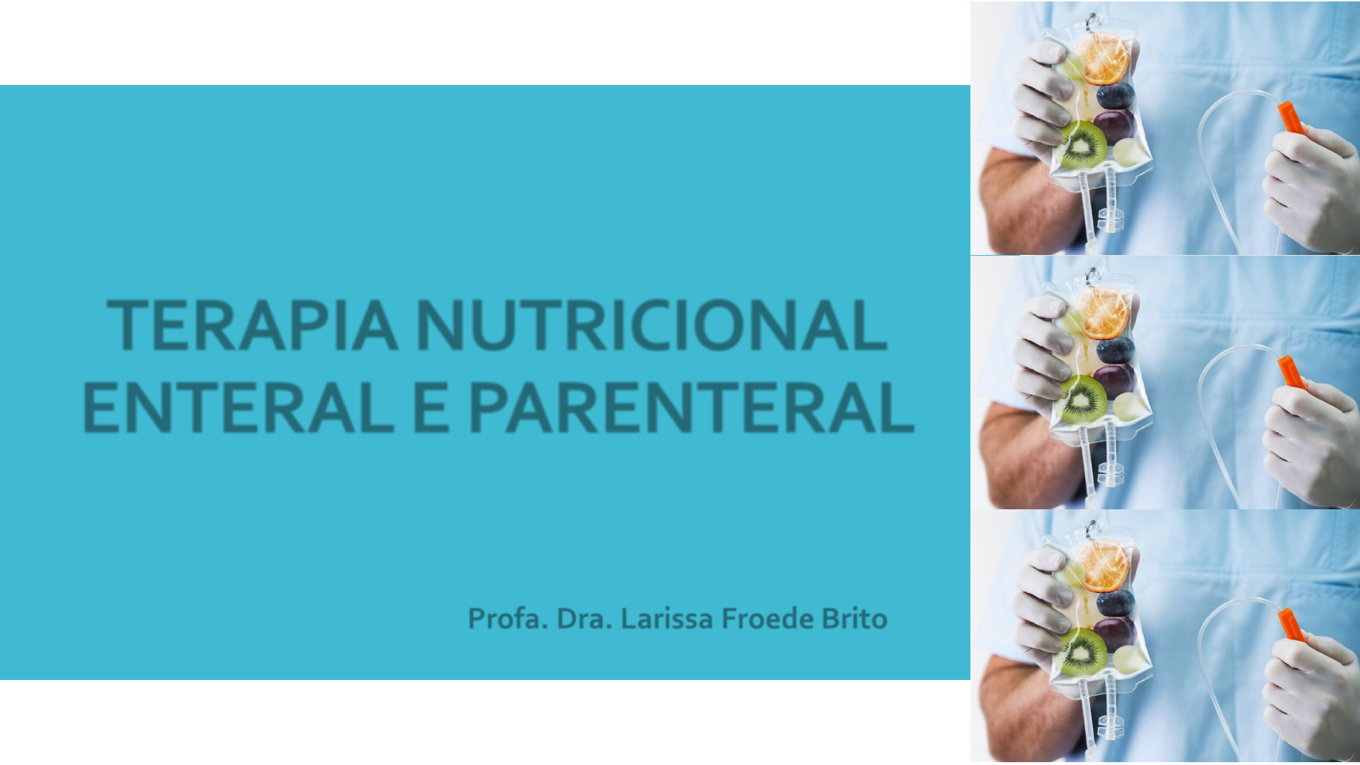 TERAPIA NUTRICIONAL ENTERAL E PARENTERAL Profa. Dra. Larissa Froede Brito DATAS IMPORTANTES ✓ Início da disciplina: 21/02/2024 ✓ Atividade Ativa: 01/03/24 à 08/03/24 →Valor: 2 pontos ✓ Momento da Prática: 02/03/24 e 16/03/24 ✓Prova: 18/03/24 à23/03/24 ✓Substitutiva: 28/03/24 à31/03/24 PATOLOGIA DA NUTRIÇÃO NAS ENFERMIDADE DO APARELHO DIGESTIVO ENFERMIDADES ORAIS A dieta e a nutrição desempenham um papel importante no desenvolvimento dental, integridade dos tecidos gengival e oral, força óssea e prevenção e tratamento das doenças da cavidade oral. LESOES NA CAVIDADE ORAL LESOES NA CAVIDADE ORAL LESOES NA CAVIDADE ORAL LESOES NA CAVIDADE ORAL ASPECTOS GERAIS DA TERAPIA NUTRICIONAL Objetivo: Facilitar e viabilizar a ingestão e deglutição; Atender o VET do paciente; Evitar dor quando há lesão; Atenção: Quando há deficiência: correção de deficiência de nutrientes que levaram a lesão. DISTURBIOS DO ESÔFAGO •Distúrbios de motilizade: Durante a deglutição, o esôfago apresenta contrações (processo neuromuscular) cuja função é propagação do bolo alimentar em direção ao estômago. - Acalasia: distúrbio de motilidade do eôfago inferior que leva a falencia do esfincter esofágico inferior (EEI) para relaxar e abrir durante a degluitição: resultando em disfagia ou dificuldade de deglutição. Objetivos da terapia Nuticional: Adaptar a dieta ao grau de disfagia e Promover a recuperação nutricional DISTURBIOS DO ESÔFAGO •Terapia nutricional: Dieta hipercalórica e hiperproteica. Consistência: depende do grau de disfagia (normalmente é necessária a dieta líquida). Pode ser indicada a NE quando existir disfagia inclusive de líquidos. DISTURBIOS DO ESÔFAGO •Esofagite: Inflamação da mucosa esofâgica, decorrente deo refluxo do conteúdo gástrico. Diminuição da pressão do EEI. Sintomas: azia, regurgitação e a disfagia. Esofagite aguda: infecção viral, ingestão de substância irritante, uso de sonda. Esofagite crônica: hérnia de hiato, pressão do esfíncter esofágico inferior reduzida, aumento da pressão intra-abdominal (doenças pulmonares obstrutivas), retardo no esvaziamento gástrico → Ulcerações, cicatrização e estenose. DISTURBIOS DO ESÔFAGO Objetivos da Terapia Nutricional: Prevenir a irritação da mucosa esofágica na fase aguda; A uxiliar na prevenção do refluxo gastroesofágico; Contribuir para o aumento da pressão do EEI Corrigir e manter o peso ideal DISTURBIOS DO ESÔFAGO CANCER DA CAVIDADE ORAL, FARINGE E ESÔFAGO •Câncer / tratamento (cirúrgico, irradiação regional ou quimioterapia): dificuldades de alimentação CUIDADOS NUTRICIONAIS Alimentação por sonda nasoenteral se o restante do TGI estiver funcionante. Se VO: alimentos líquidos ou de consistência pastosa (Fácil mastigação e deglutição), refeições de pequeno volume e frequentes com valor calórico alto. Preferir: CHO complexos Obs. Saliva artificial; bochechos com solução salina (evitar mucosite); anestésicos tópicos para evitar a dor. Cuidados: infecções orais, medicações que possuem gosto metálico ENFERMIDADES GASTRICAS •Indigestão ou dispepsia: Desconforto no trato digestivo superior. Sintomas: dor abdominal difusa, distensão abdominal, náuseas, regurgitação e eructação. Dispepsia prolongada pode estar relacionada com: Refluxo gastroesofágico, gastrite, úlcera péptica, retardo do esvaziamento gástrico, colecistopatia ou câncer. (investigar) Cuidados nutricionais: Evitar abusos dietéticos: ingestão excessiva de alimentos ou elevado consumo de gorduras, açúcares, cafeína, especiarias, álcool. Alimentar-se lentamente, mastigar bem os alimentos e não comer ou beber em excesso. GASTRITE - FISIOPATOLOGIA Gastrite: inflamação e lesão tecidual resultante da erosão da camada mucosa e exposição das células subjacentes. Pode ser desencadeada por: - Helicobacter pilory; medicamentos (aspi rina, antiinflamatórios); ingestão de bebidas alcoólicas, fumo, situações de estresse (queimaduras graves, politraumas). Gastrite aguda: rápido início da inflamação e dos sintomas. Gastrite crônica: atrofia crônica progressiva da mucosa gástrica. Manifestação: Náuseas, vômitos, mal estar, anorexia, hemorragias e epigastralgia. GASTRITE ATRÓFICA Resulta em atrofia e perda das células parietais do estomago Perda da secreção do ácido clorídrico (acloridria) e do fator intrínseco. GASTRITE ATRÓFICA Avaliação Nutricional Investigação sobre a existência de deficiências nutricionais -Energia -Proteínas -Ferro (hemorragias constantes) -B 12 (na gastrite crônica) •Objetivos da dietoterapia Recuperar e proteger a mucosa gastrointestinal; Facilitar a digestão; Aliviar a dor; Promover um bom estado nutricional. GASTRITE Tratamento: • Está relacionado ao agente causador. • Erradicação dos microrganismos patogênicos e retirada de qualquer agente predisponente. • Antibióticos, antiácidos, antagonistas do receptor-H2 podem desempenhar um papel no tratamento da gastrite. • Comer devagar e mastigar bem os alimentos; fracionar as refeições (pequenos volumes e com maior freqüência); evitar ingerir líquidos durante as refeições são estratégias que podem aliviar os sintomas da gastrite e auxiliar no tratamento desta inflamação. • Optar por alimentos leves e nutritivos, como: vegetais em geral, torradas, biscoito simples, queijos leves, carnes magras (cozidas, assadas ou grelhadas), purês, gelatina, ovo cozido, caldo de feijão, entre outros. • Evitar consumir: café, bebidas alcoólicas, refrigerantes, pimenta vermelha, chocolates, frituras em geral, carnes gordas, entre outros. ULCERAS GASTROINTESTINAIS Lesão erosiva tanto na mucosa esofágica, gástrica ou duodenal. É uma ferida bem definida, redonda ou oval. Desestruturação na defesa normal e nos mecanismos de reparo. Geralmente, há disfunção de mais de um mecanismo para que ocorra o desenvolvimento da úlcera 
