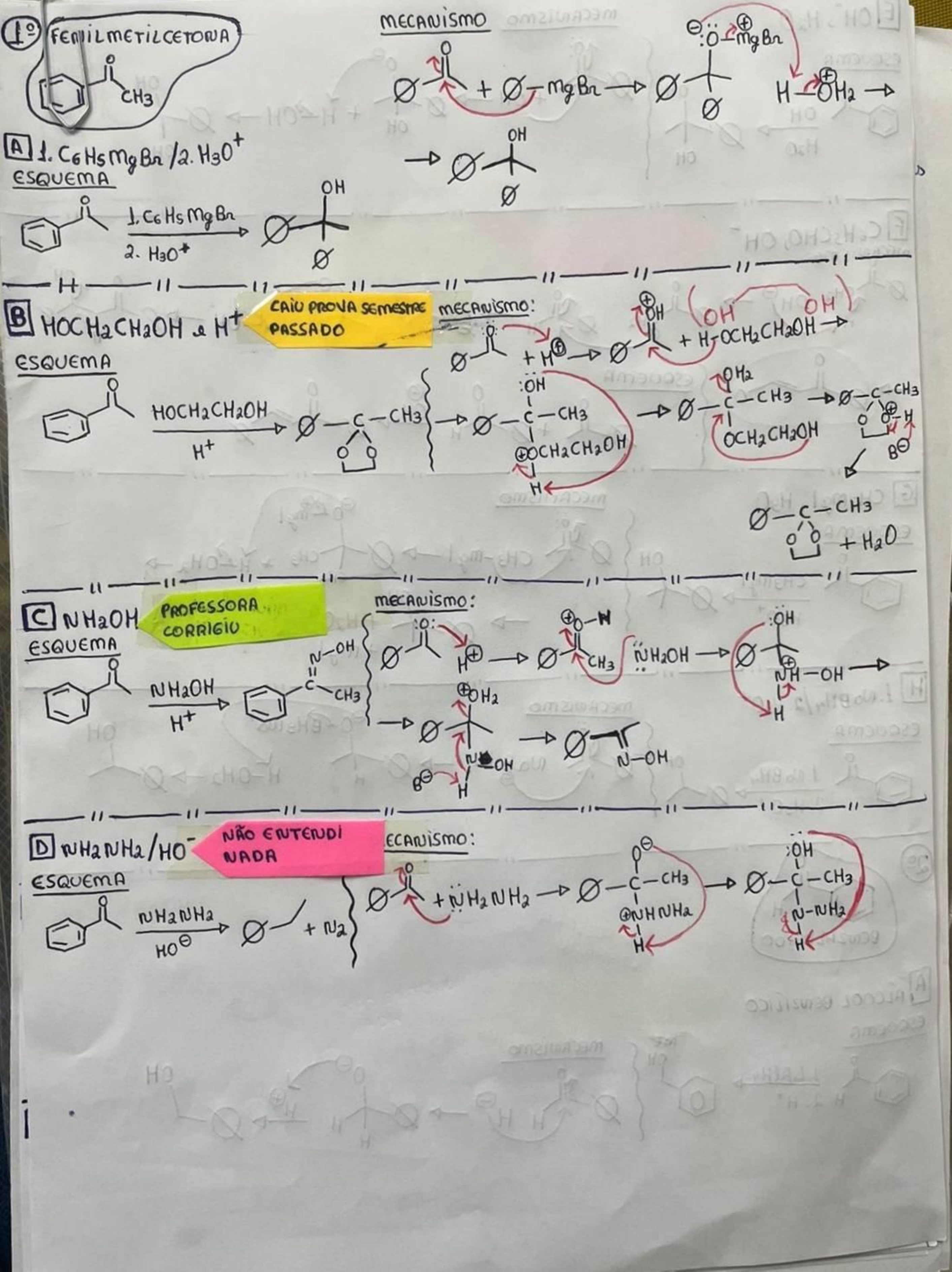0 CH3 + mg Br H OH A ESQUEMA OH 2. H 11 11 B PROVA + HOCH2CH2OH H+ OH (OH OH PASSADO + ESQUEMA 0 OH CH3 HOCH2CH2OH CH3 - CH3 H+ OCH2CH2OH HE + H2O 11 PROFESSORA H OH CORRIGIO ESQUEMA OH + CH3 NH2OH + NH -OH NH2OH CH3 H+ H OH N-OH NÃO ENTENDI D NADA OH ESQUEMA -CH3 NH2NH2 + N2E MECANISMO OH H2O OH ESQUEMA OH +OH + OH OH OH H2O OH F OH NÃO ENTENOI PROFESSORA NADA CORRIGIO 0 OH 0 0 CH2 OH H COH H CH2 H CH2 H H ESQUEMA 0 0 OH H MECANISMO G CH3Mg 1, mgl ESQUEMA CH3 + H COH2 OH CH3 OH +H2O 1. NaBH4 /2. OH O: ESQUEMA OH NaB H-OH2 H 2. " " H BENZALDEIDO PROFESSORA A ALCOOL MECANISMO OH ESQUEMA OH 0 0 + H H 0 H H H HB MECANISMO H + ESQUEMA OH H H CH3 OH CH3 H H+ CH3 11 NÃO ENTENDI NADA a OH D C6 OH H ESQUEMA OCH3 + H H H HOCH3 HOCH3 + H B OH2 H H + OCH3 - H+ OCH3 H H HOCH3 H OCH3 OCH3 OCH3 OCH3 OCH3 E OH ESQUEMA OH O: OH HCN H. CN CN H H F =NOH MECANISMO H ESQUEMA OH H :OH H NH2OH H NH2OH C-H 11 H NOH NOM NOH HK H a NOH " 11 G MECANISMO ESQUEMA C-H C-H H + OH HK H H C-H NNHH ESQUEMA H = H CH2 CH2 30 B PROVA - PROFESSORA OH SEMESTRE PASSADO H 0 OH 0 0 0 H H - OH a 0 H 11 A = H -OH ESQUEMA 0 0 + H2O H OH OH OH H C OH PROFESSORA 0 MECANISMO H OH 0 0 0 OH H 0 11 D 0 CAIO PROVA H+ PASSADO OH OH MECANISMO H2O 0 + + OH OH OH OH H B4° OCH OH A NaOH ESQUEMA NaOH OH 0 + Na 0 Na+ H Na OH 11 B ESQUEMA 0 OH OH a 11 11 11 CH3CH2OH/H+ H2O ESQUEMA OH OH2 OH CH3CH2OH 0 OH H+ + HK B 11 PROFESSORA D 1. 12. H3O+ H CAIU PROVA OUTRO Al H H ESQUEMA OH H SEMESTRE H OH OH e + 2. H30+ H H H H H OH 5 a CLORETO DE PROFESSORA ACETILA MECANISMO A NM2CH3 (em excesso) 0 ESQUEMA NH2CH3 + NHCH3 NHCH3 a CH3NH2 NHCH3 HB H2O ESQUEMA + OH + OH + H2O H H + OH2 H OH 11 11 " CH3CO2 0 0 ESQUEMA + G + 0 + a NH2 a PROPANOATO DE A PROPANAMIDA MECANISMO 4 OH OH OH ESQUEMA NH2 H+ + NH2 NH2 / OH NH2 OH NH2 H H H2O H B B H PROPANOATO OH OH ESQUEMA MECANISMO OH H+ OH H2O OH H OCH3CH3 OCH2CH3 OCH2CH3 H H OH B H B ON OM B OH H2O 11 PROPANAMIOA ESQUEMA 0 OH OH NH2 NH2 NH2 OH + NH2 H2O OH OH PROPANOATO ESQUEMA MECANISMO 0 OH ON - OCH2CH3 OH H2O OCH2CH3 OH + CH3CH2B 1-FENILETANOL MECANISMO o ESQUEMA H + OH H H CH3 OH CH3 H H+ CH3 11 11 NÃO ENTENDI NADA OH D C6 OH H ESQUEMA OCH3 + H HOCH3 H H - HOCH3 + H B OH2 H H H+ + OCH3 OCH3 H H HOCH3 H OCH3 OCH3 OCH3 OCH3 OCH3 E MECANISMO OH ESQUEMA O: OH OH HCN H H CN CN H CN F ESQUEMA OH NH2OH H NH2OH C-H H H 11 NOH ONHOH NOM NOH HK H NOH " G ON ESQUEMA NH2NH C-H o H H HK H -C-H NNHNA PROVA DE OUTRO SEMESTRE HOCH2CH2OH l H+ ESQUEMA 0 HOCH2CH2OH C-CH3 H+ OH2 OH U O: OH CH3 CH3 + + H-OCH2CH2OH OCH2CH2OH H -CH3 CH3 + H2O 8 0 H OH o 0 OH OH H H H+ OH OH + H2O OH OH2 OH OH