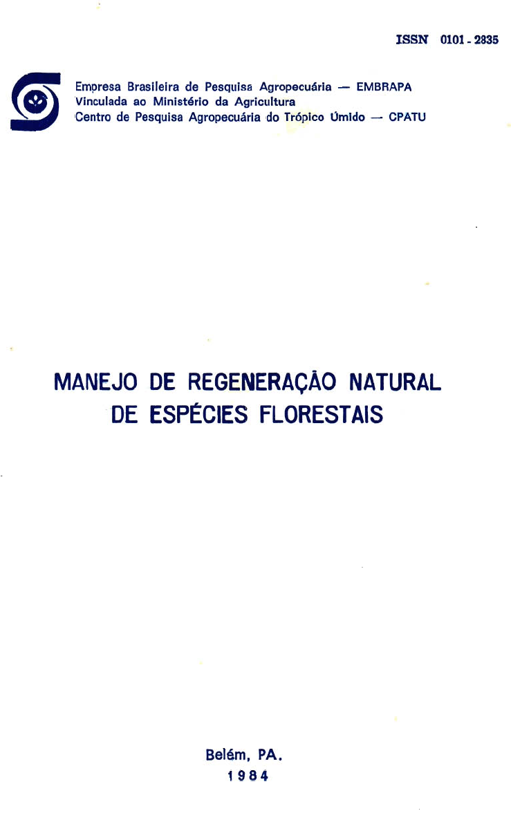 ISSN 0101- 2835 Empresa Brasileira de Pesquisa Agropecuárla - EMBRAPA Vinculada ao Ministério da Agricultura Centro de Pesquisa Agropecuárla do Trópico Úmido - CPATU MANEJO DE REGENERACÃO NATURAL DE ESPÉCIES FLORESTAIS Belém, PA. 1984 ISSN 0101-2835 Empresa Brasileira de Pesquisa Agropecuária - EMBRAPA Vinculada ao Ministério da Agricultura Centro de Pesquisa Agropecuária do Trópico Úmido - CPATU Belém, PA MANEJO DE REGENERAÇÃO NATURAL DE ESPÉCIES FLORESTAIS João Olegário Pereira de Carvalho Belém, PA 1984 Exemplares desta publicação podem ser solicitados à EMBRAPA-CPATU Trav. Dr. Enéas Pinheiro s/n9 Caixa Postal, 48 66.000 - Belém, PA Telex: (091) 1210 Tiragem: 1.000 exemplares Comitê de Publicações: José Furlan Júnior - Presidente Mário Dantas Alfredo Kingo Oyama Homma Paulo Choji Kitamura Nazira Leite Nassar Emanuel Adilson Souza Serrão Lulz Octávio Danin de Moura Carvalho Maria de Lourdes Reis Duarte Emmanuel de Souza Cruz José Natalino Macedo Silva Ruth de Fátima Rendeiro Palheta Carvalho, João Olegário Pereira de Manejo de regeneração natural de espécies florestais. Belém. EMBRAPA-CPATU, 1984. 22 p. ilust. (EMBRAPA-CPATU. Documentos, 34). 1. Floresta - Manejo. 2. Espécie florestal - Regeneração - Ma- nejo , I. Empresa Brasileira de Pesquisa Agropecuária. Centro de Pes- quisa Agropecuária do Trópico Úmido, Belém, PA. 11. Título. 111. Série. CDD: 634.928 © EMBRAPA - 1984 Exemplares desta publicação podem ser solicitados à EMBRAPA-CPATU Trav. Dr. Enéas Pinheiro 5/n9 Caixa Postal, 48 66.000 - Belém, PA Telex: (091) 1210 Tiragem: 1.000 exemplares Comitê de Publicações: José Furlan Júnior - Presidente Mário Dantas Alfredo Kingo Oyama Homma Paulo Choji Kitamura Nazira Leite Nassar Emanuel Adilson Souza Serrão Luiz Octávio Danin de Moura Carvalho Maria de Lourdes Reis Duarte Emmanuel de Souza Cruz José Natalino Macedo Silva Ruth de Fátima Rendeiro Palheta Carvalho, João Olegãrio Pereira de Manejo de regeneração natural de espécies florestais. Belém, EMBRAPA-CPATU, 1984. 22 p.i1ust. (EMBRAPA-CPATU. Documentos, 34). 1. Floresta - Manejo. 2, Espécie florestal - Regeneração - Ma- nejo. I. Empresa Brasileira de Pesquisa Agropecuãria. Centro de Pes- quisa Agropecuãria do Trópico Úmido, Belém, PA. 11. Título, 11I. Série. CDD: 634.928 © EMBRAPA - 1984 SUMÁRIO CONCEITO DE REGENERAÇÃO NATURAL . 6 ESTRUTURA DA REGENERAÇÃO NATURAL •••.. 6 Estrutura horizontal ................................•••..... 6 Estrutura volumétrica ••...... 8 Estrutura diamétrica :.. 8 Estrutura vertical ..................................•....... ·9 Perfil estrutural 10 CRESCIMENTO •....... 10 Inventário florestal contínuo •••..... 10 Tipos de inventário florestal contínuo 11 Medições ••••.•.. 12 Remedições ..••.... 12 TRATAMENTOS SILVICULTURAIS ••..•... 12 MODELO DE EXPLORAÇÃO CONTrNUA •....... 13 PESQUISAS EM DESENVOLVIMENTO NO CPATU SOBRE REGE.· NERAÇÃO NATURAL DE FLORESTAS................ •••.•... 15 PESQUISAS EM ANDAMENTO NO CPATU SOBRE REGENERA· çÃO NATURAL DE FLORESTAS............................. 19 REFERENCIAS BIBLlOGRAFICAS ....................•....... 20 MANEJO DE REGENERAÇAO NATURAL DE ESPÉCIES FLORESTAIS 1 João Olegário Pereira de Carvalho 2 RESUMO: Trata de aspectos importantes para o manejo da regene- ração natural tais como: a análise estrutural de uma floresta, consi- derando as estruturas horizontal, vertical, volumétrica, diamétrica e o perfil estrutural, além do índice de valor de importância de cada es- pécie na floresta; crescimento da regeneração natural, destacando, co- mo instrumento do estudo, o inventário florestal contínuo; tratamentos silviculturais a serem empregados em floresta natural; e um modelo de exploração contínua que considera a estrutura inicial da floresta, sua produção volumétrica e a distribuição espacial das espécies em função da área. São apresentadas também as pesquisas de manejo de florestas naturais realizadas pelo Programa Nacional de Pesquisa Florestal - PNPF no trópico úmido brasileiro. Termos para indexação: Ecologia, inventário de regeneração, estru- tura de florestas, crescimento de floresta natural, exploração flores- tal, ciclos de corte. ABSTRACT: This paper deals with some important aspects to study forest management with natural regeneration like abundance, frequency, domlnance, volume, diameter distrlbution, structural profile, socio- logical aspects and ecological importance of each specles in the forest; growth of natural regeneration; silvicultural treatments whlch should be applled in natural forest; and a model of exploitation which conslders the initial structure of forest, production, and spatlal dlstrlbutlon of species. It presents also informatlon about the research on management ln natural forest which is done in the Brasillan humid tropics by the National Program of Forest Research. Index terms: Ecology, inventory of natural regeneration, structure of forests, growth of natural regeneration, forest exploltation, cuttlng cycle. 1 Palestra proferida no dia 22 de março de 1984, na programação de Seminários de Pesquisa do Museu Paraense Emrlio Goeldi. Belém-PA 2 Eng. Florestal. EMBRAPA-CPATU.Caixa Postal 48. CEP 66000. Belém, PA -5- CONCEITO DE REGENERAÇÃO NATURAL o conceito de regeneração natural de espécies florestais varia muito de autor para autor, não havendo consenso a respeito da con- ceituação adequada para o termo. Em um inventário de regeneração natural realizado por Carva- lho (1980), na Floresta Nacional do Tapajós, foram consideradas ape- nas as plantas com altura superior a 10 cm e DAP (diâmetro à altura do peito) inferior a 15 cm. Estas dimensões foram utilizadas nova- mente pelo mesmo autor em um estudo de análise estrutural da re- generação natural realizado na mesma floresta (Carvalho 1982). Em um trabalho realizado n