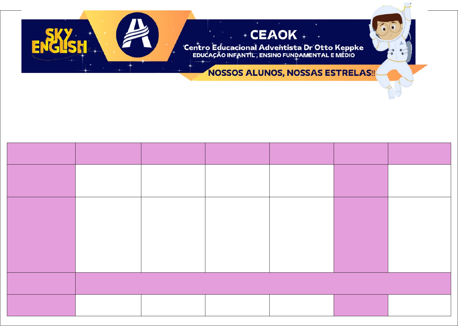 HORÁRIO DE AULAS 2024 1º ANO A – Prof Neusa Raasch Segunda-feira Terça-feira Quarta-feira Quinta-feira Sexta-feira 13:00- 13:50 50min) Português Capela Pr Bráulio Música Miran Coral Mirian 13:00 Ed. Física Edmar 13:50– 14:30 14:30 – 14:40 (40min+10min) Ed. Física Edmar Lanche Português Lanche Português Lanche Português Lanche 13:50 Português Lanche 14:40-15:00 INTERVALO 15:00-15:35 Inglês Sabrina Matemática Inglês Sabrina Matemática 15:00 Inglês Sabrina 15:35-16:20 Matemática Lanche Inglês Sabrina Matemática Inglês Sabrina 15:50 Matemática 16:20-17:05 Ciências Ensino Religioso Ciências História 17:05-17:50 História Geografia Arte Geografia HORÁRIO DE AULAS 2024 1º ANO B – Prof Malu Segunda-feira Terça-feira Quarta-feira Quinta-feira Sexta-feira 13:00 - 13:50 (50min) Português Capela Pr Bráulio Português Coral Mirian 13:00 -13:50 (50min) Inglês Sabrina 13:50 – 14:30 14:30 – 14:40 (40min+10min) Matemática Lanche Português Lanche Inglês Sabrina Lanche Português Lanche 13:50 - 14:30 14:30 – 14:40 (40min +10min) Português Lanche 14:40-15:00 INTERVALO 15:00-15:35 (35 min) História Geografia História Música Mirian 15:00 -15:50 (50min) Matemática 15:35-16:20 (45min) Inglês Sabrina Ed.Física Edmar Matemática Matemática 15:50 – 16:30 (40 min) Ed. Física Edmar 16:20-17:05 (45min) Ciências Inglês Sabrina Ciências Inglês Sabrina 17:05-17:50 (45min) Ensino Religioso Matemática Arte Geografia HORÁRIO DE AULAS 2024 1º ANO C – Prof Rose Segunda-feira Terça-feira Quarta-feira Quinta-feira Sexta-feira 13:00- 13:50 Ed. Física Edmar Capela Pr Bráulio Inglês Sabrina Coral Mirian 13:00 13:45 – 14:40 Inglês Sabrina Música Mirian Ed. Física Edmar 13:50 14:40-15:00 INTERVALO 15:00-15:35 Inglês Sabrina Inglês Sabrina 15:00 15:35-16:20 15:50 Inglês Sabrina 16:20-17:05 17:05-17:50 HORÁRIO DE AULAS 2024 2º ANO A – Prof Nádia Segunda-feira Terça-feira Quarta-feira Quinta-feira Sexta-feira 13:00- 13:50 Português Capela Pr Bráulio Ciências Coral Mirian 13:00 Português 13:50 – 14:40 Português Português Matemática História 13:50 Matemática 14:40-15:00 INTERVALO 15:00-15:50 Matemática Geografia Matemática Português 15:00 Ed. Física Edmar 15:50-16:40 Ed. Física Edmar Geografia Inglês Sabrina Música Mirian 15:50 Arte 16:40-17:30 Ensino Religoso Ciências História Matemática HORÁRIO DE AULAS 2024 2º ANO B – Prof Érica Segunda-feira Terça-feira Quarta-feira Quinta-feira Sexta-feira 13:00- 13:50 Português Capela Pr Bráulio Ciências Coral Mirian 13:00 Música Mirian 13:50 – 14:40 Português Português Ciências História 13:50 Matemática 14:40-15:00 INTERVALO 15:00-15:50 Matemática Geografia Português História 15:00 Português 15:50-16:40 Matemática Geografia Matemática Ed. Física Edmar 15:50 Arte 16:40-17:30 Inglês Sabrina Ed. Física Edmar Matemática Ens. Religioso HORÁRIO DE AULAS 2024 3º ANO A – Prof. Edilane Segunda-feira Terça-feira Quarta-feira Quinta-feira Sexta-feira 13:00- 13:50 Capela Pr Bráulio Ed. Física Edmar Coral Mirian 13:00 13:50 – 14:40 13:50 Inglês Sabrina 15:00-15:50 Ed. Física Edmar 15:00 INTERVALO 15:50-16:40 15:50 16:40-17:30 Música Mirian HORÁRIO DE AULAS 2024 3º ANO B – Prof. Janaína Segunda-feira Terça-feira Quarta-feira Quinta-feira Sexta-feira 13:00- 13:50 Capela Pr Bráulio Português Português Coral Mirian 13:00 Ciências 13:50 – 14:40 Português Inglês Sabrina Português Música Mirian 13:50 Ed. Física Edmar 15:00-15:50 Matemática Matemática Matemática Arte 15:00 História INTERVALO 15:50-16:40 Matemática Ed. Física Edmar Matemática Ciências 15:50 Português 16:40-17:30 História Ensino Religioso Geografia Geografia HORÁRIO DE AULAS 2024 4º ANO A – Prof. Josiane Oliveira Segunda-feira Terça-feira Quarta-feira Quinta-feira Sexta-feira 13:00- 13:50 Capela Pr Bráulio Inglês Sabrina História Coral Mirian 13:00 Ciências 13:50 – 14:40 Português Ed. Física Edmar História Português 13:50 Ciências 15:00-15:50 Matemática Português Português Português 15:00 Ensino Religioso INTERVALO 15:50-16:40 Matemátca Geografia Matemática Matemática 15:50 Arte 16:40-17:30 Ed. Física Edmar Geografia Música Mirian Matemática | HORÁRIO DE AULAS 2024 4º ANO B – Prof. Camila Segunda-feira Terça-feira Quarta-feira Quinta-feira Sexta-feira 13:00- 13:50 Capela Pr Bráulio Geografia História Coral Mirian 13:00 Ciências 13:50 – 14:40 Português Geografia História Português 13:50 Ciências 15:00-15:50 Ed. Física Edmar Português Português Português 15:00 Ensino Religioso INTERVALO 15:50-16:40 Matemática Matemática Música Mirian Matemática 15:50 Arte 16:40-17:30 Matemática Matemática Inglês Sabrina Ed. Física Edmar HORÁRIO DE AULAS 2024 5º ANO A T – Prof. Josiane Martins Segunda-feira Terça-feira Quarta-feira Quinta-feira Sexta-feira 13:00- 13:50 Capela Pr Bráulio Ed. Física Suelen Ed. Física Suelen Coral Mirian 13:00 13:50 – 14:40 Inglês Sabrina 13:40 14:40 - 15:30 Música Mirian 14:20 15:30 – 15:50 15:00 15:50-16:40 15:30 Intervalo 16:40-17:30 15:50 HORÁRIO DE AULAS 2024 5º ANO A M – Prof. Louizze Stela Segunda-feira Terça-feira Quarta-feira Quinta-feira Sexta-feira 07:00 – 07:50 Capela Pr Bráulio 07:50 – 08:40 Ed. Física Suelen Inglês Wilmo 08:40 – 09:50 09:00 – 09:20 Intervalo 09:50-10:40 Ed. Física Suelen 10:40-11:30 Música Mirian image1.png